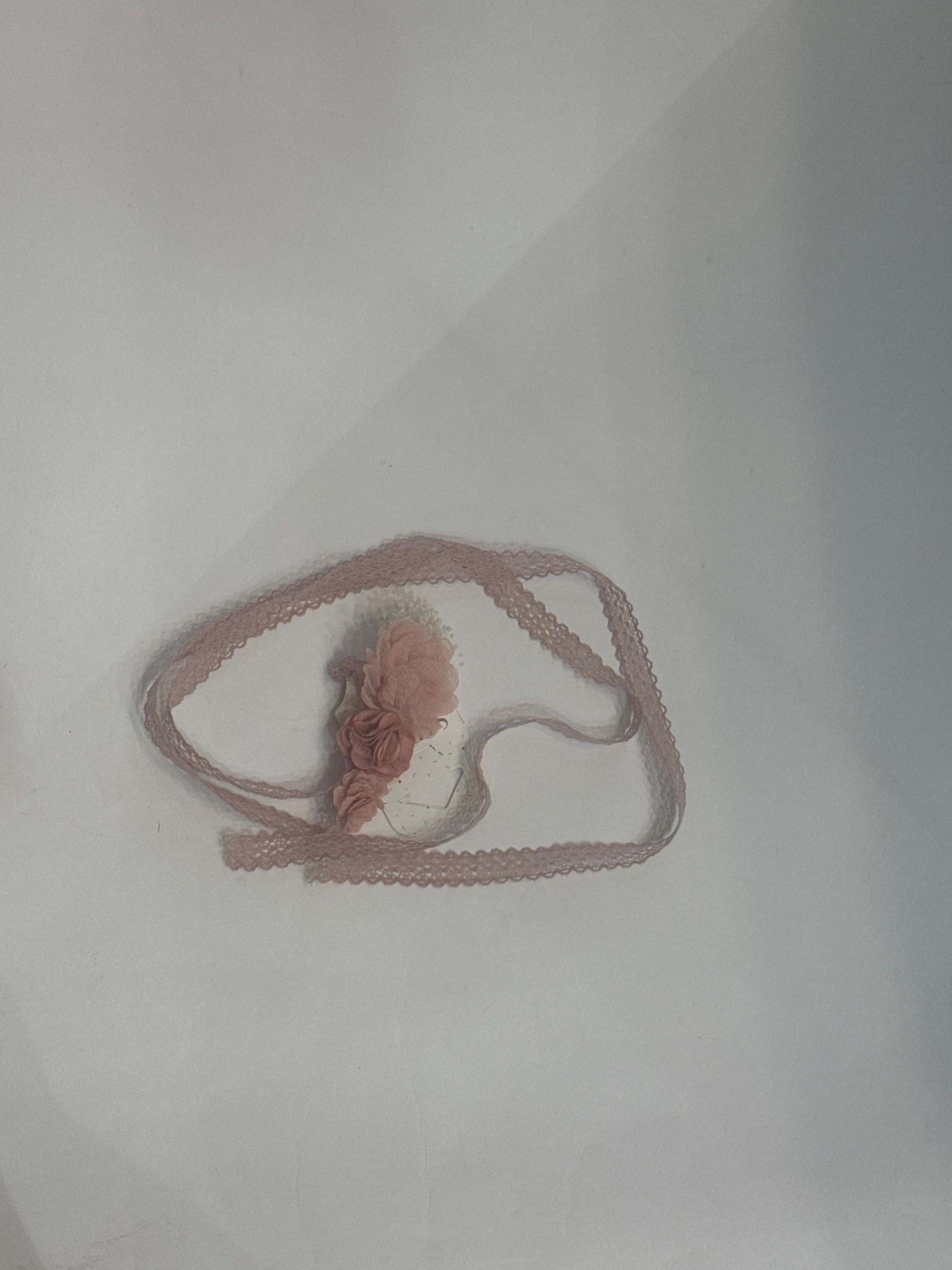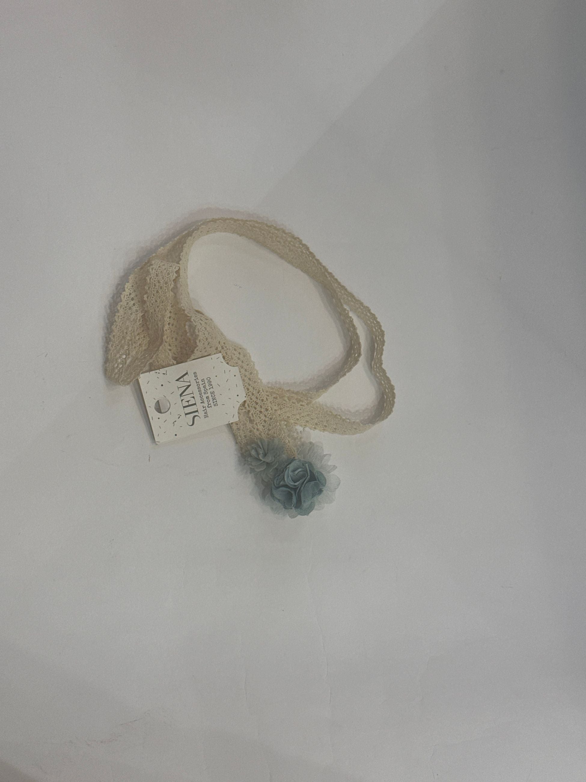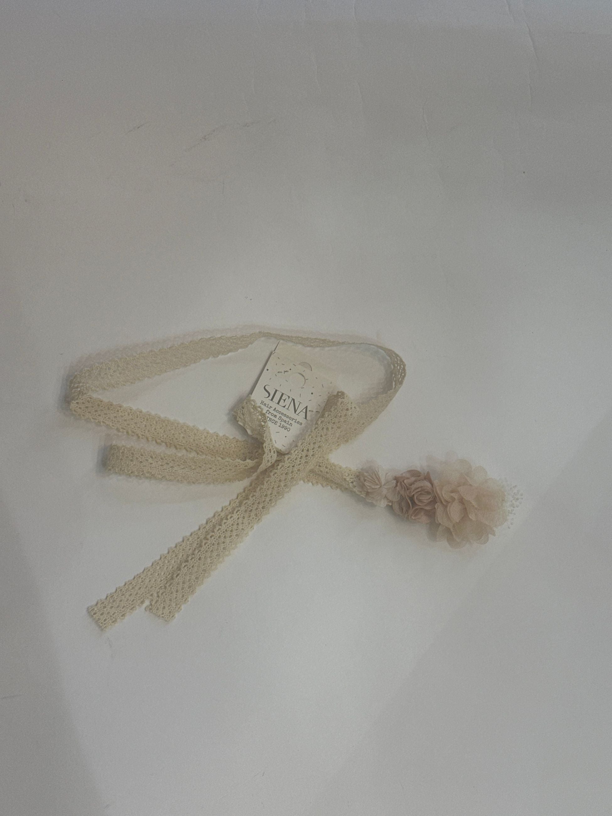 fascia in pizzo, adatta sia per le acconciature sia ad uso cintura, i fiori centrali accompagnati dalla nebbiiolina hanno un aspetto soffice e vaporoso e danno un look un pò vintage e rustico al complesso.lunghezza 150 cm