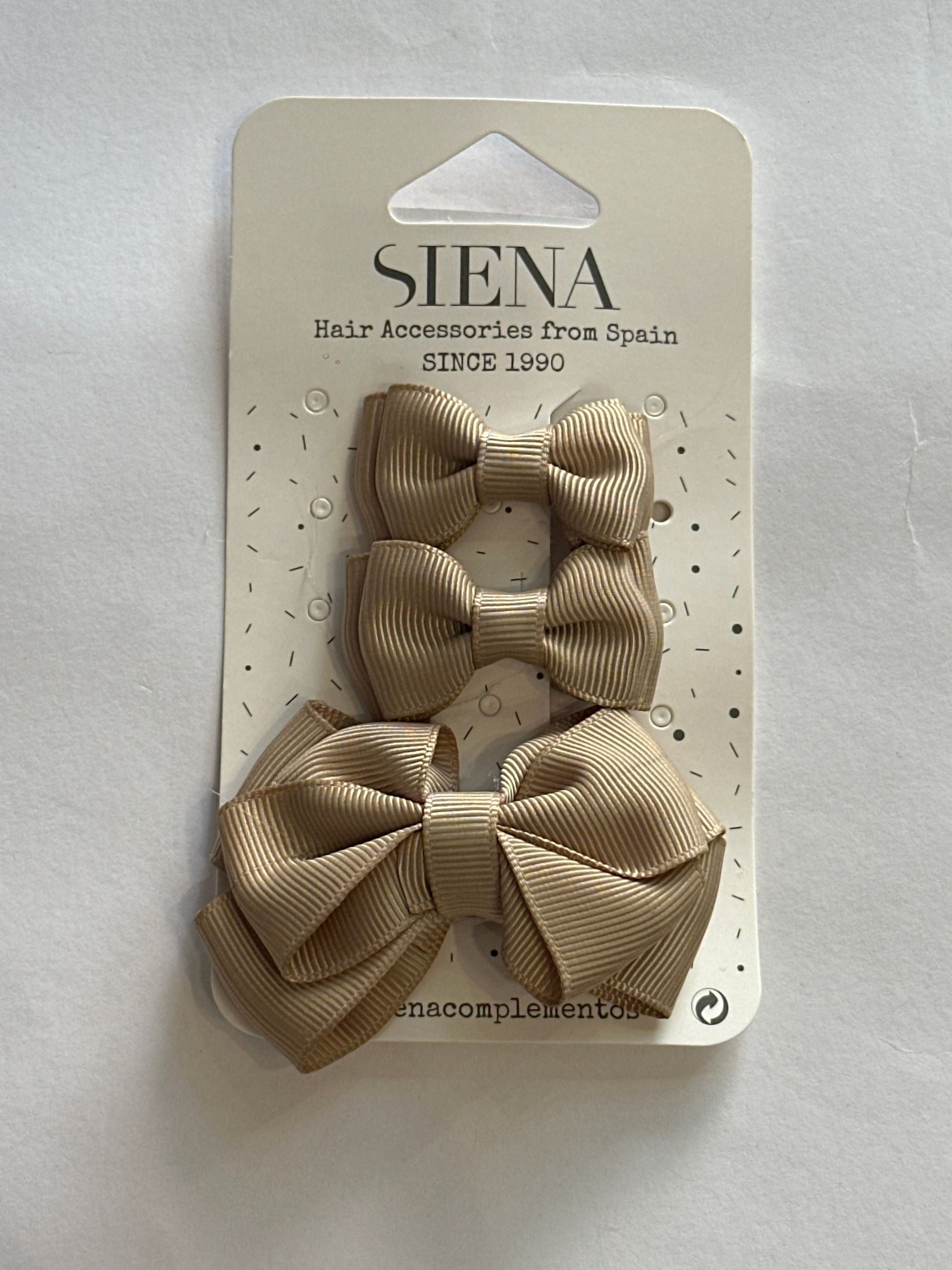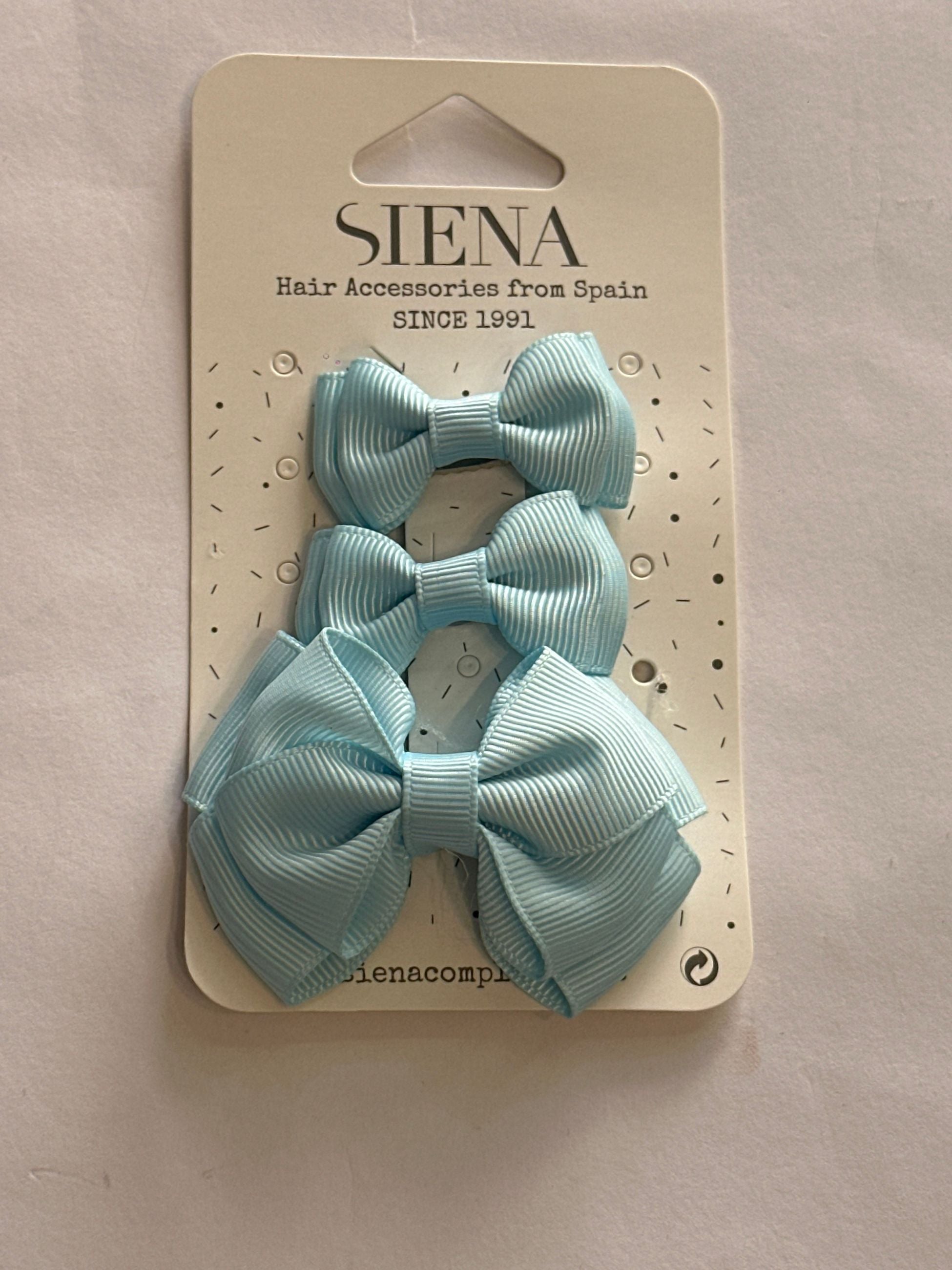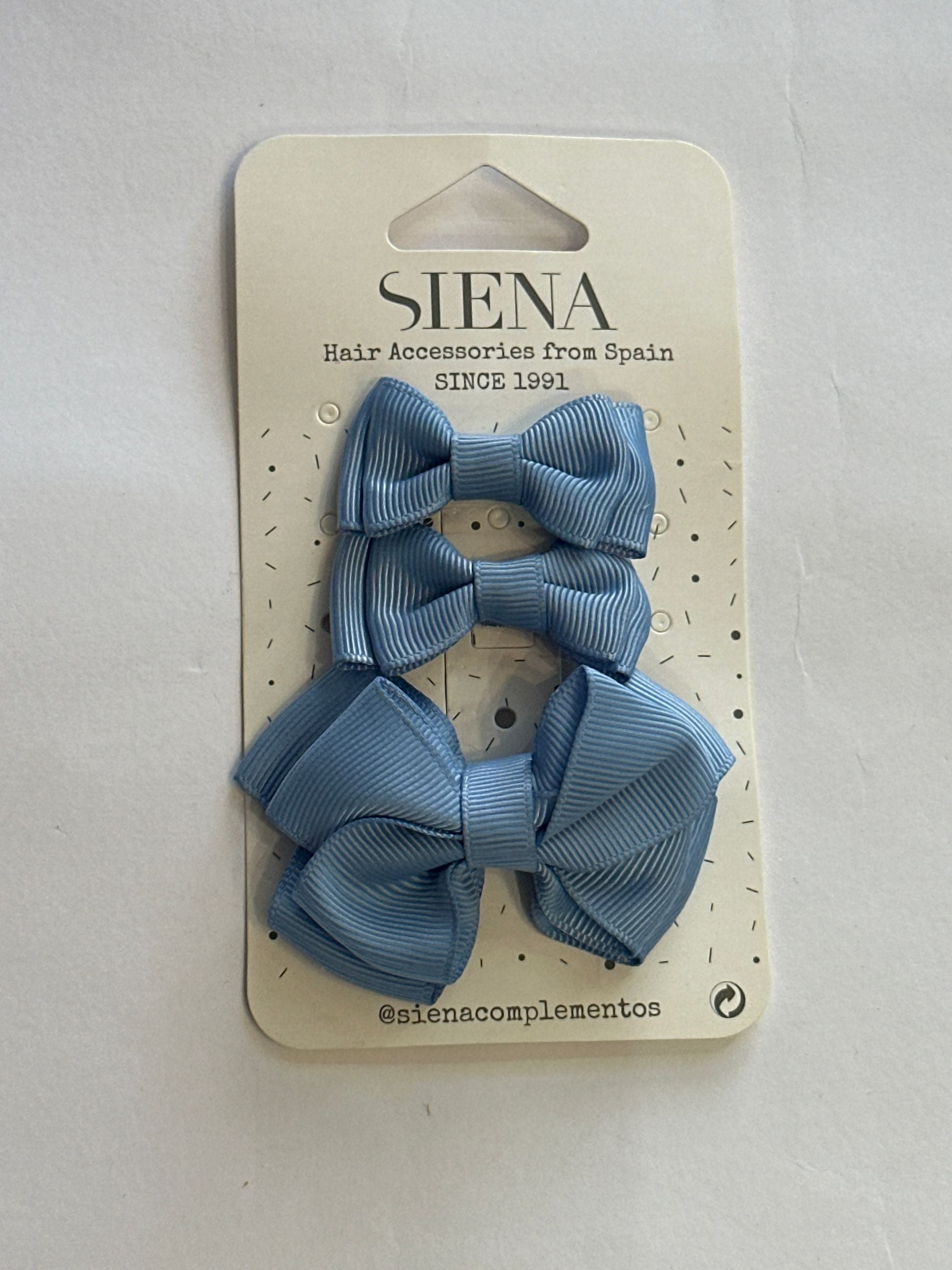set 3 mollettine in grosgrain con pinza in argento di due grandezza due piccole e una media, adatte a mantenere tutti i tipi di capelli e perfette per tutte le occasioni ed acconciature. i fiocchi sono molto voluminosi e mantenuti da una stoffa centrale che garantisce la tridimensionalità del fiocco