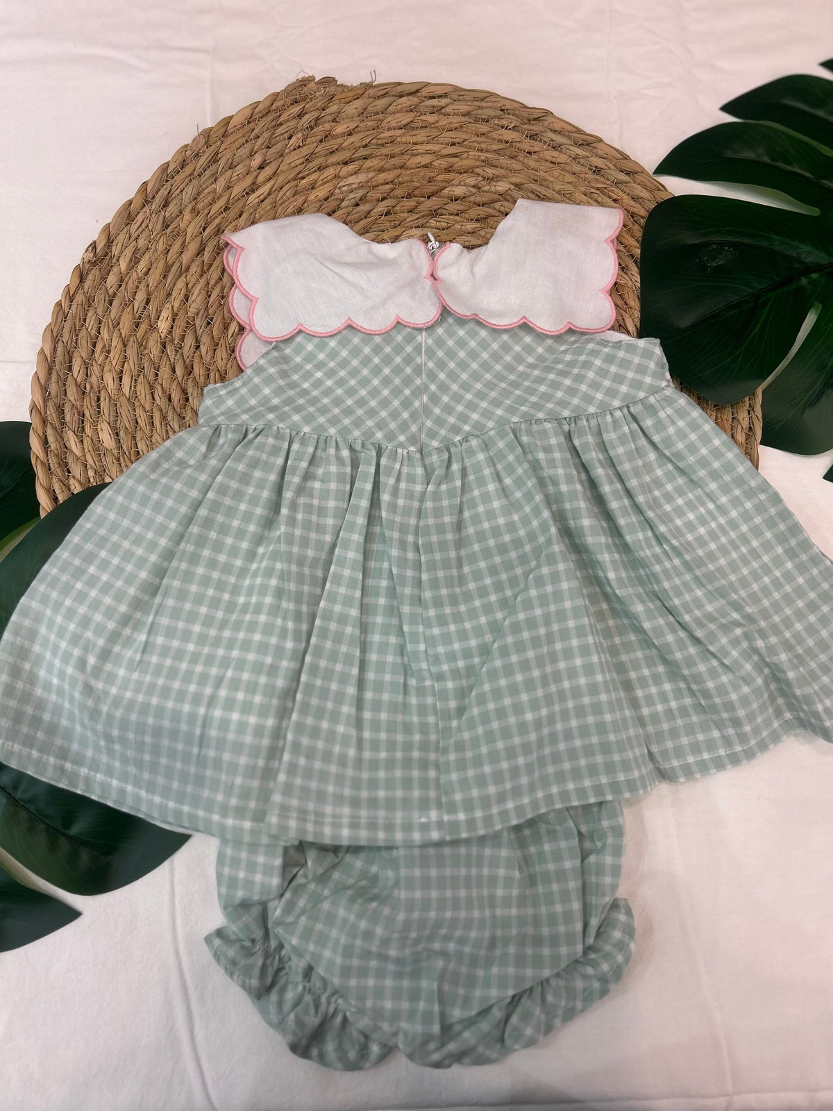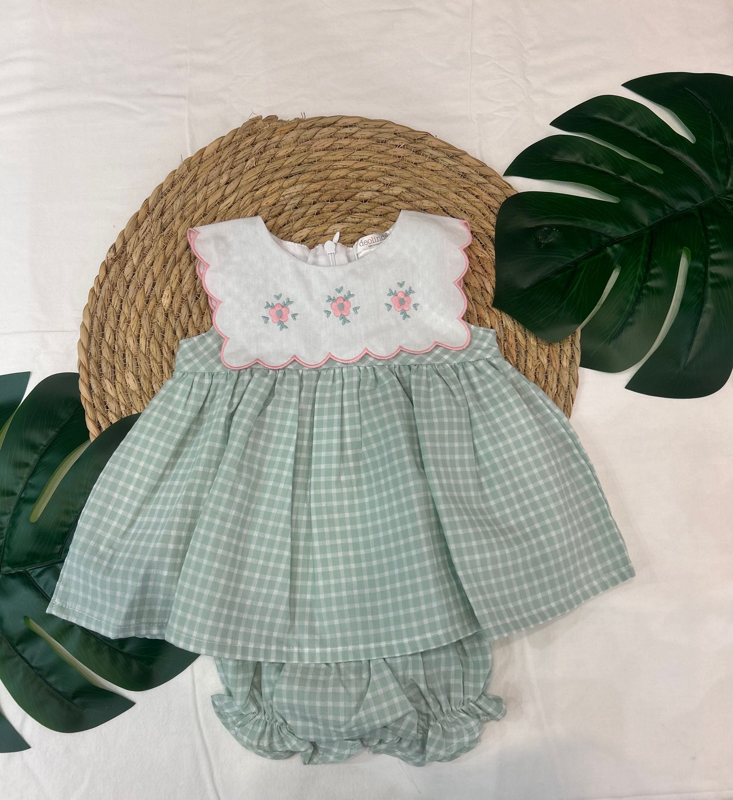 completo con blusa fantasia quadri, con collo quadrato con fiori rosa ricamati e coulotte. un completo adatto ad ogni occasione anche quelle più casual per fare in modo che la tua piccola sia sempre alla moda