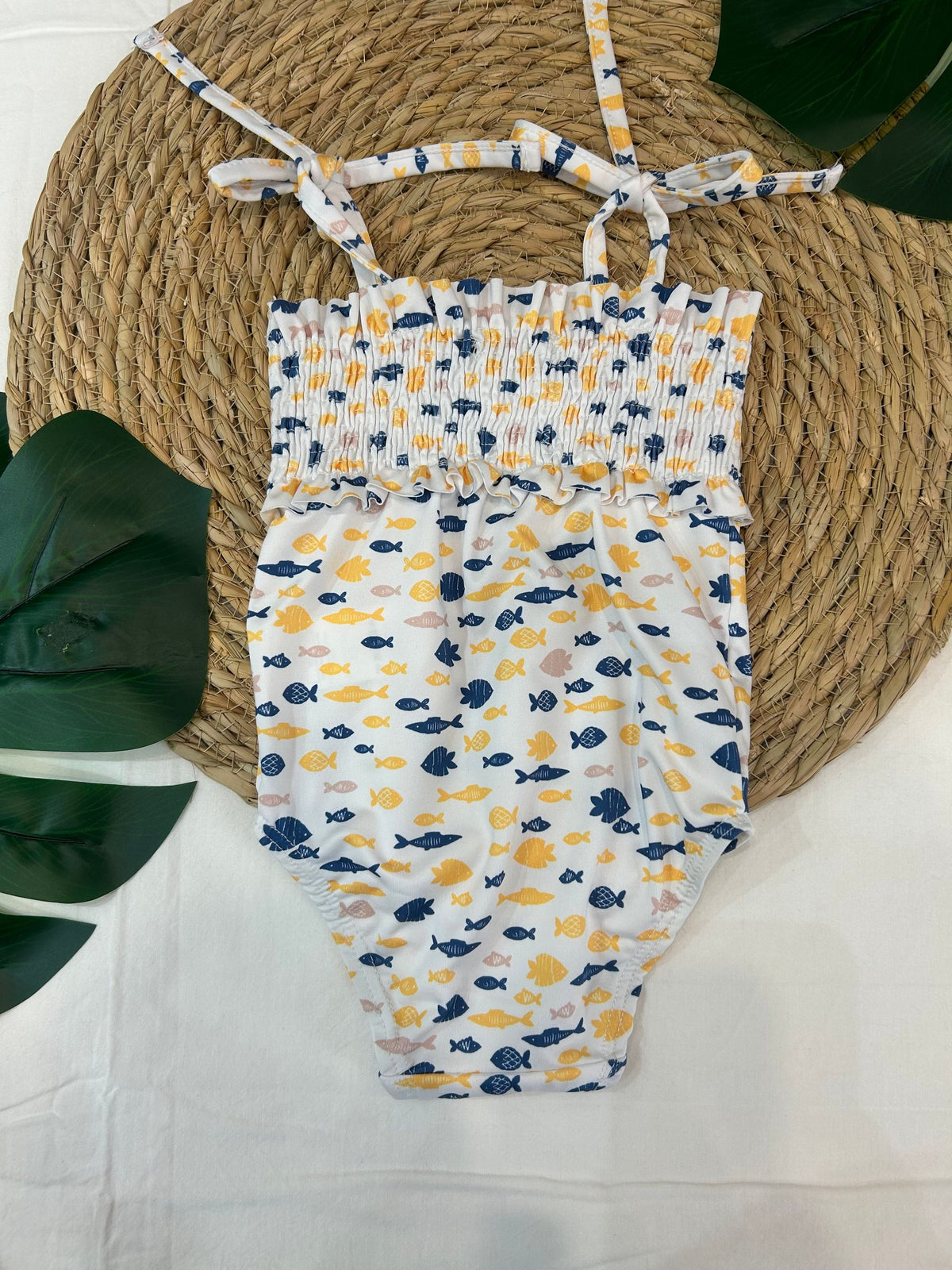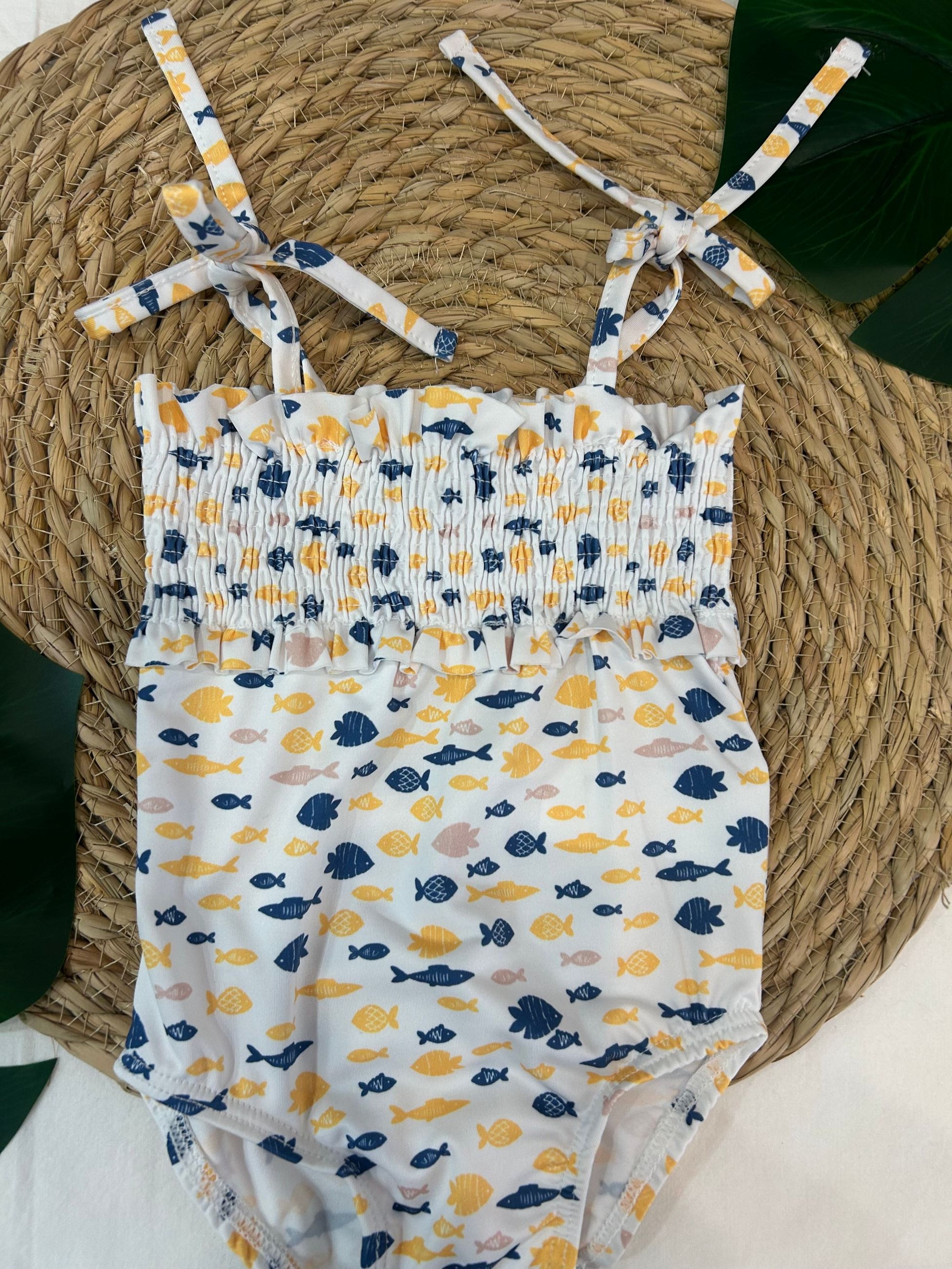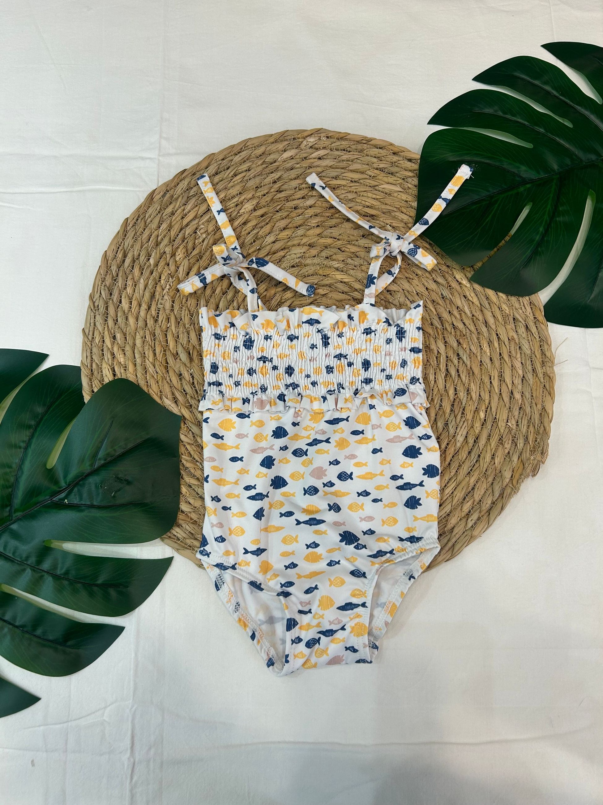 costume intero in lycra, con arriccio sul petto e bretelle regolabili
