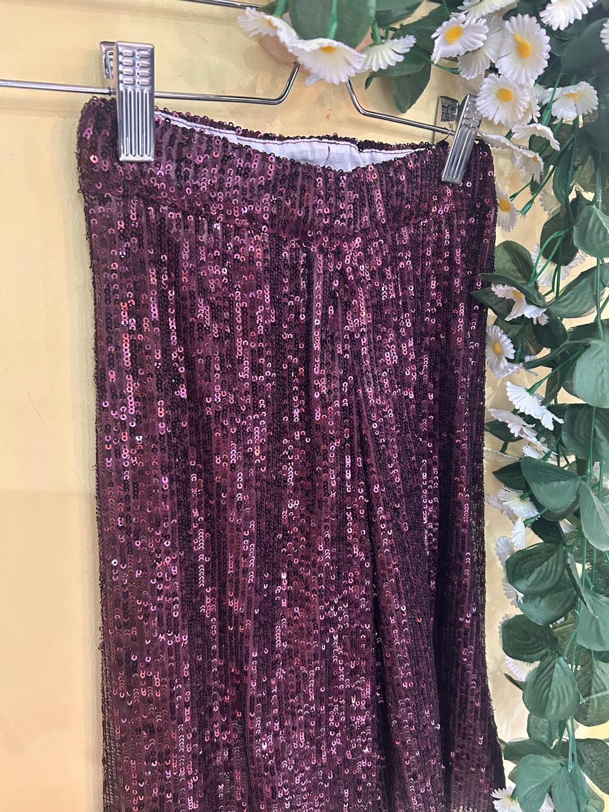 pantalone con elastico in vita modello pantapalazzo con micro paillettes tone sur tone