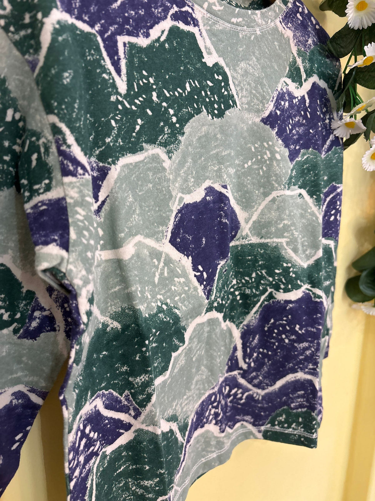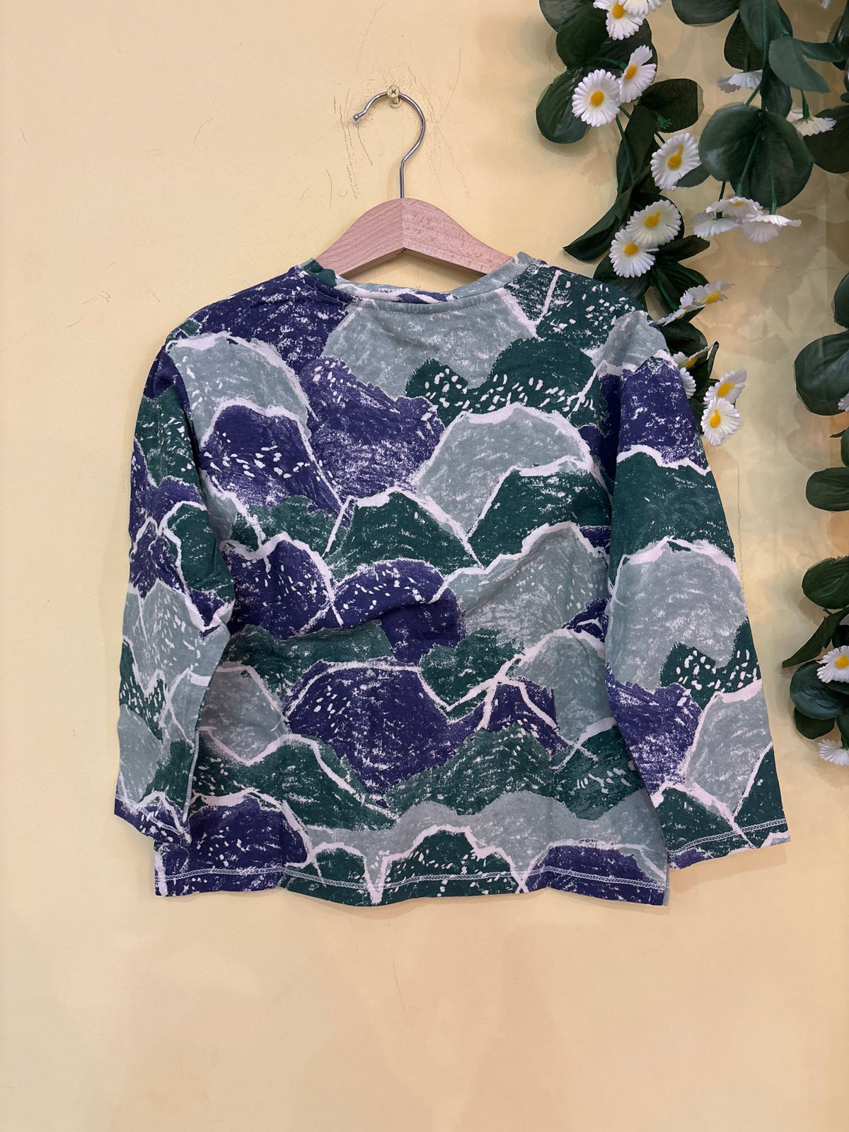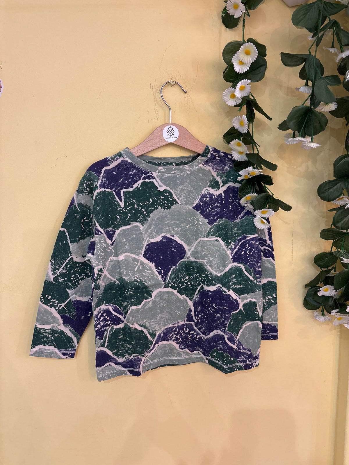 t-shirt girocollo con manica lunga in cotone antiallergico fantasia astratta