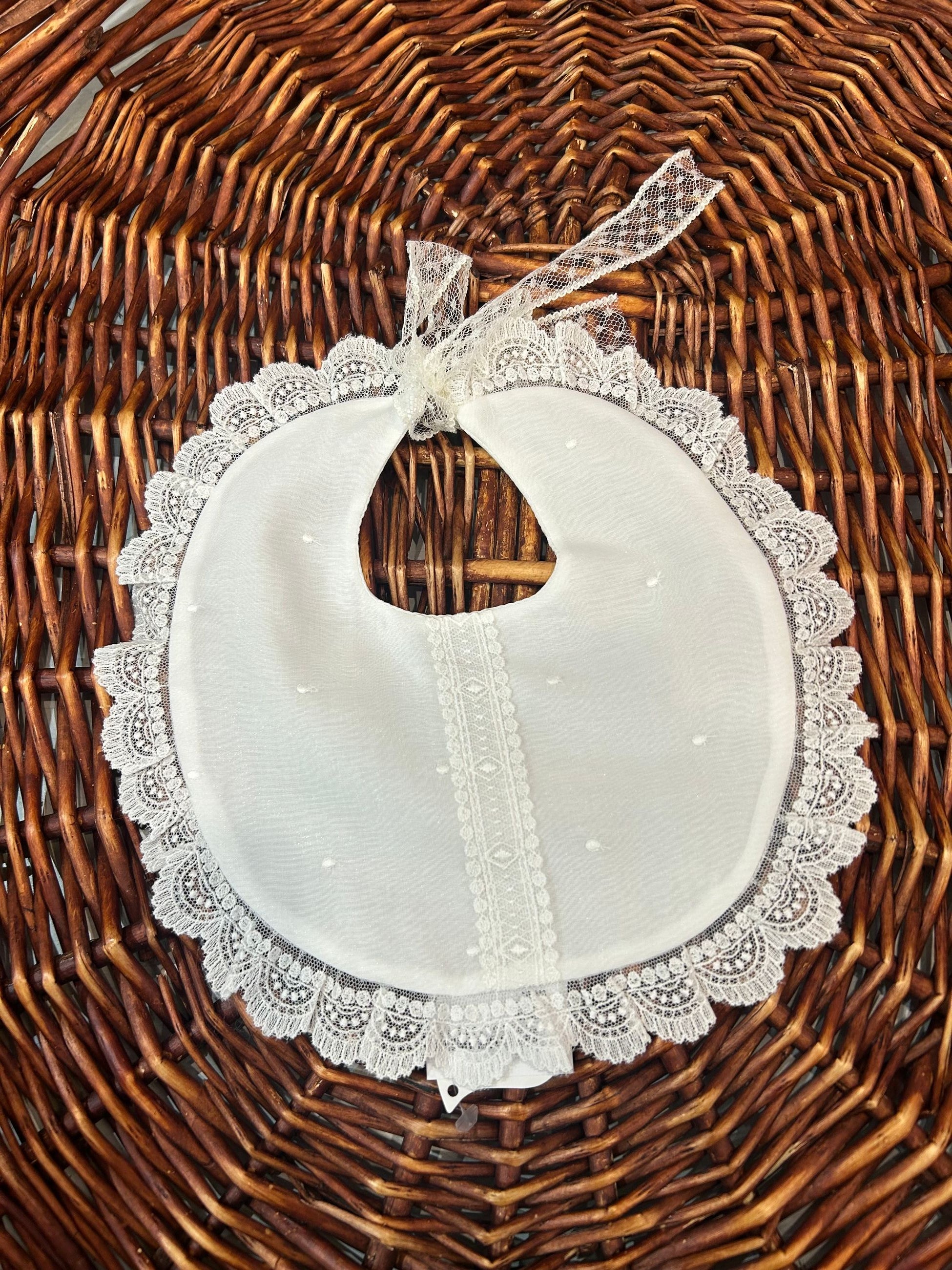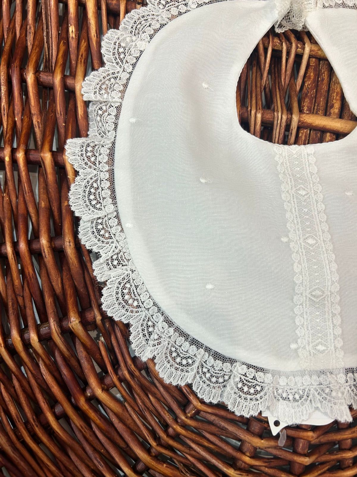 bavetta co ricamo centrale e pizzi sul profilo, con laccetto per regolarla