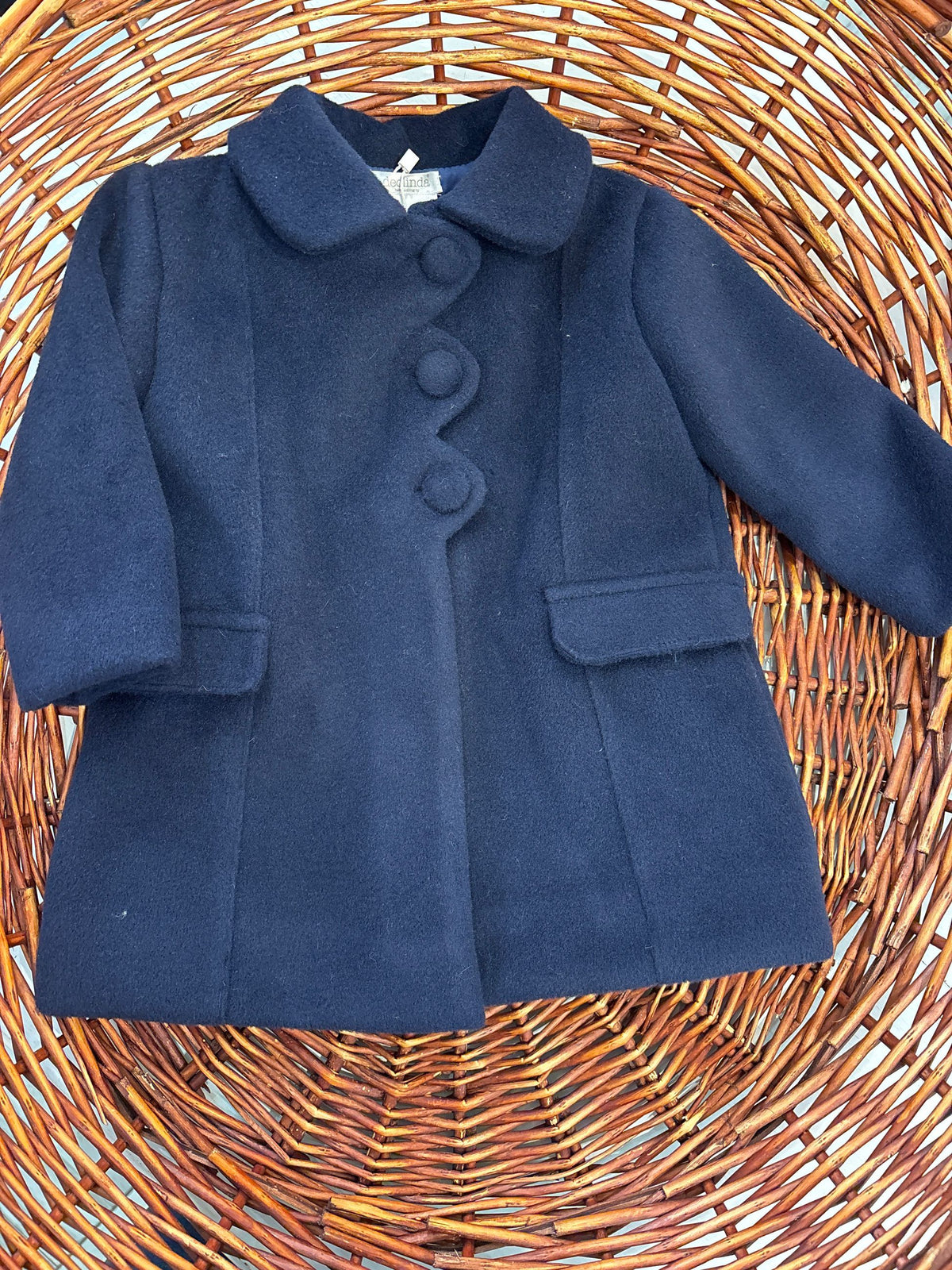 cappotto in morbidissimo panno,caldissimo e comodo co collo tondo e bottoni rivestiti,l'orlo ondulato lo rende ancora piu lezioso e dal gusto classico