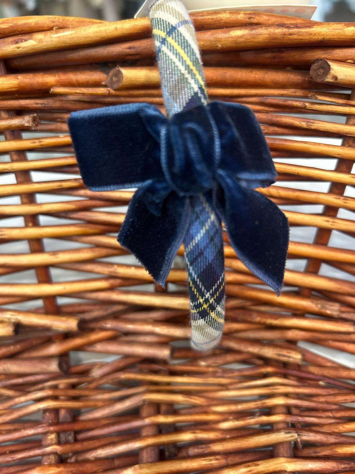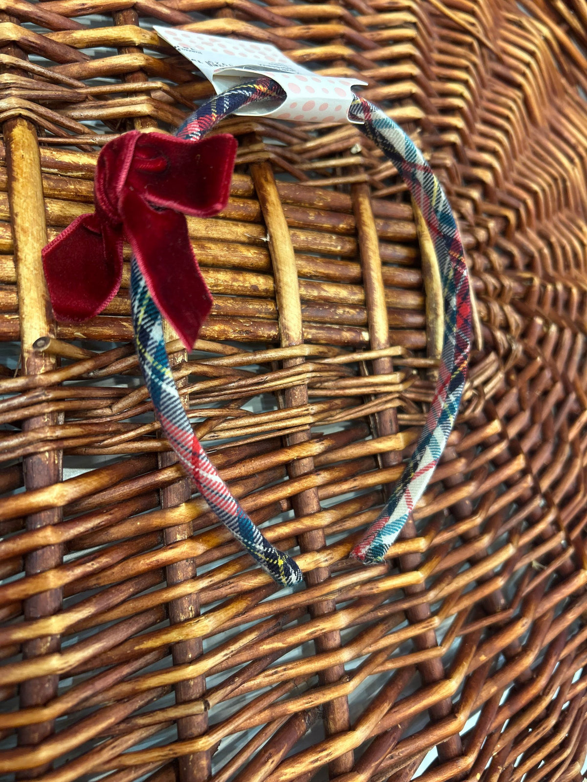 frontino foderato con tessuto tartan e fiocco in velluto tinta unita