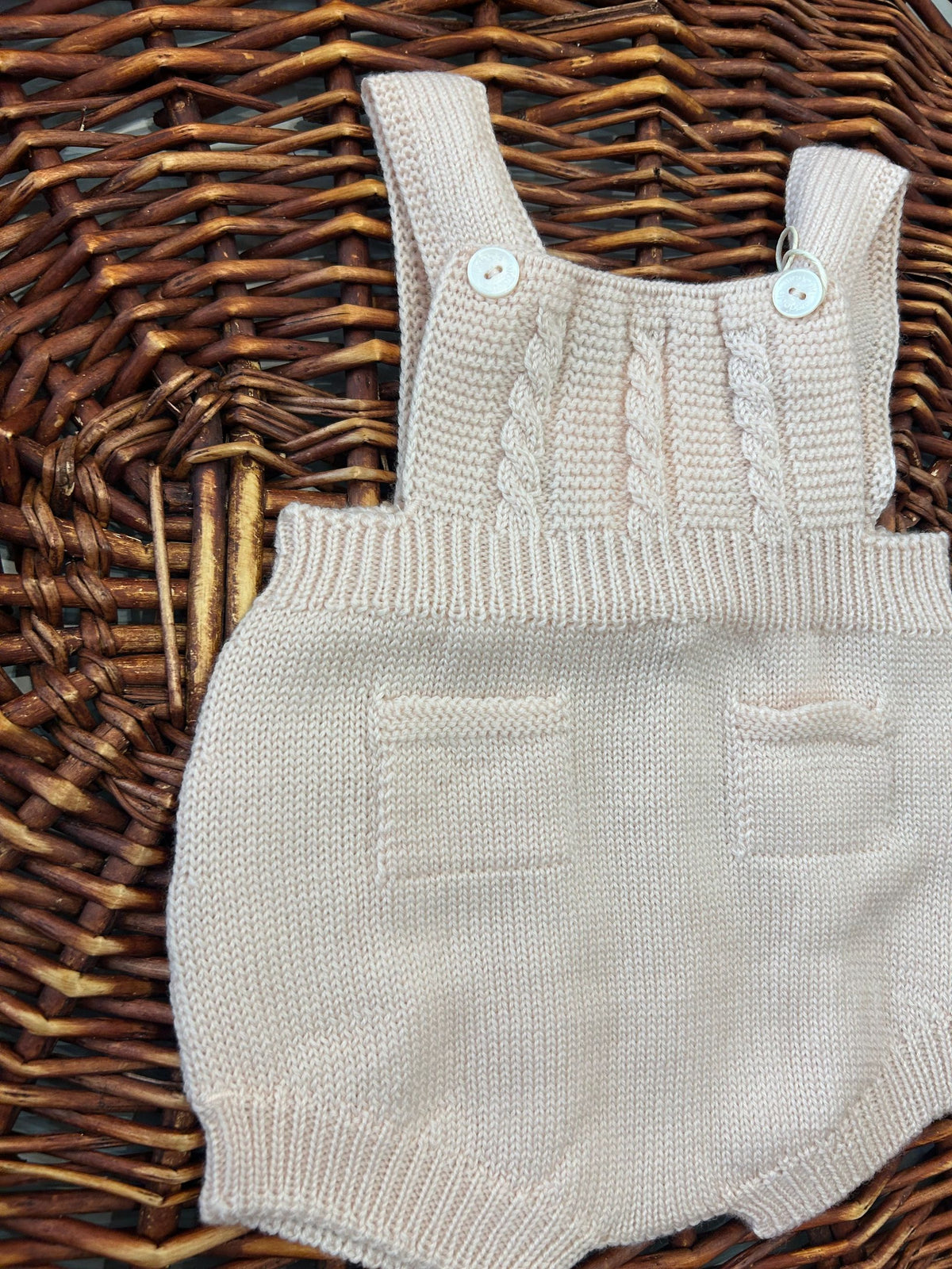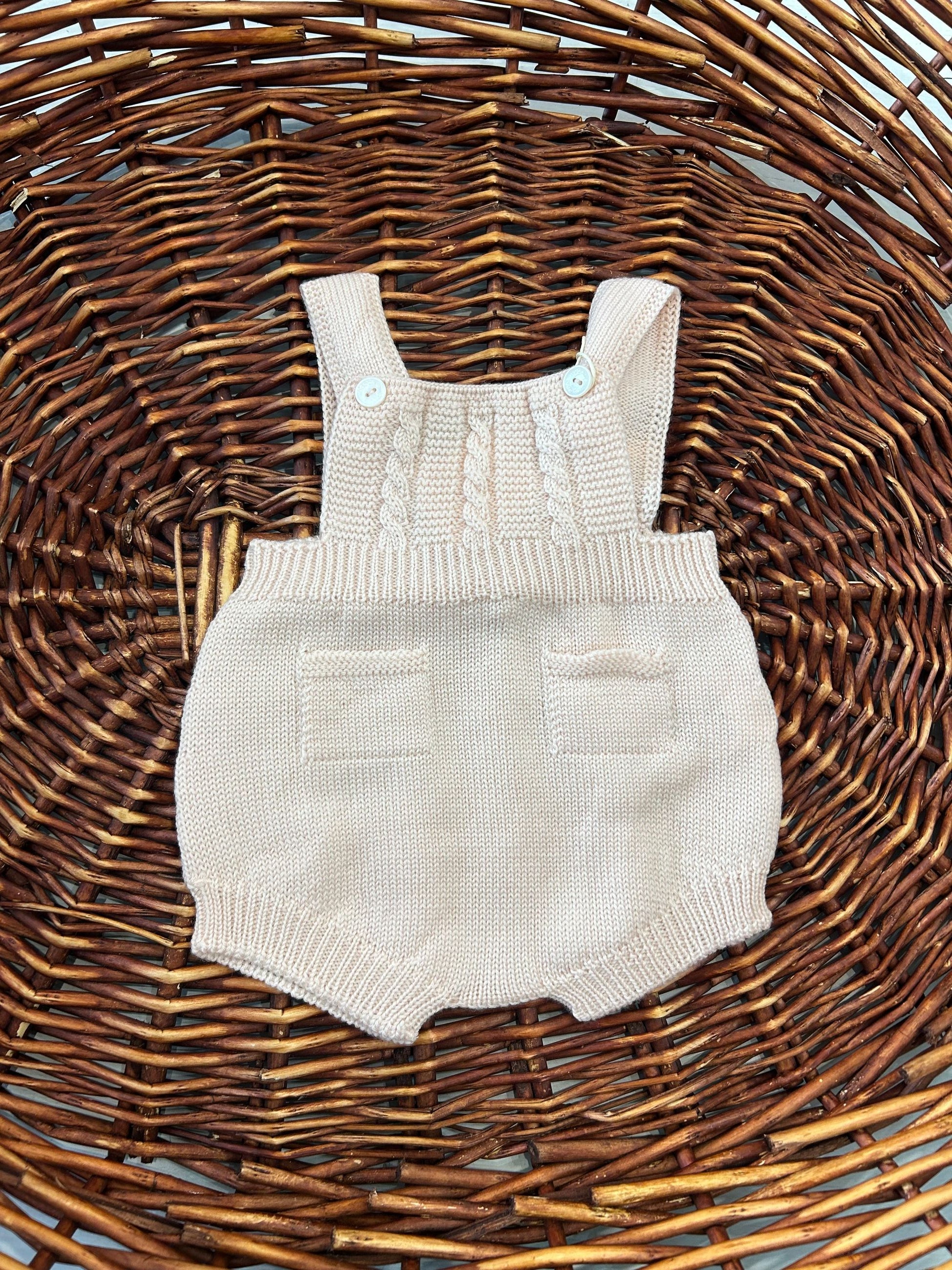 salopette corta in pura lana lavorata a trecce con bottoncini in madreperla,dal gusto classico ed raffinato