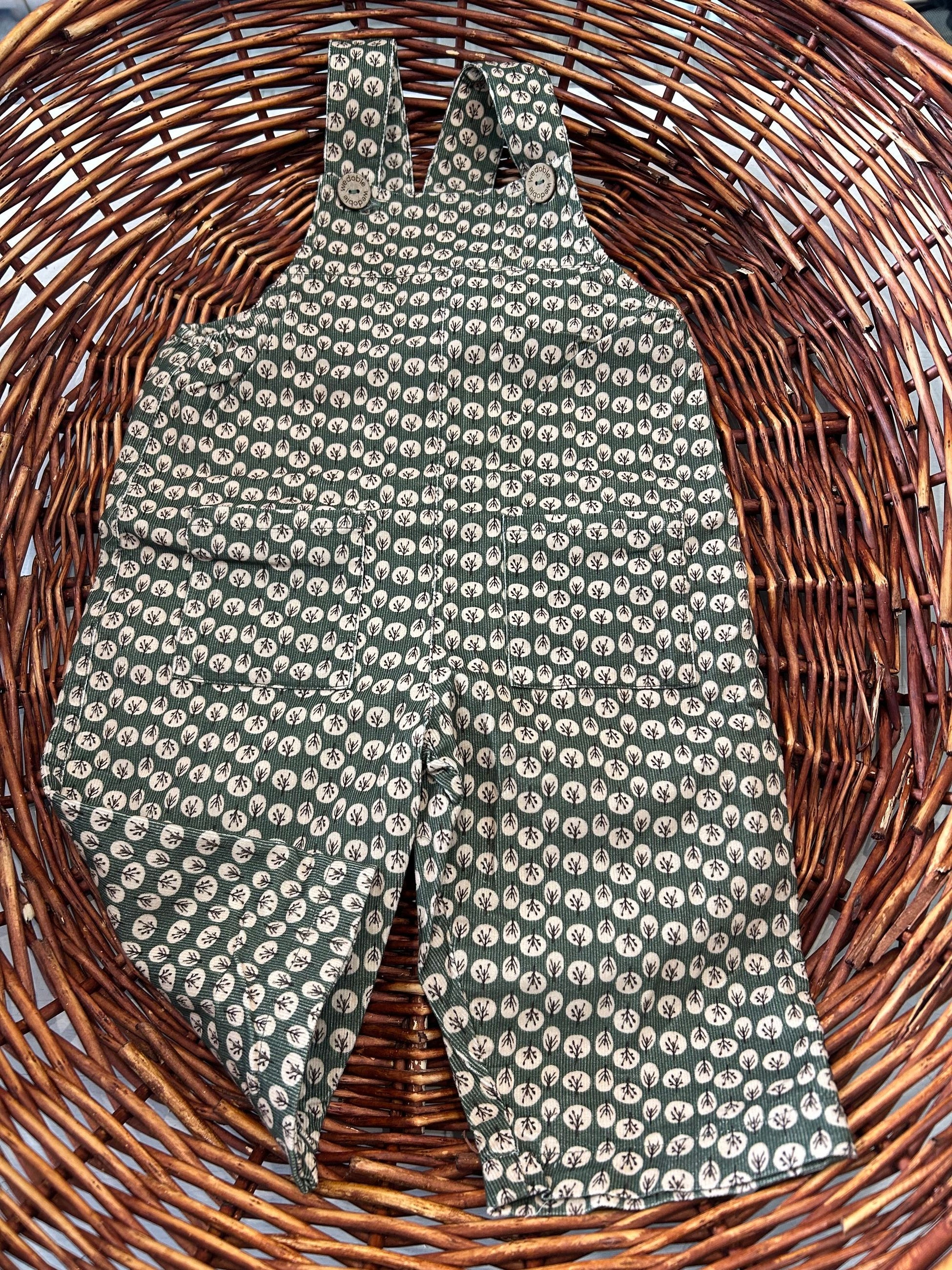 salopette in velluto a microcostine fantasia,con elastico in vita e tasche avanti,un capo classico ed raffinato