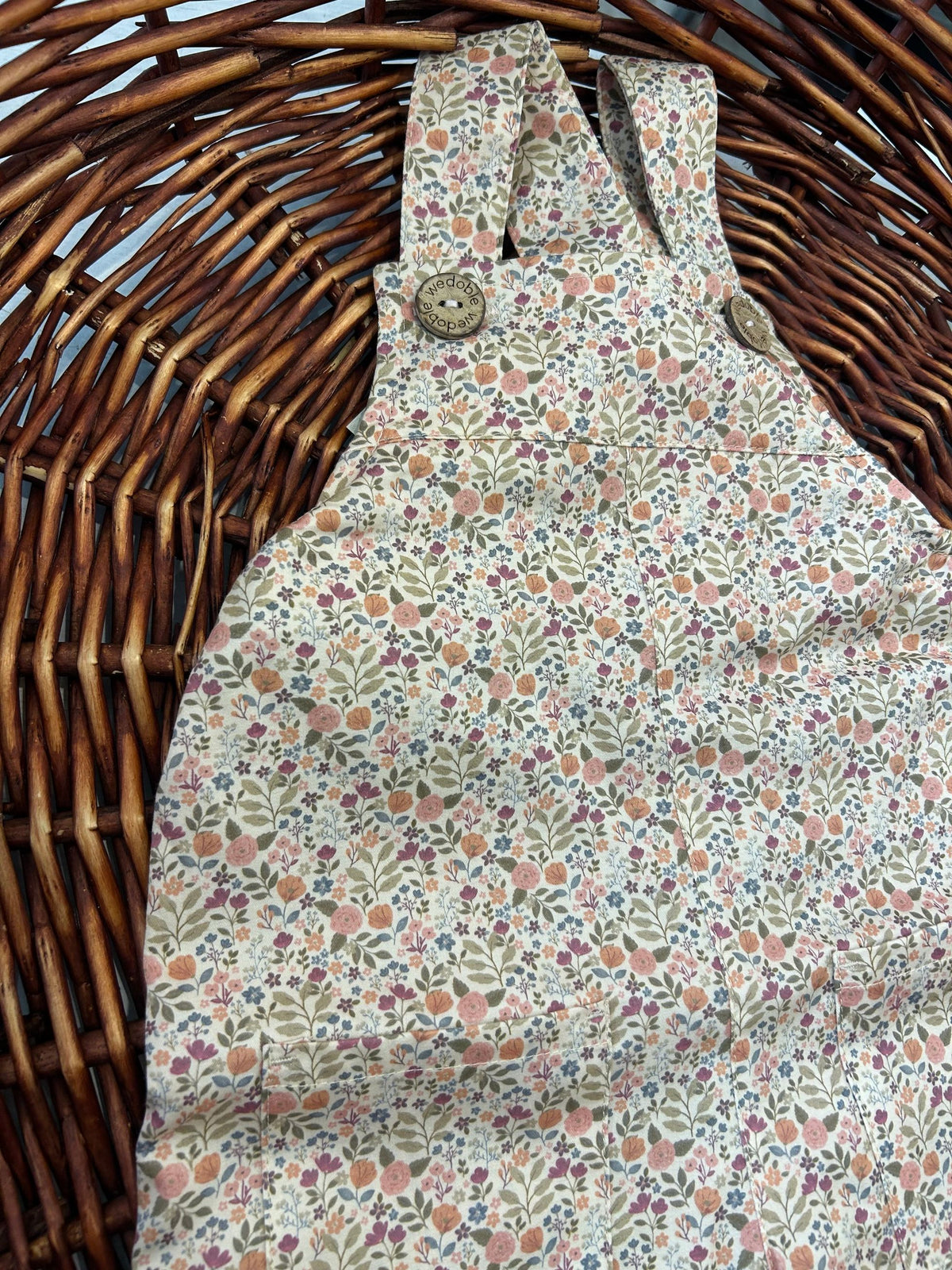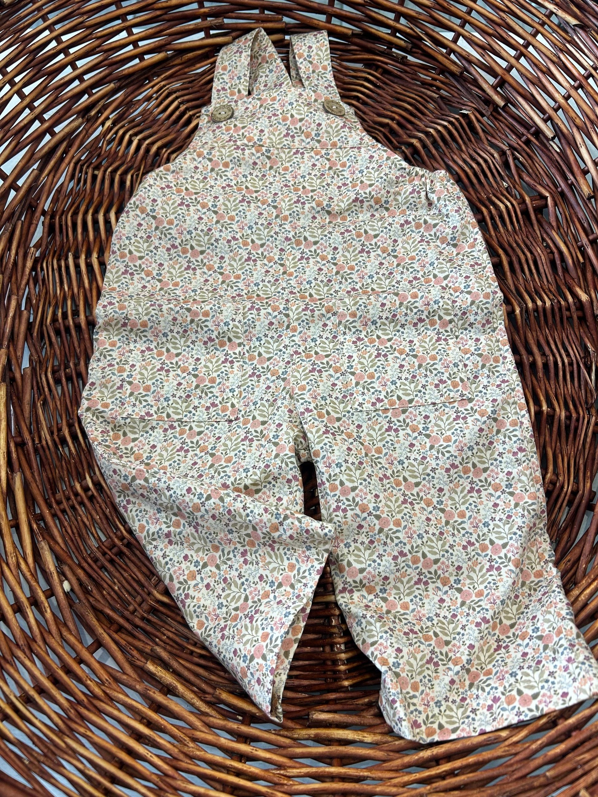 salopette in cotone fantasia lyberti ,con elastico in vita , tasche avanti e bottoni in legno,un capo classico ed raffinato