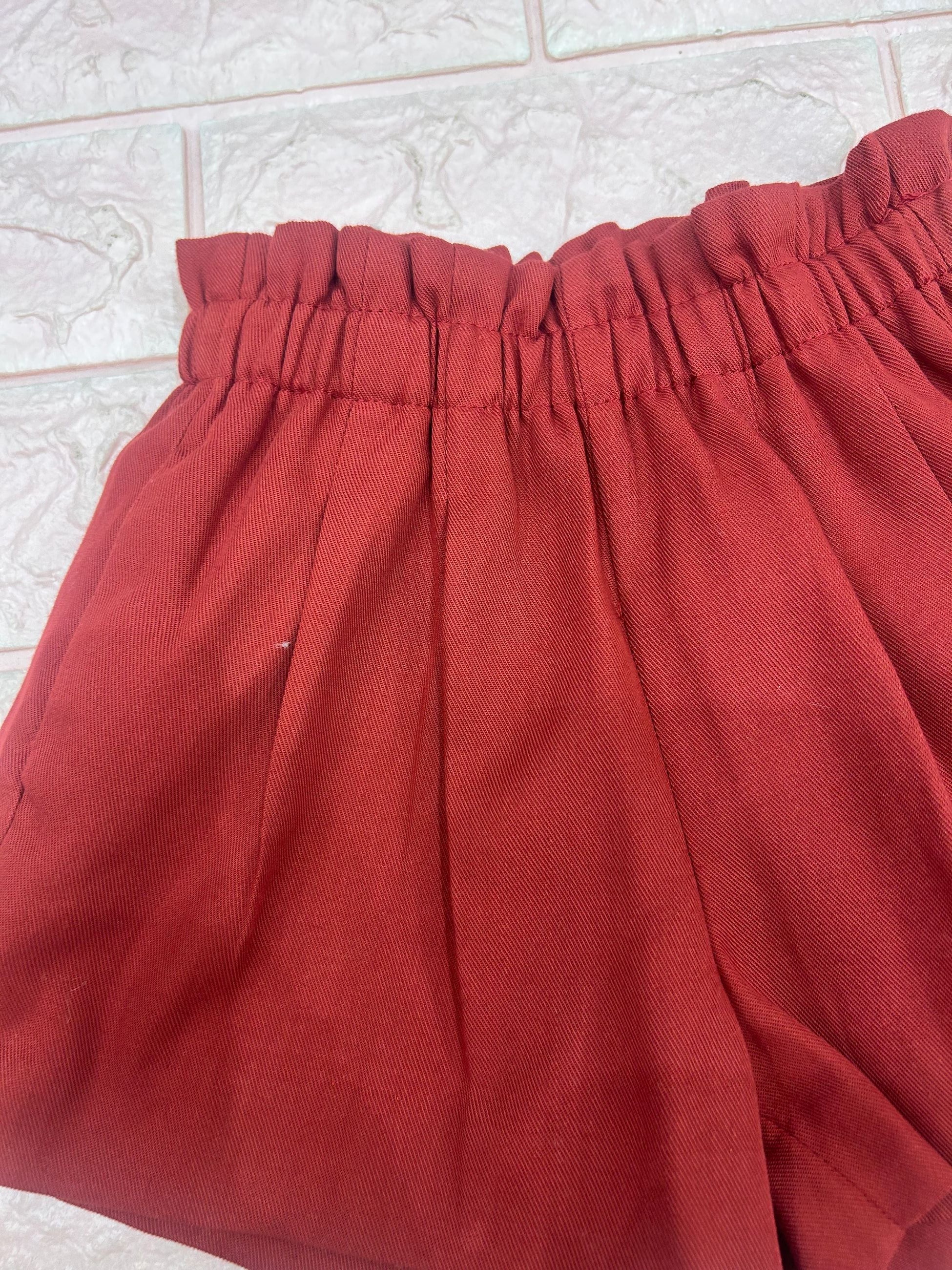 short svasato con elastico in vita in tessuto effetto seta lavata