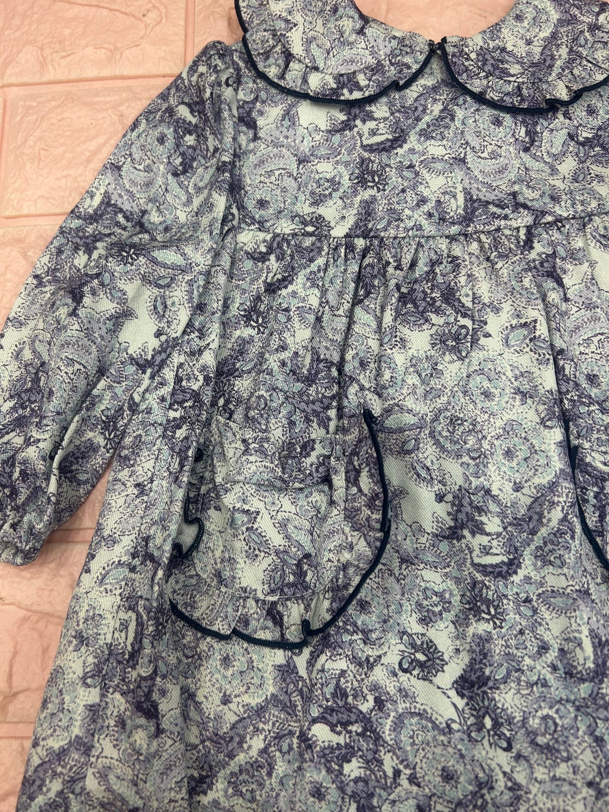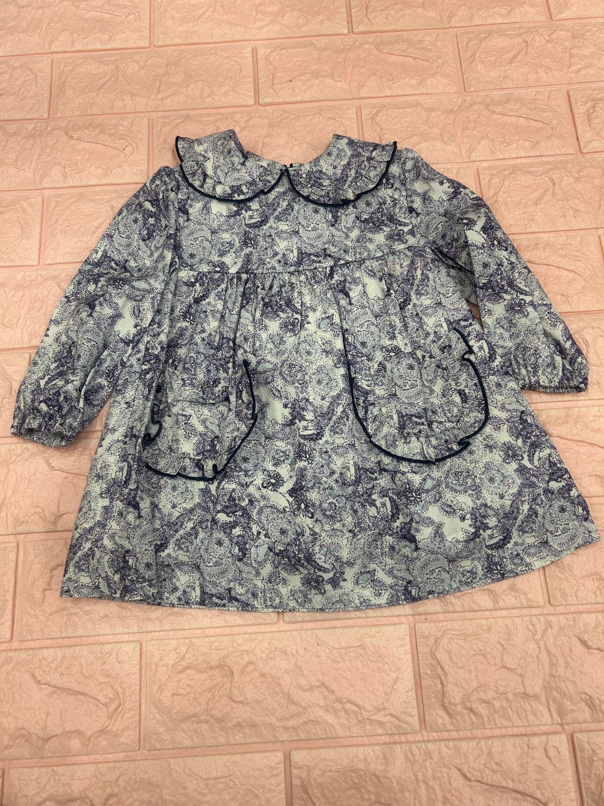 abito collo camicia in fantasia fiori astratti, manica lunga con tasche avanti