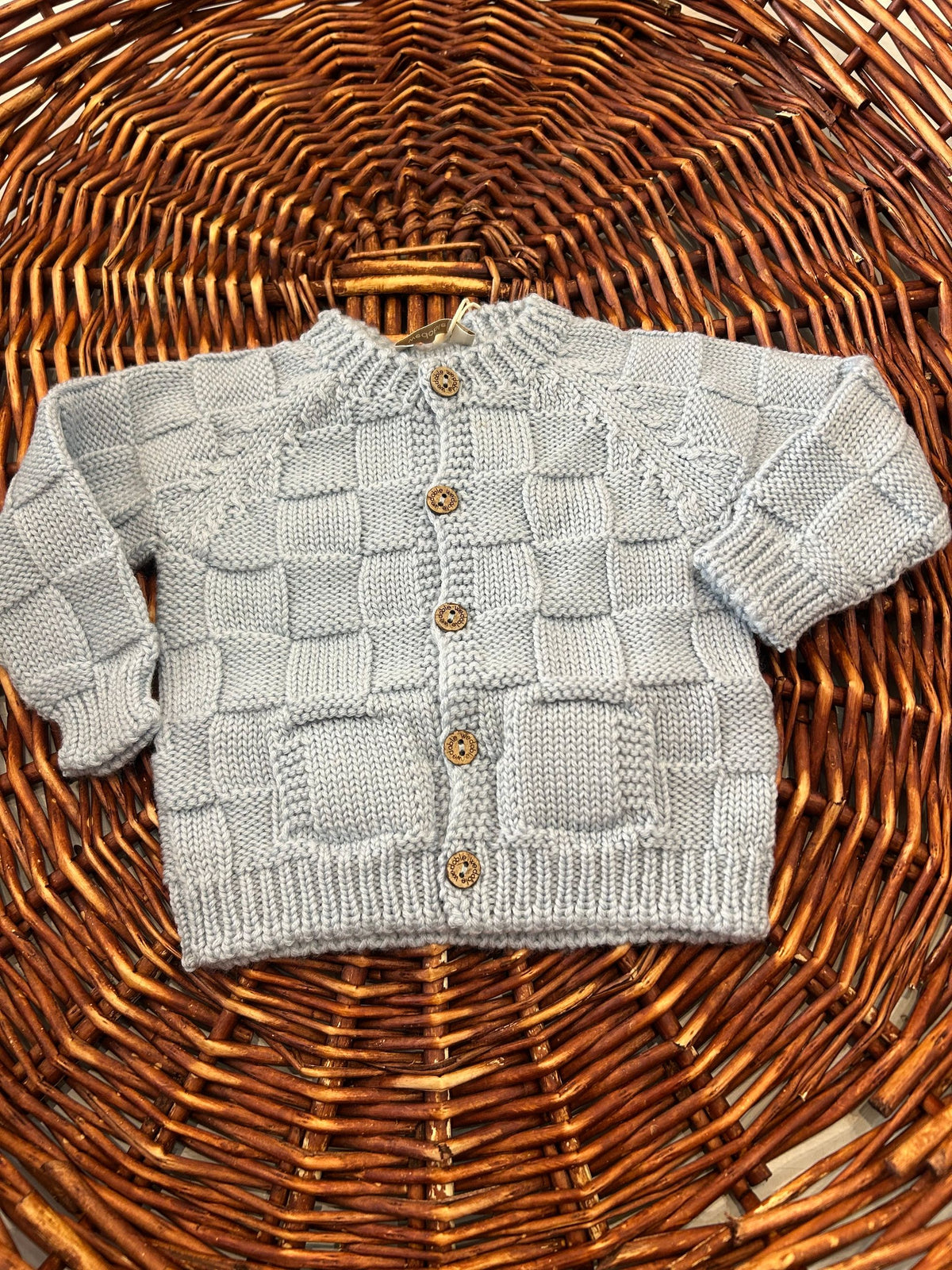cardigan in pura lana merino melange lavorata a coste larghe ,girocollo e bottoncini in legno,sportivo e casual pur mantenendo una linea raffinata