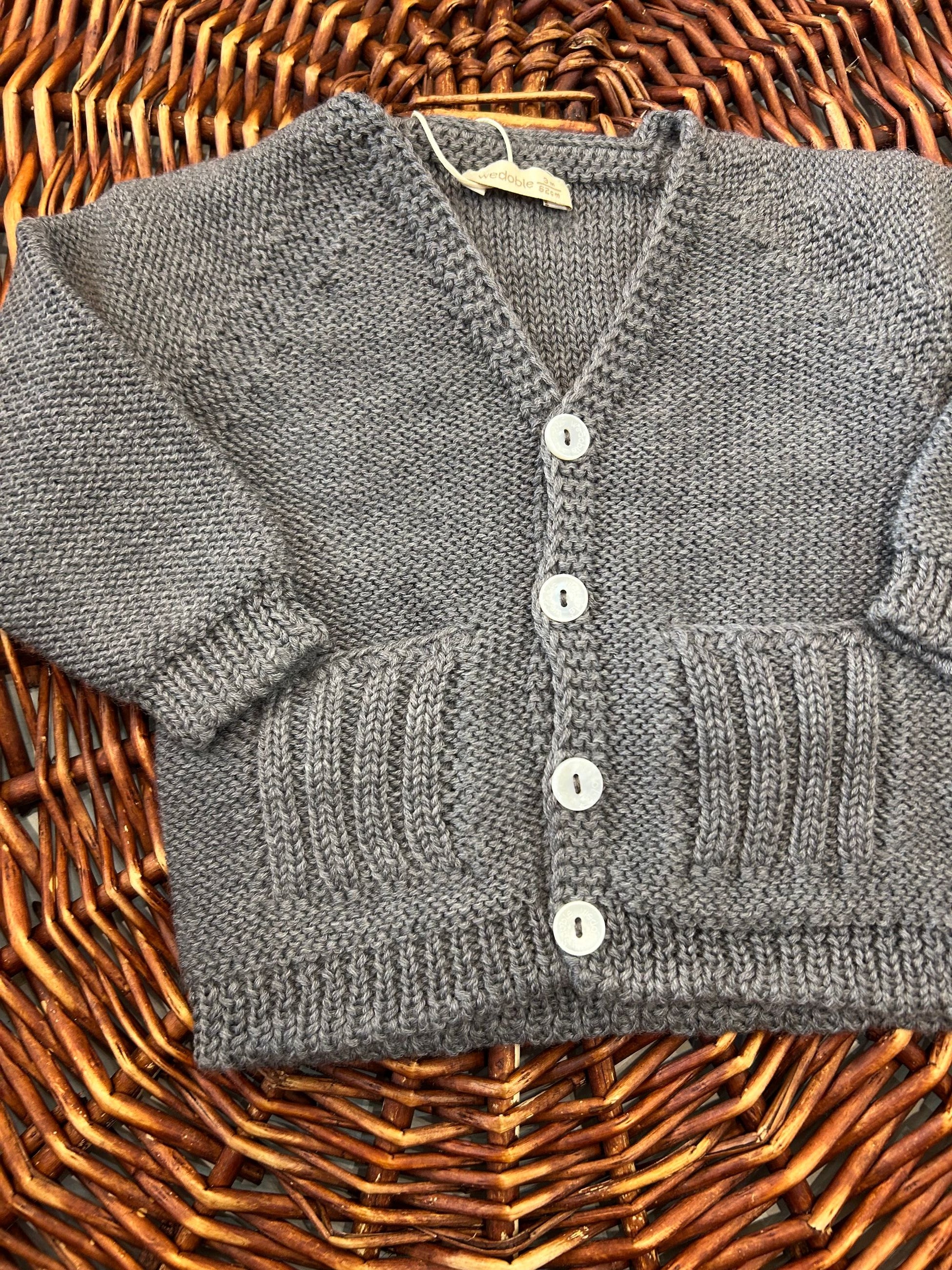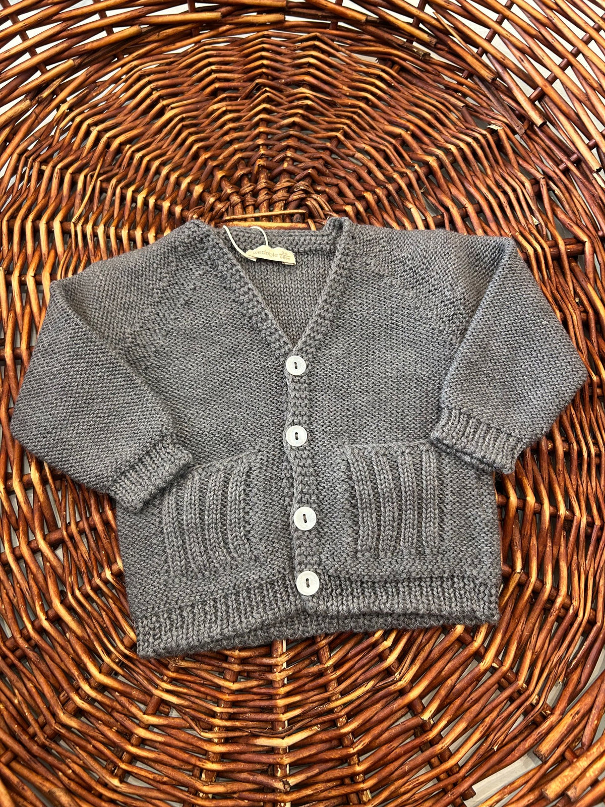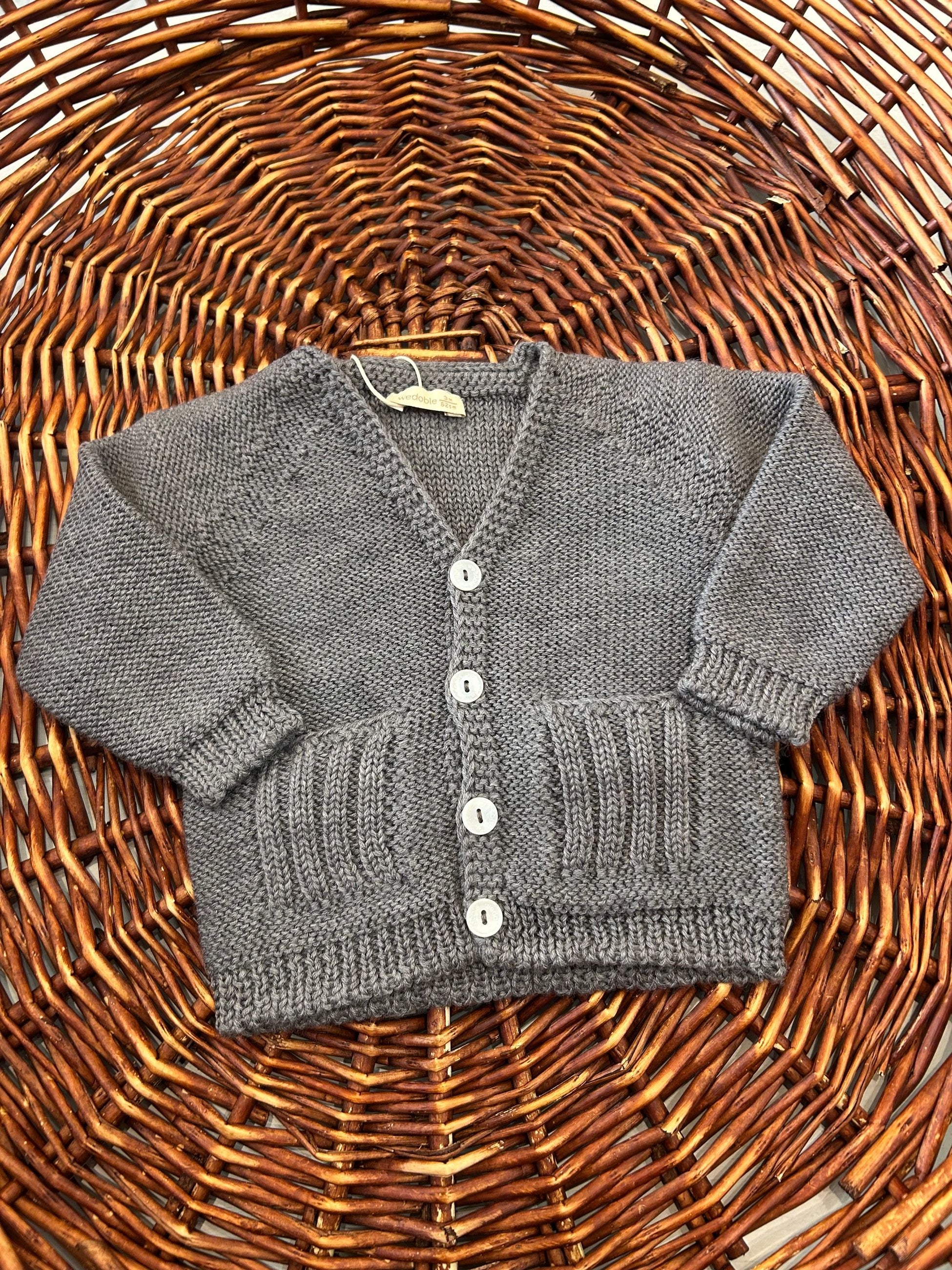 cardigan in pura lana merino lavorata a coste larghe con taschini,scollo a "V" e bottoncini in madreperla,classico ed raffinato