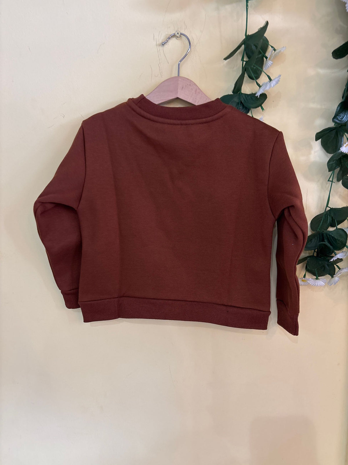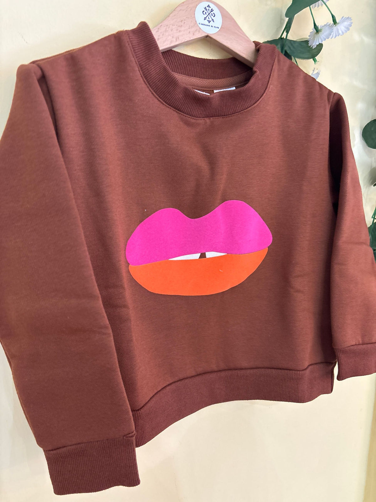 felpa in cotone garzato con costine e stampa floccata sul davanti