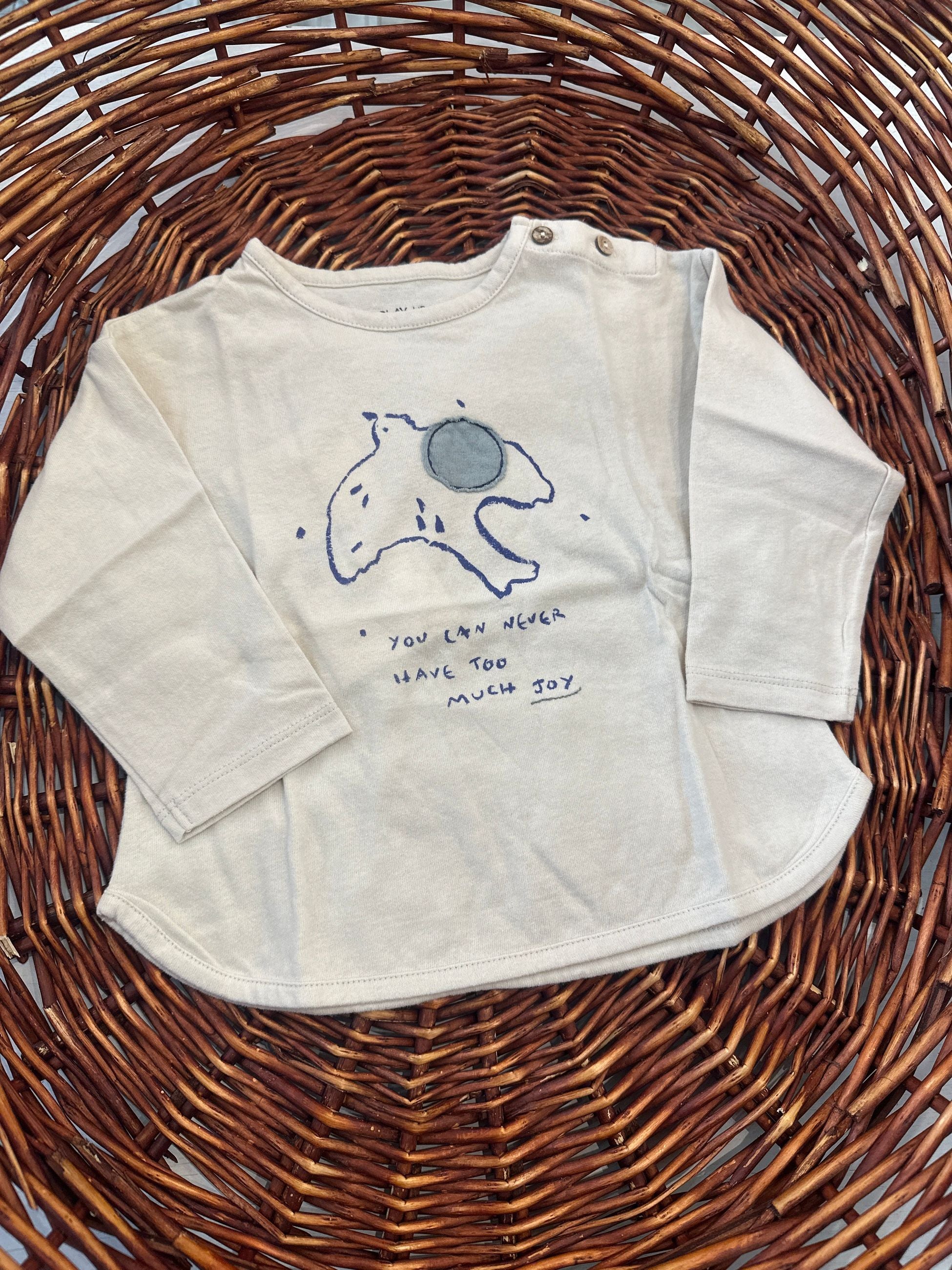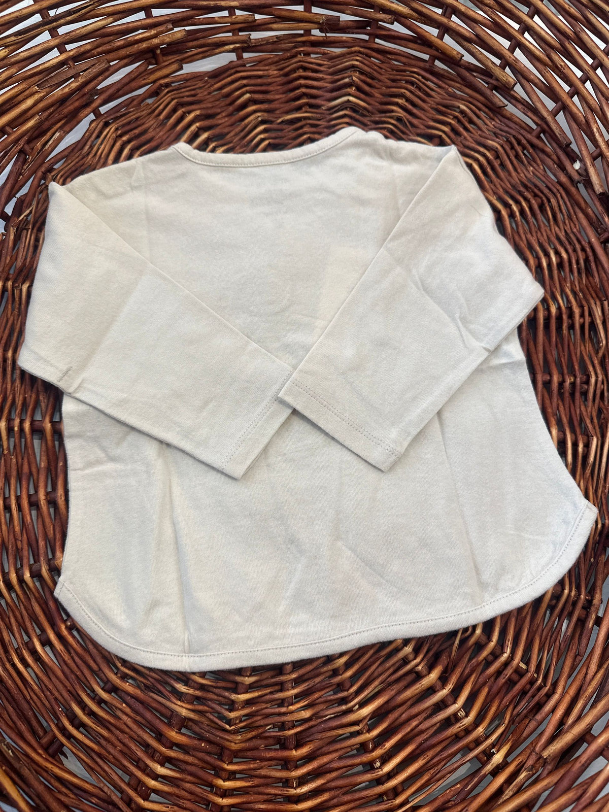 maglia girocollo in cotone antiallergico con stampa uccello e patch ,i bottoni in legno lato sx permettono un'ottima vestibilità