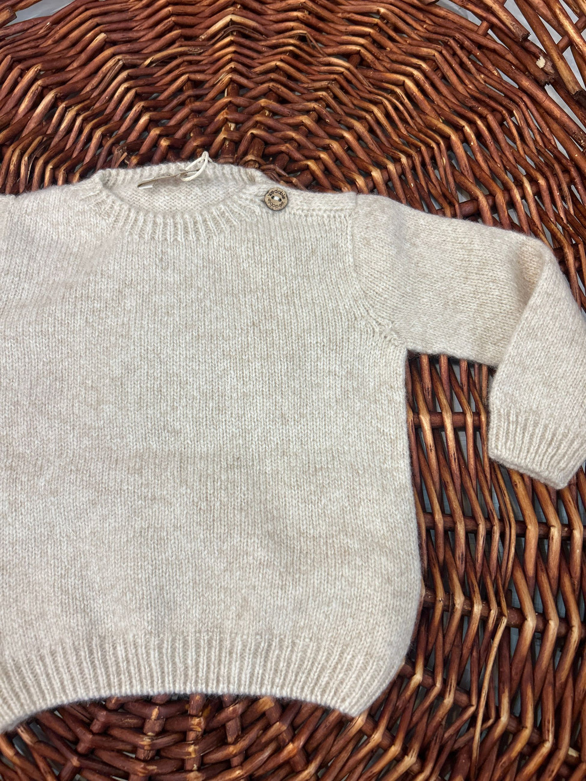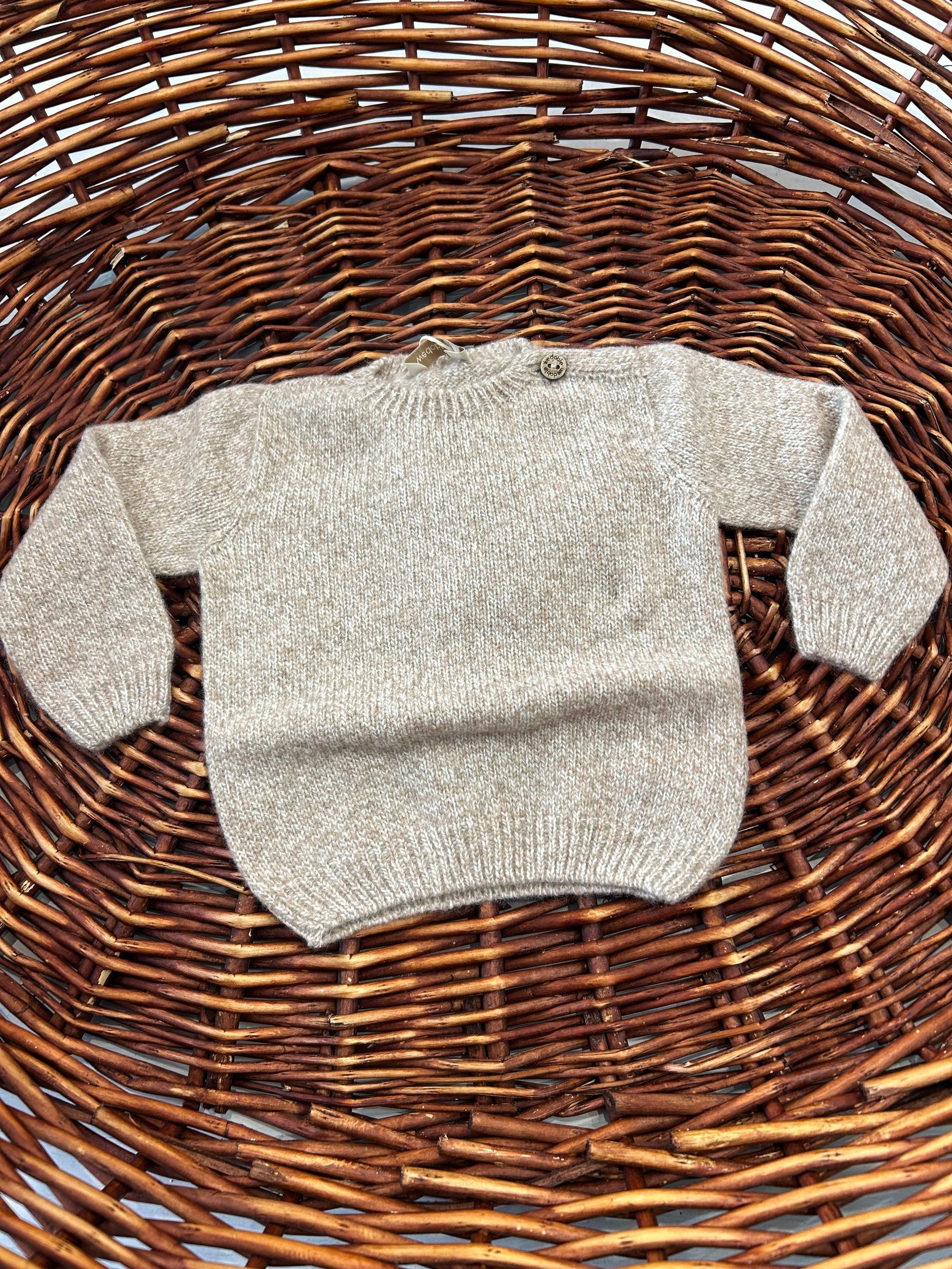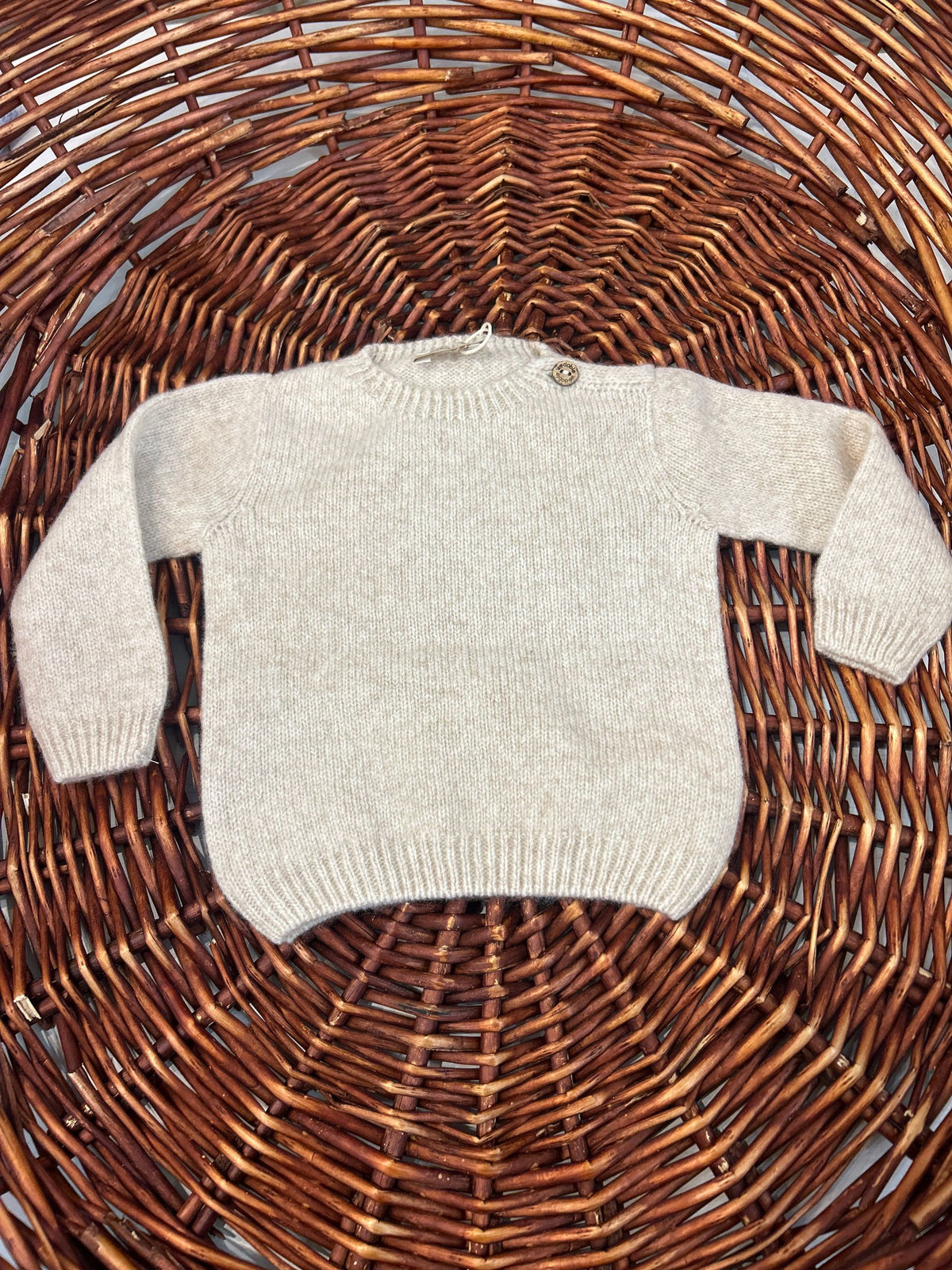 maglia in pura lana merino melange ,girocollo e bottoncini in legno al collo lato sx ,sportivo e casual pur mantenendo una linea raffinata