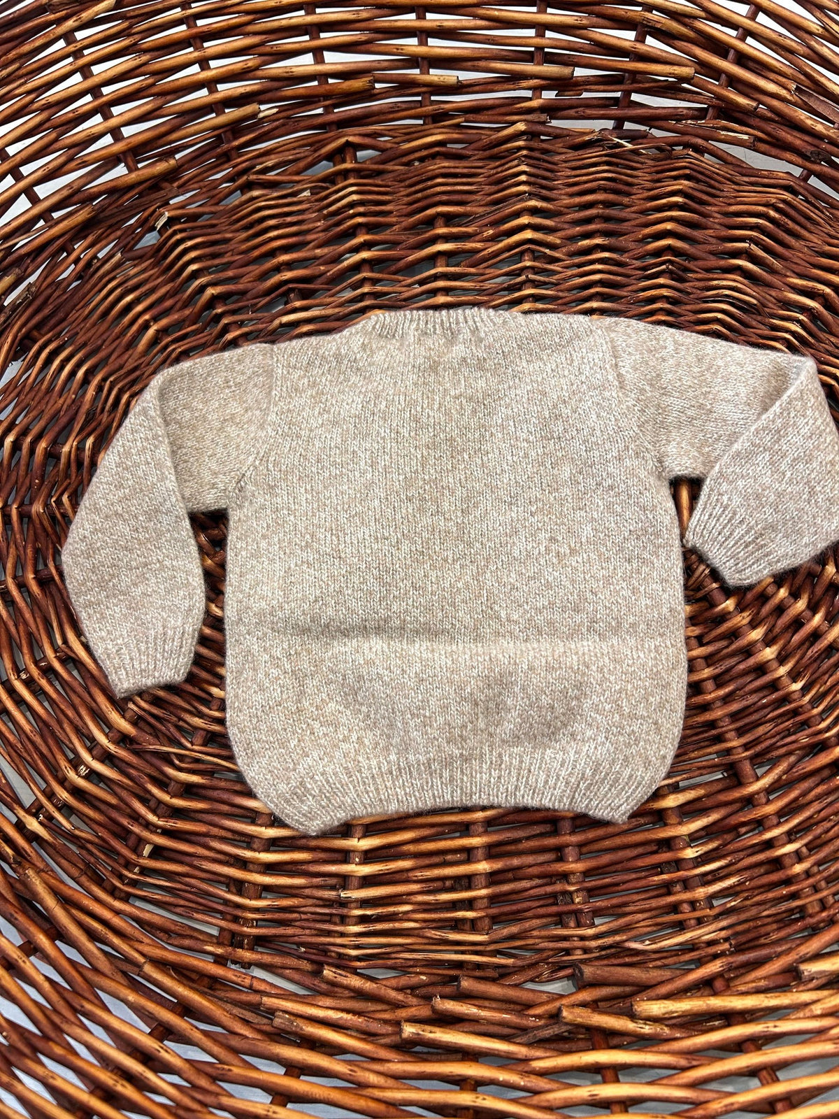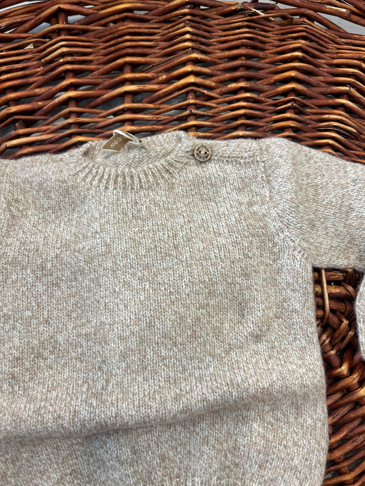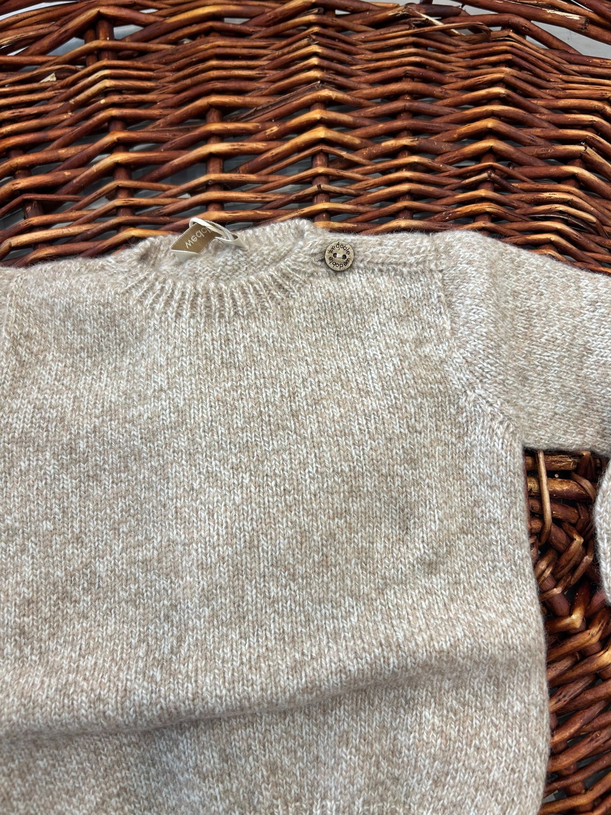 maglia in pura lana merino melange ,girocollo e bottoncini in legno al collo lato sx ,sportivo e casual pur mantenendo una linea raffinata