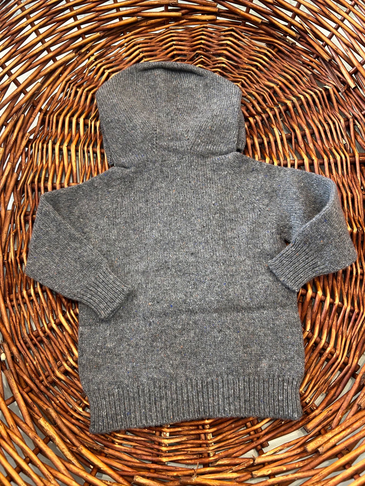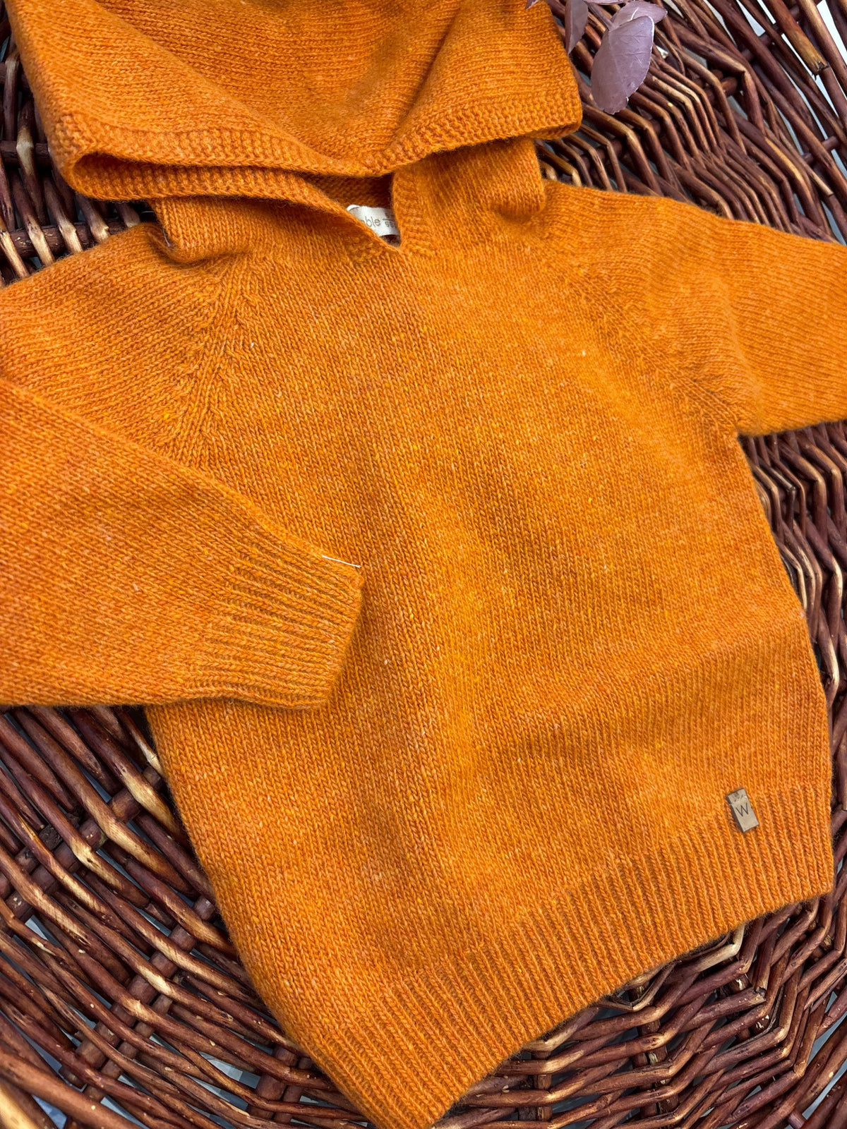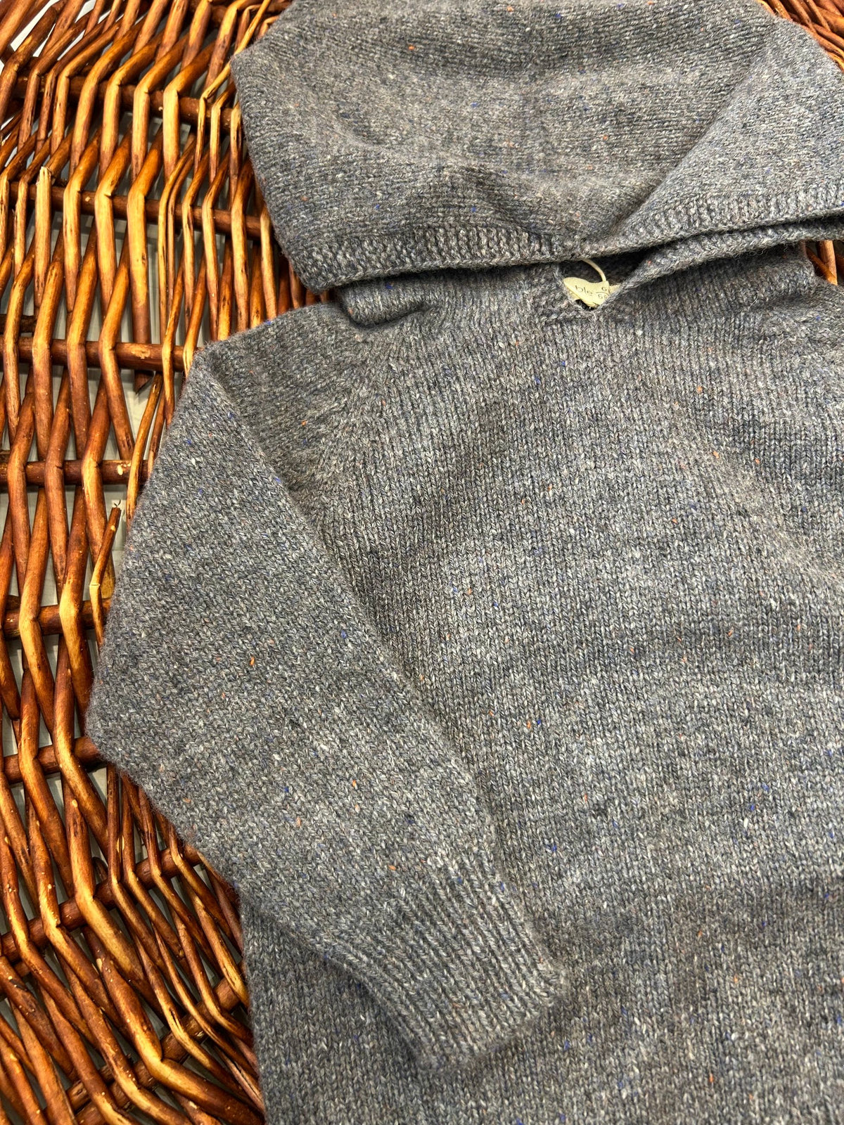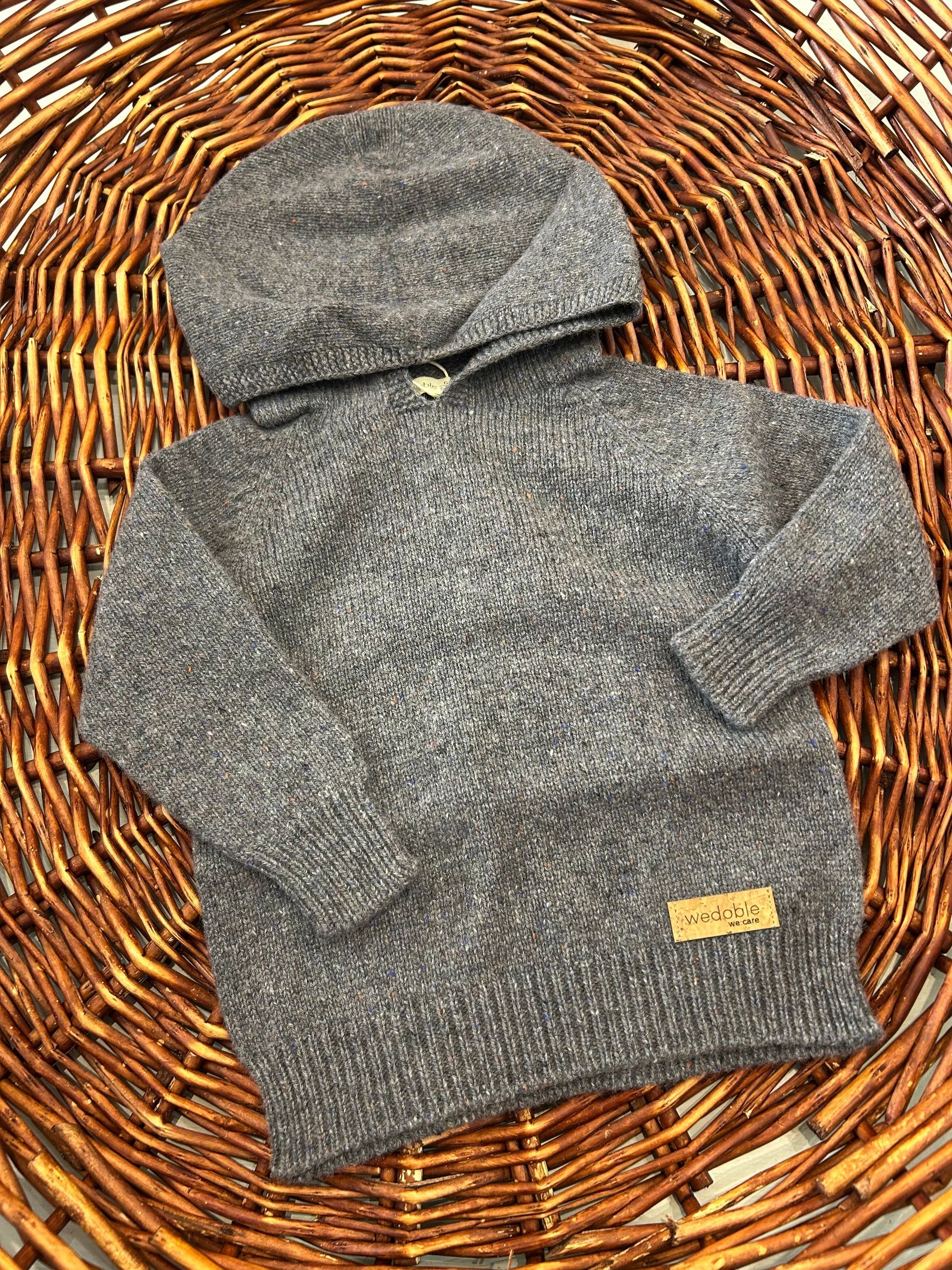 maglia modello felpa in pura lana merino melange , con cappuccio e costina al fondo , ,sportivo e casual pur mantenendo una linea raffinata