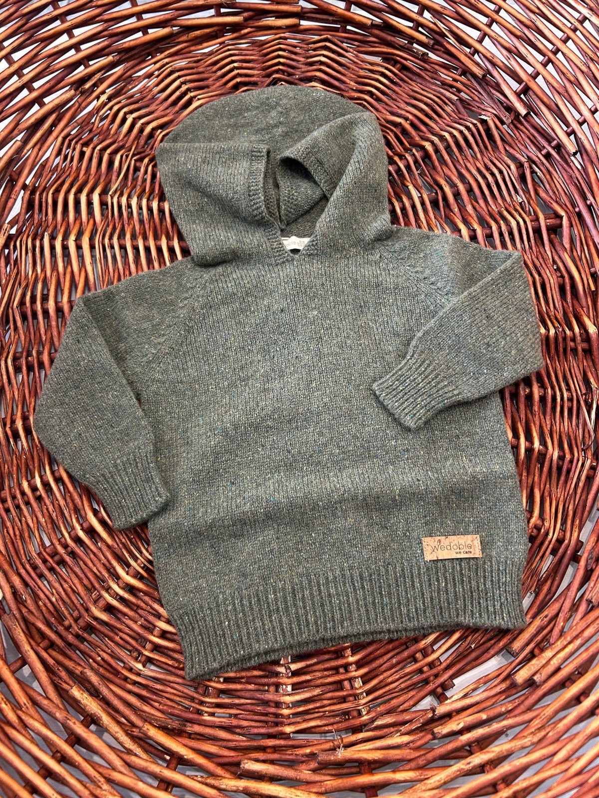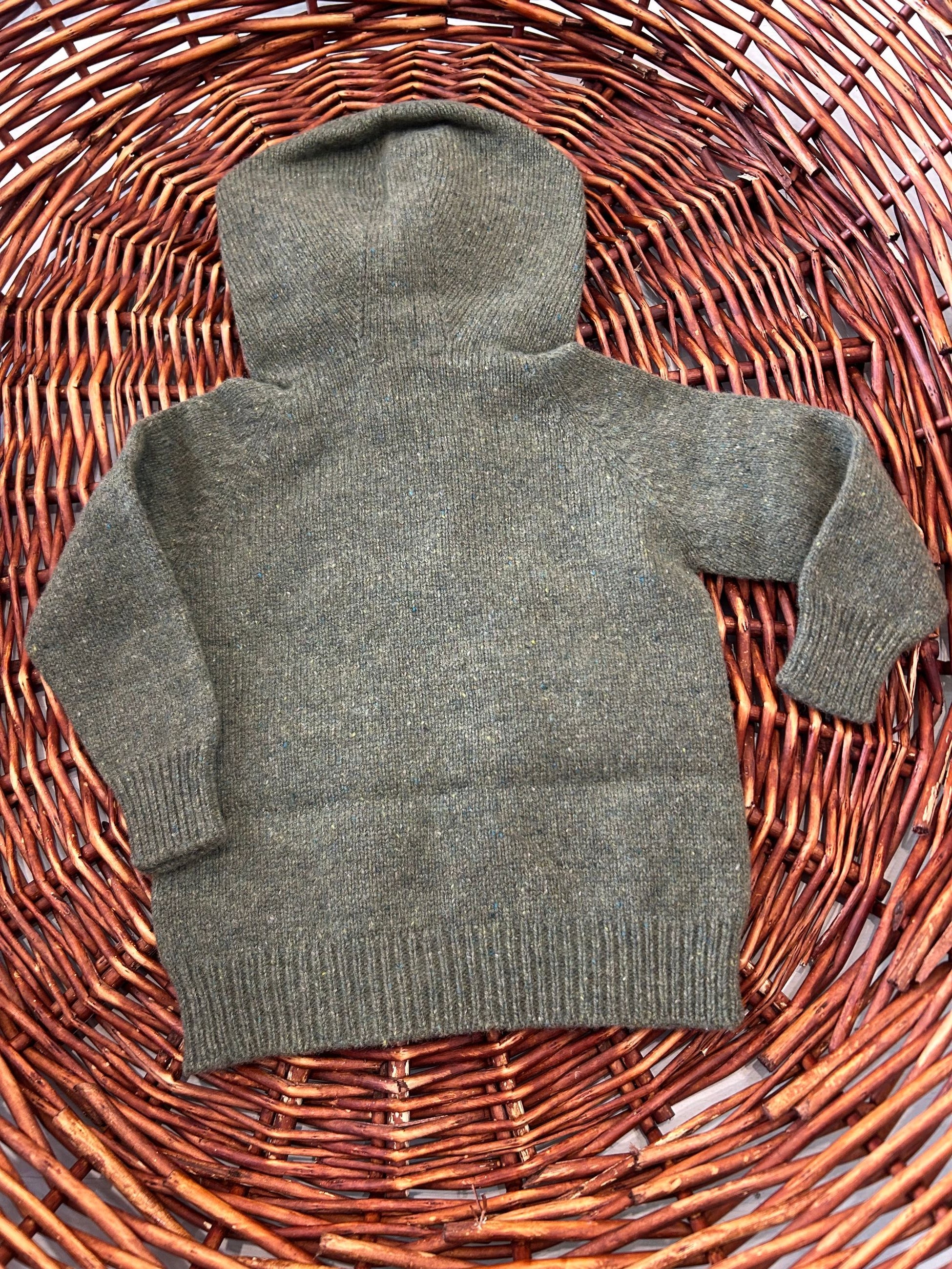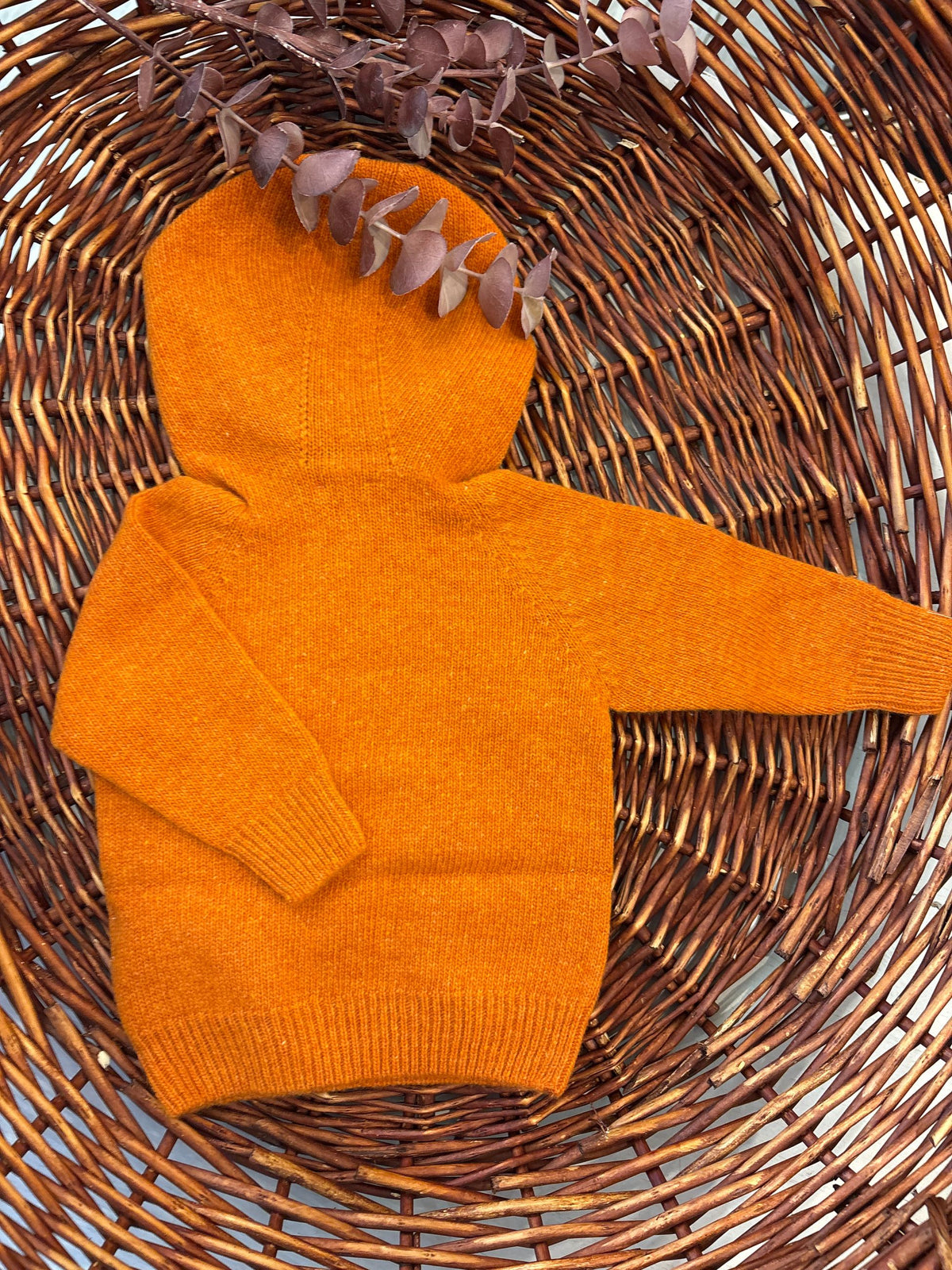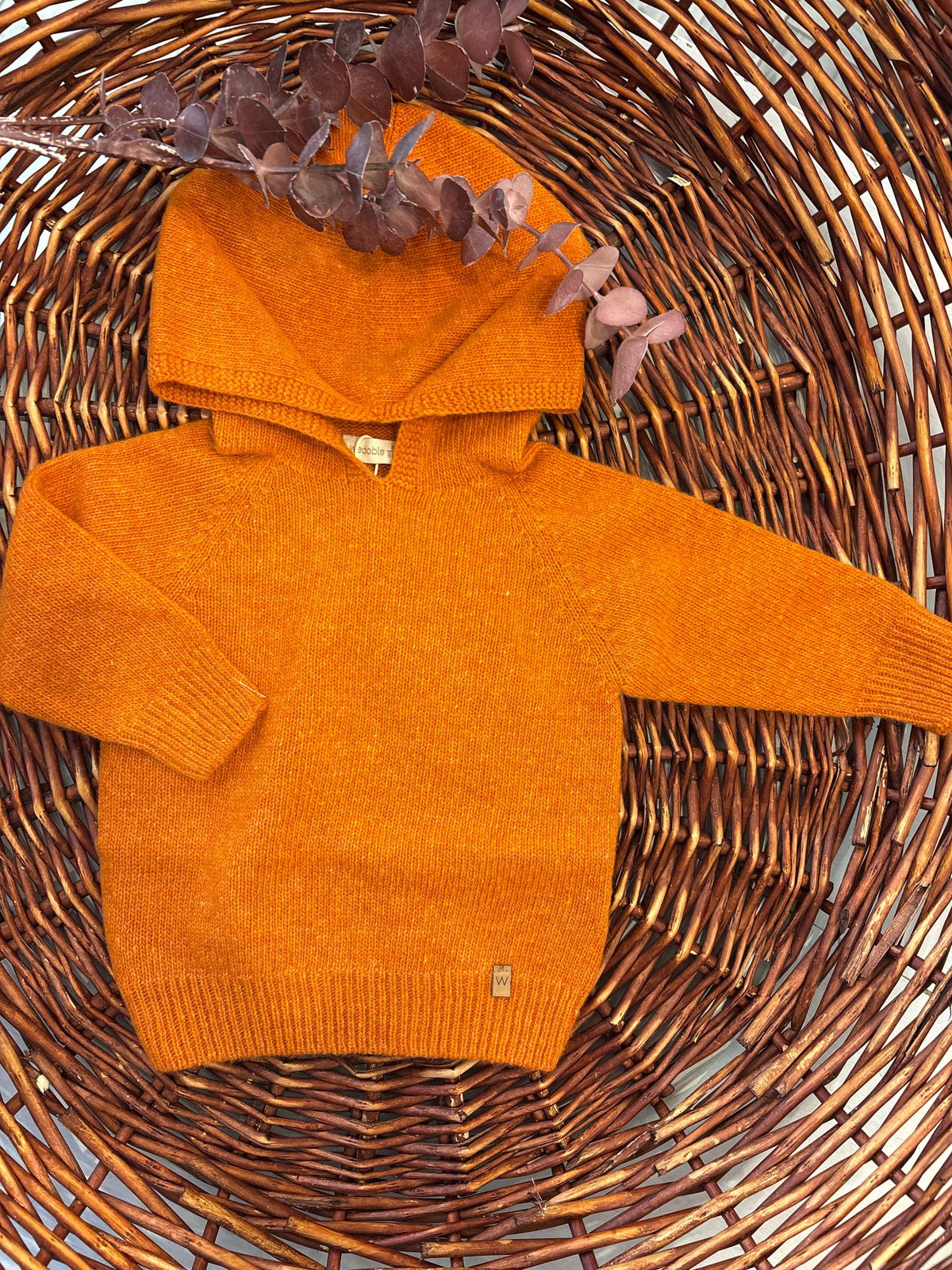maglia modello felpa in pura lana merino melange , con cappuccio e costina al fondo , ,sportivo e casual pur mantenendo una linea raffinata