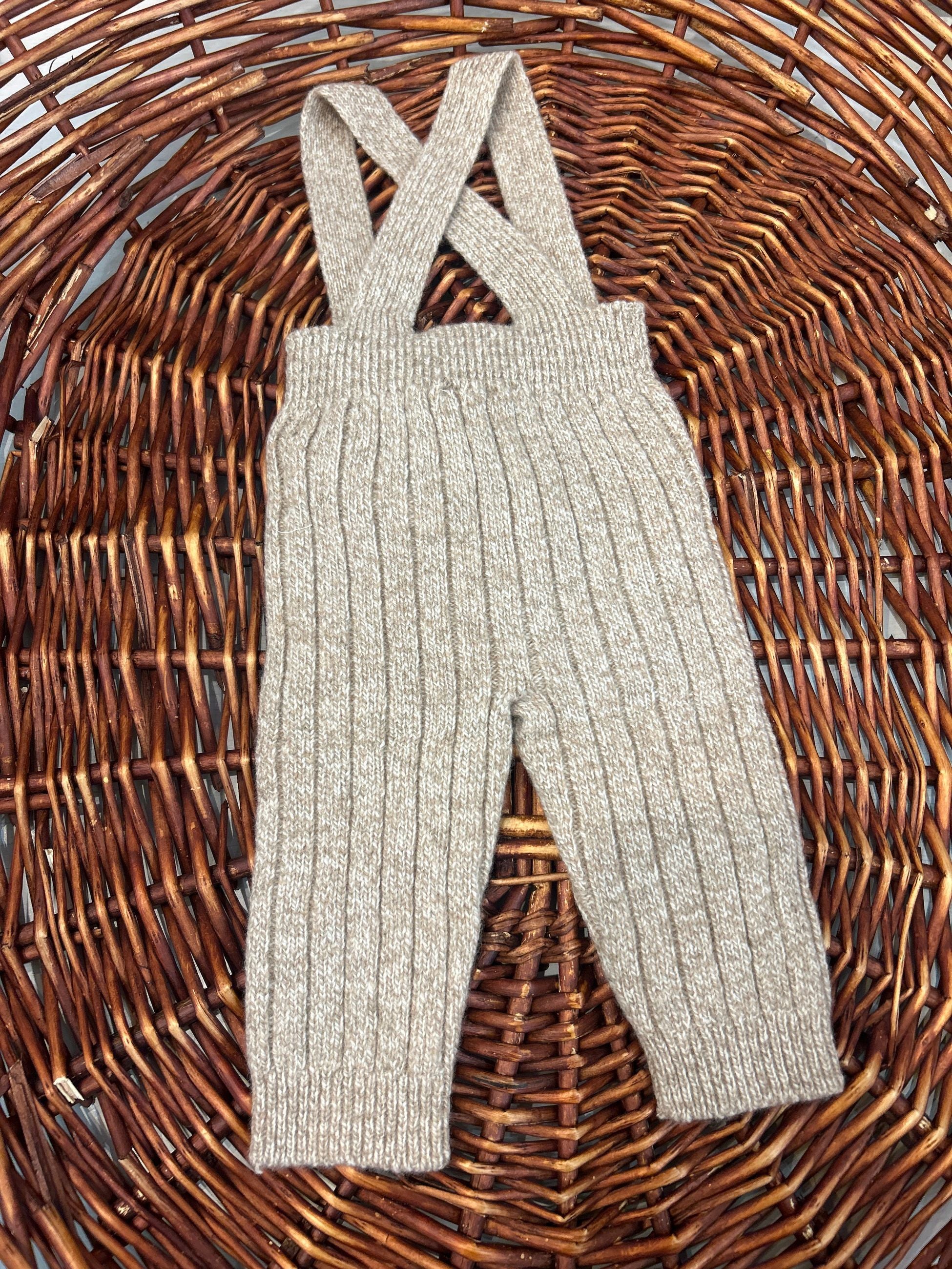 pantalone con bretelle in pura lana merino melange lavorata a coste larghe,co bottoncini in legno ,sportivo e casual pur mantenendo una linea raffinata