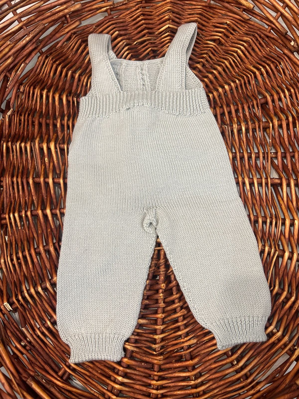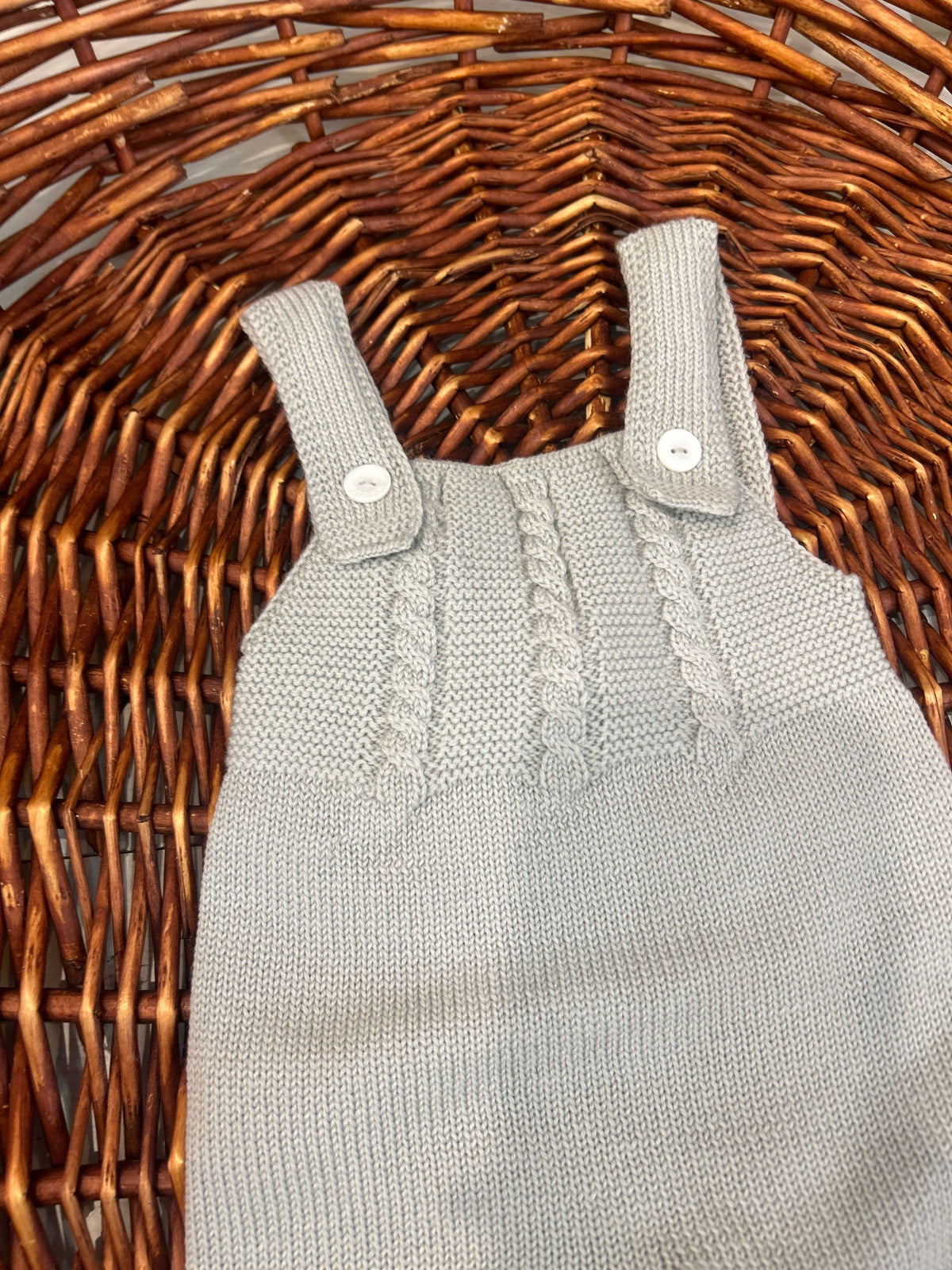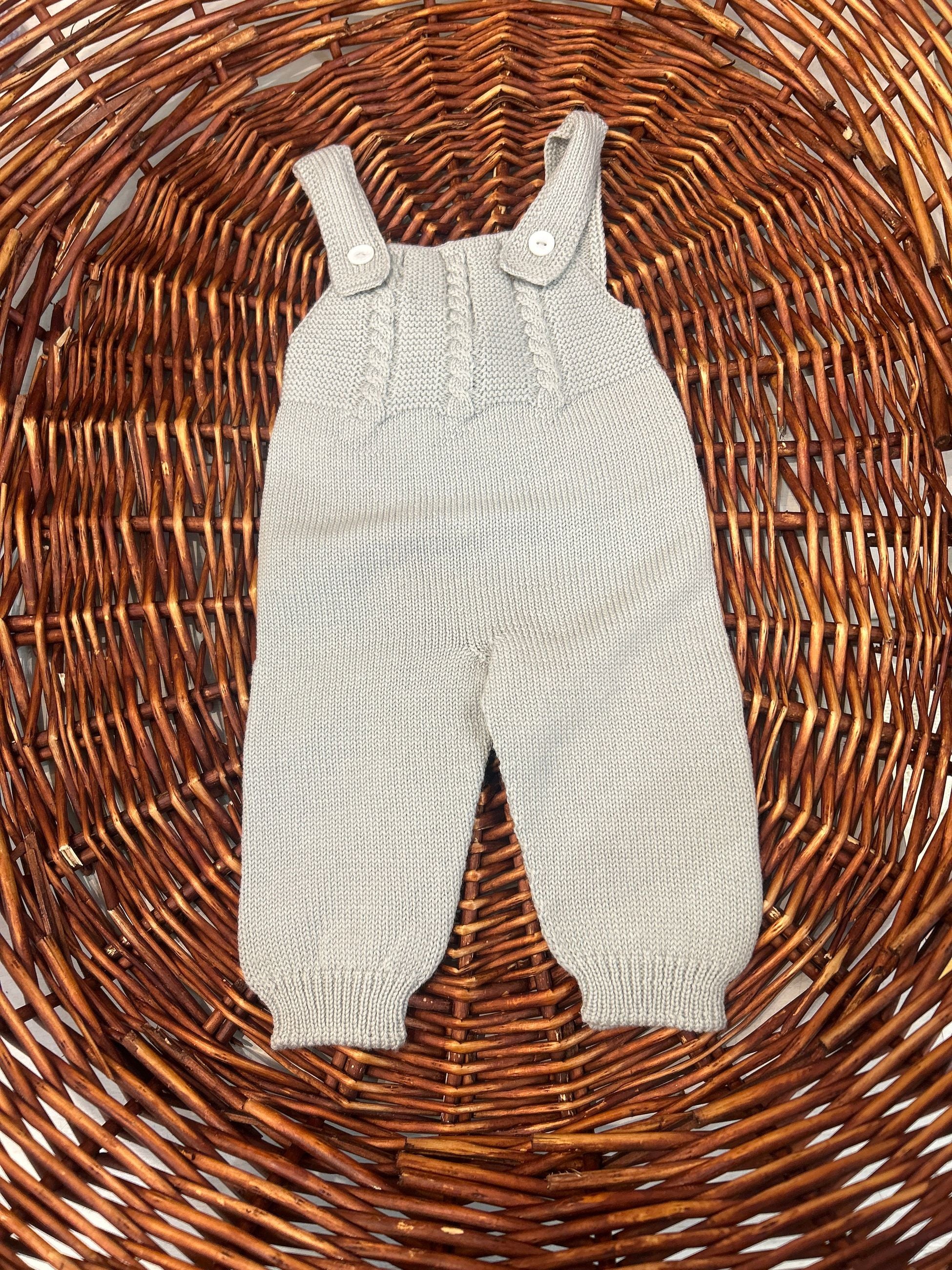 salopette con bretelle in pura lana merino lavorata a trecce,con bottoncini in madreperla ,dal gusto classico e dalla linea raffinata