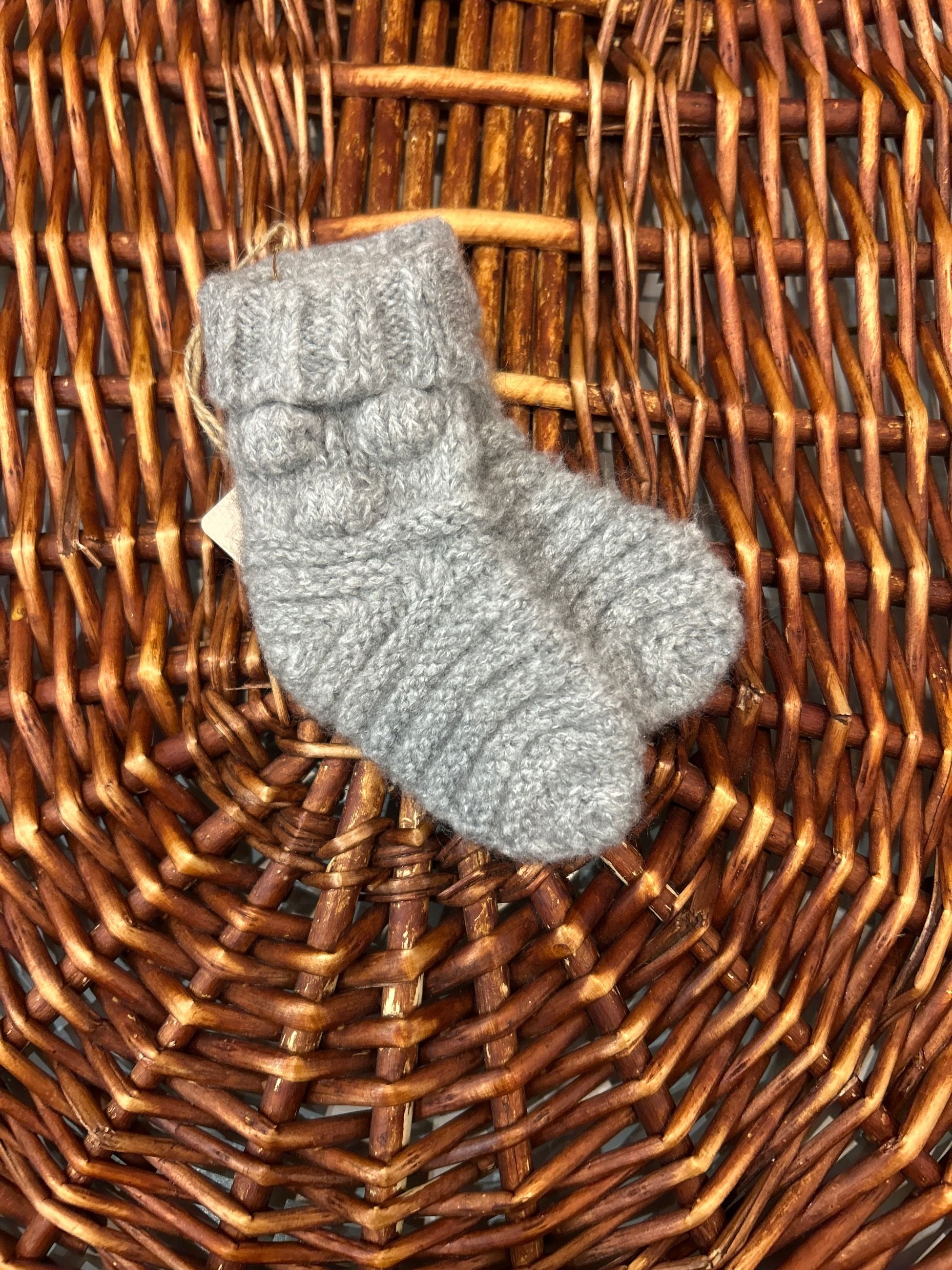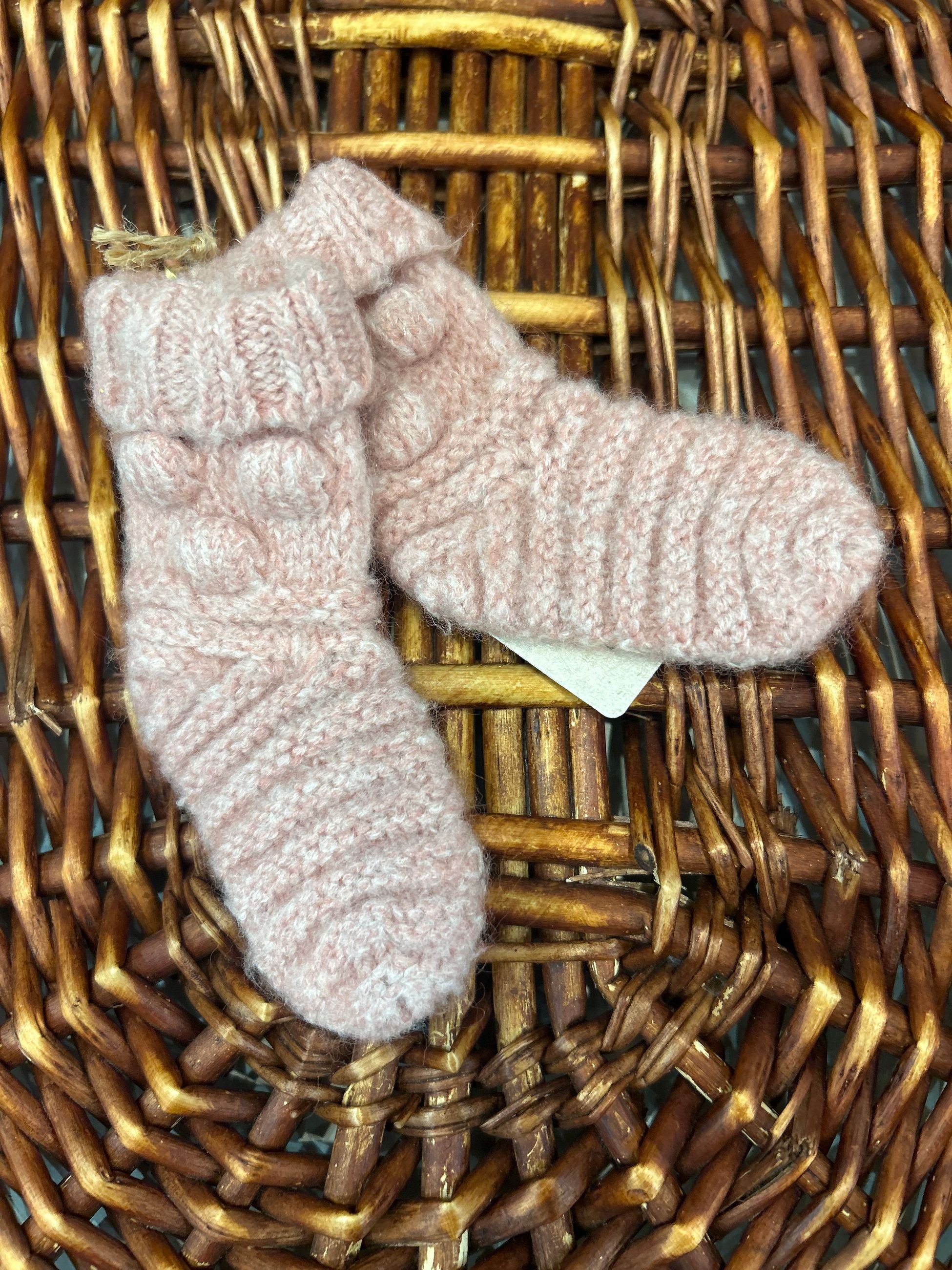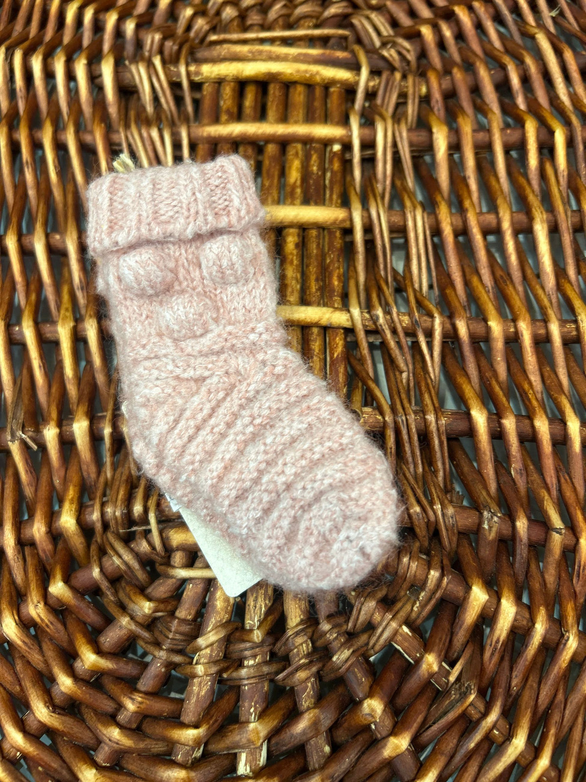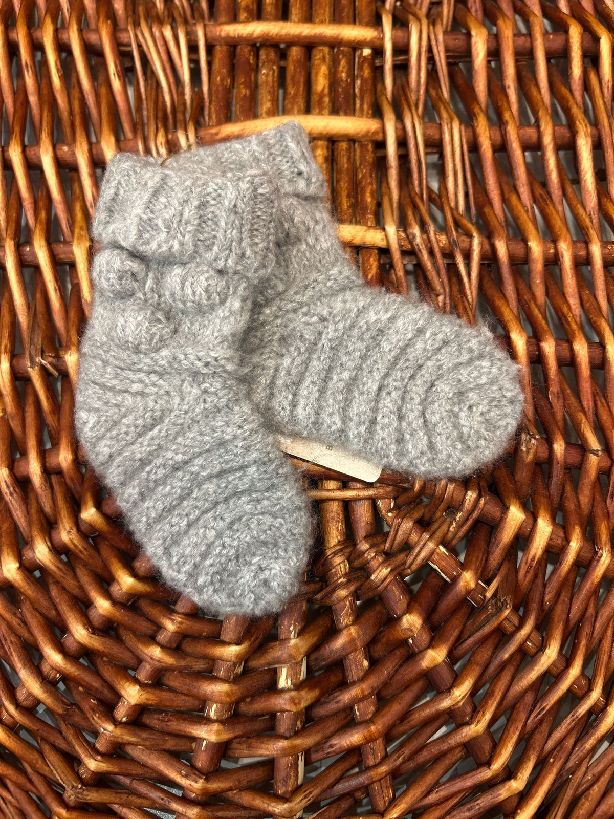 scarpina a calzino in lana con risvolto e pon pon 3d