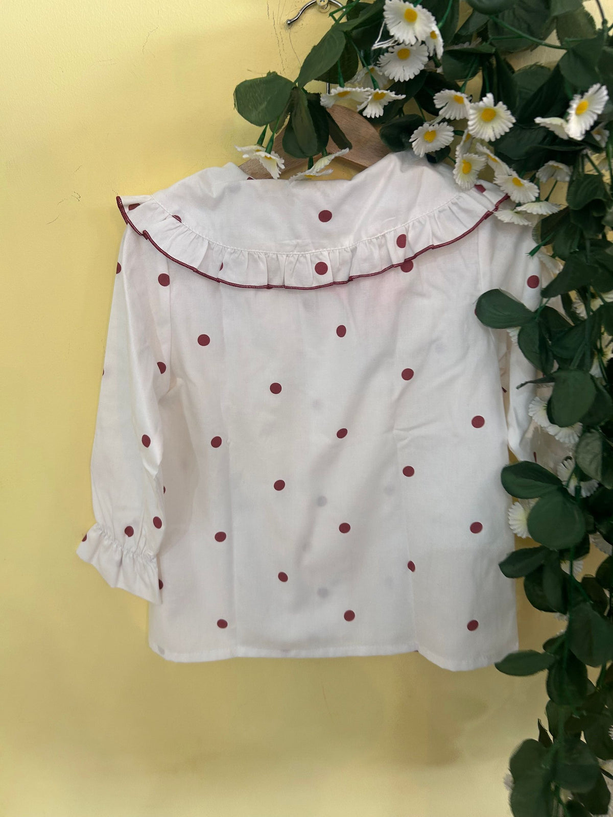 camicia tinta unita con pois a contrasto e collo tondo
