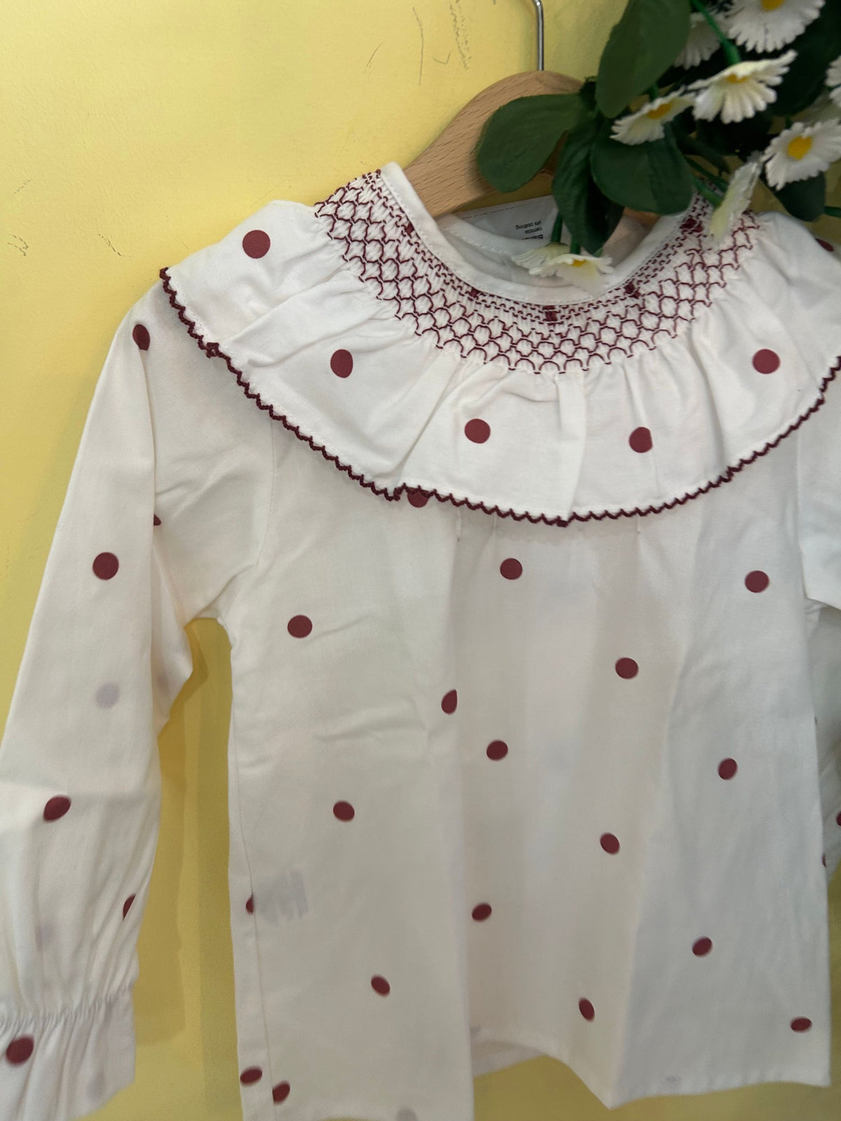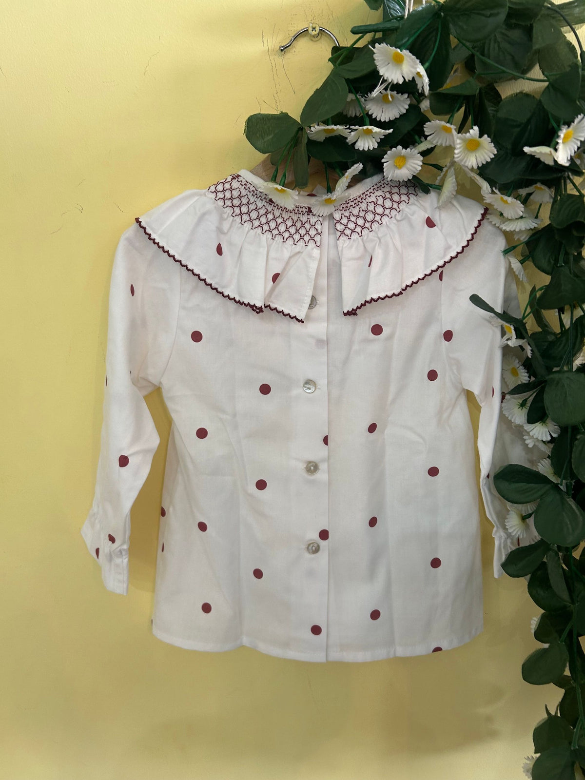 camicia collo rouches definito da un delizioso ricamo on dei pois cuciti