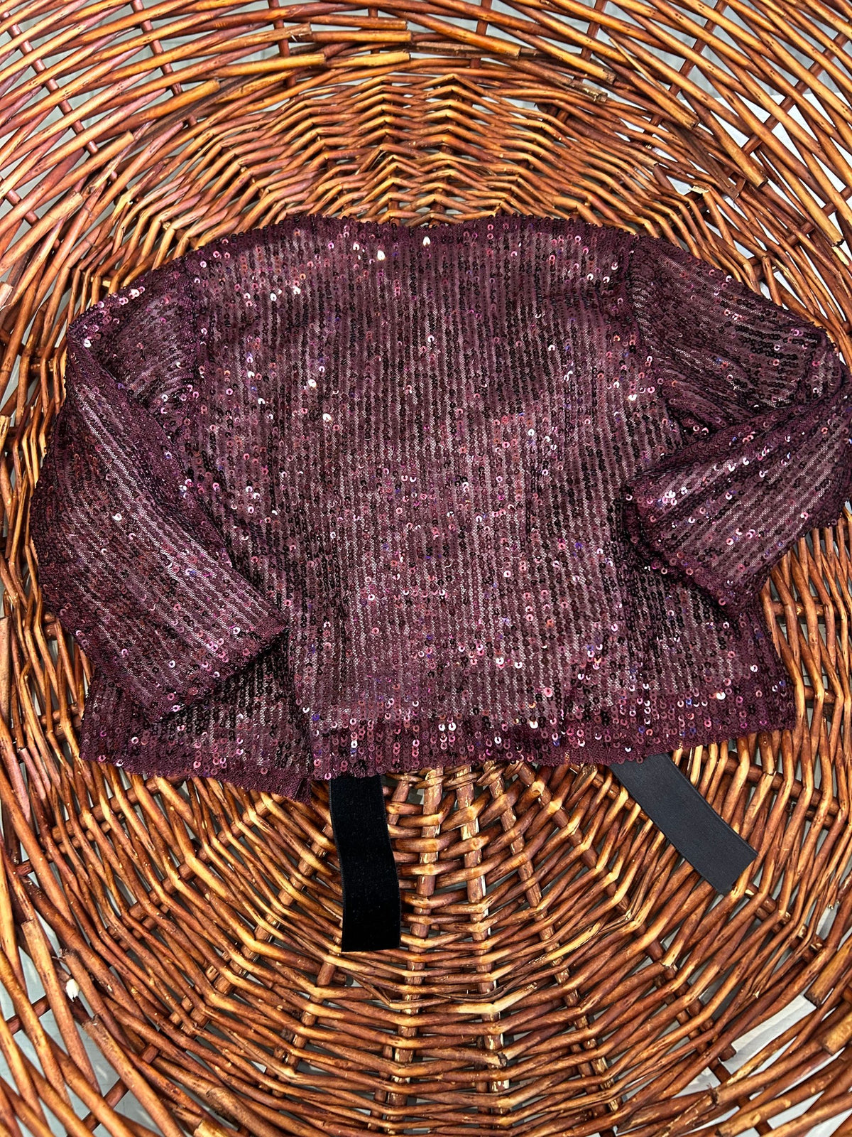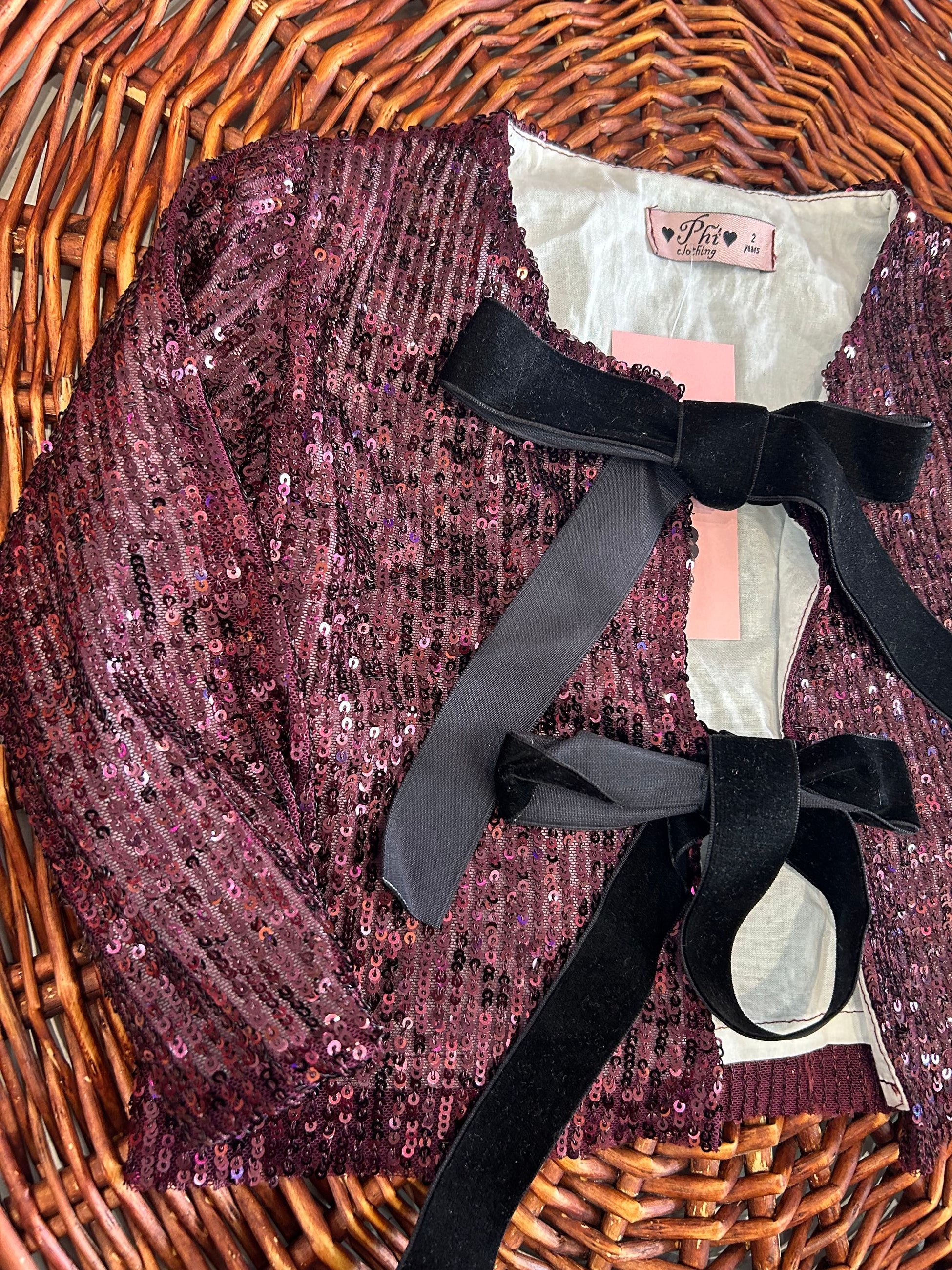 giacca girocollo con micro paillettes tone sur tone e fiocchi in velluto a contrasto