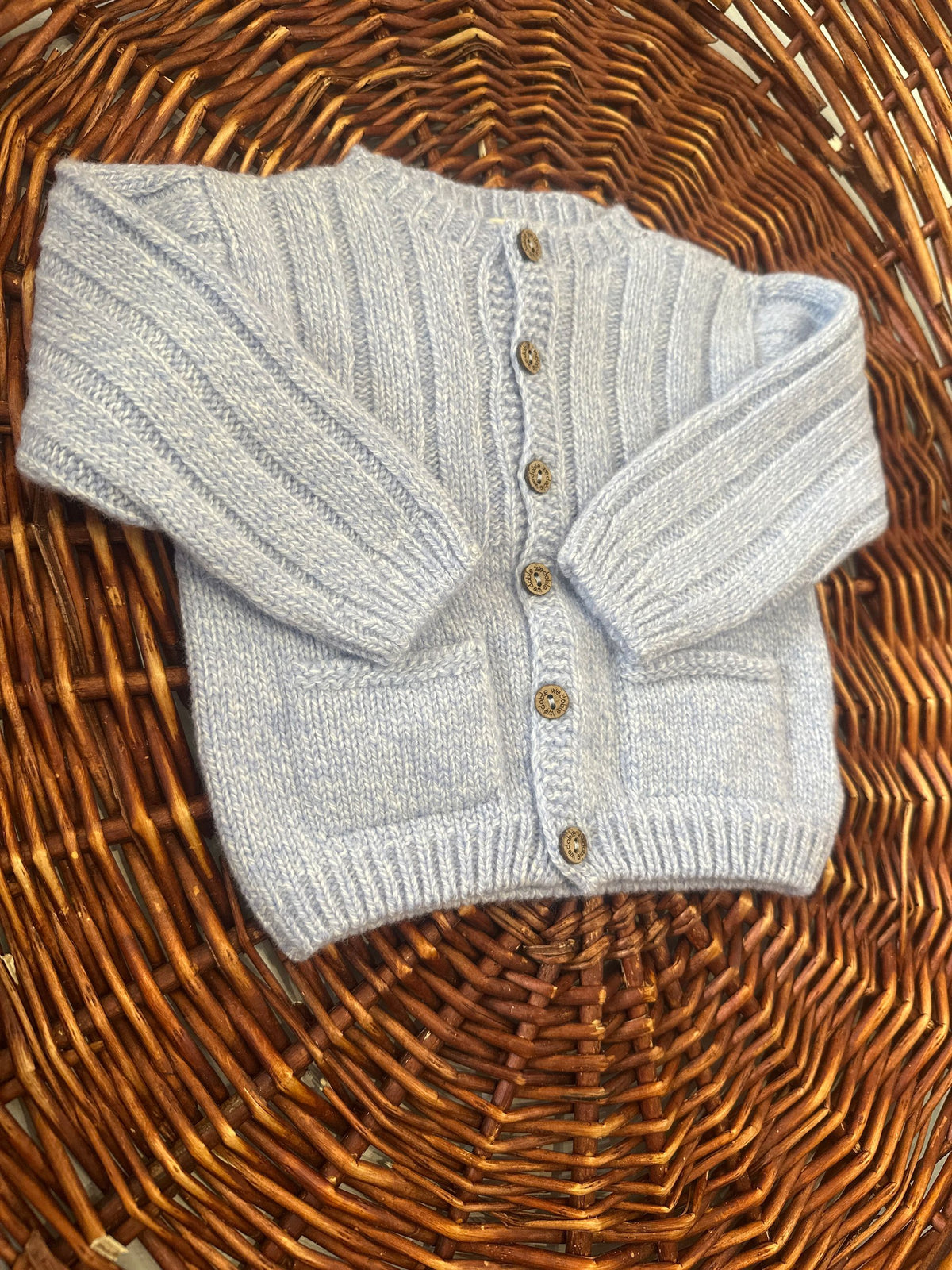 cardigan in pura lana merino  lavorata a quadri,girocollo  e bottoncini in legno,sportivo e casual pur mantenendo una linea raffinata