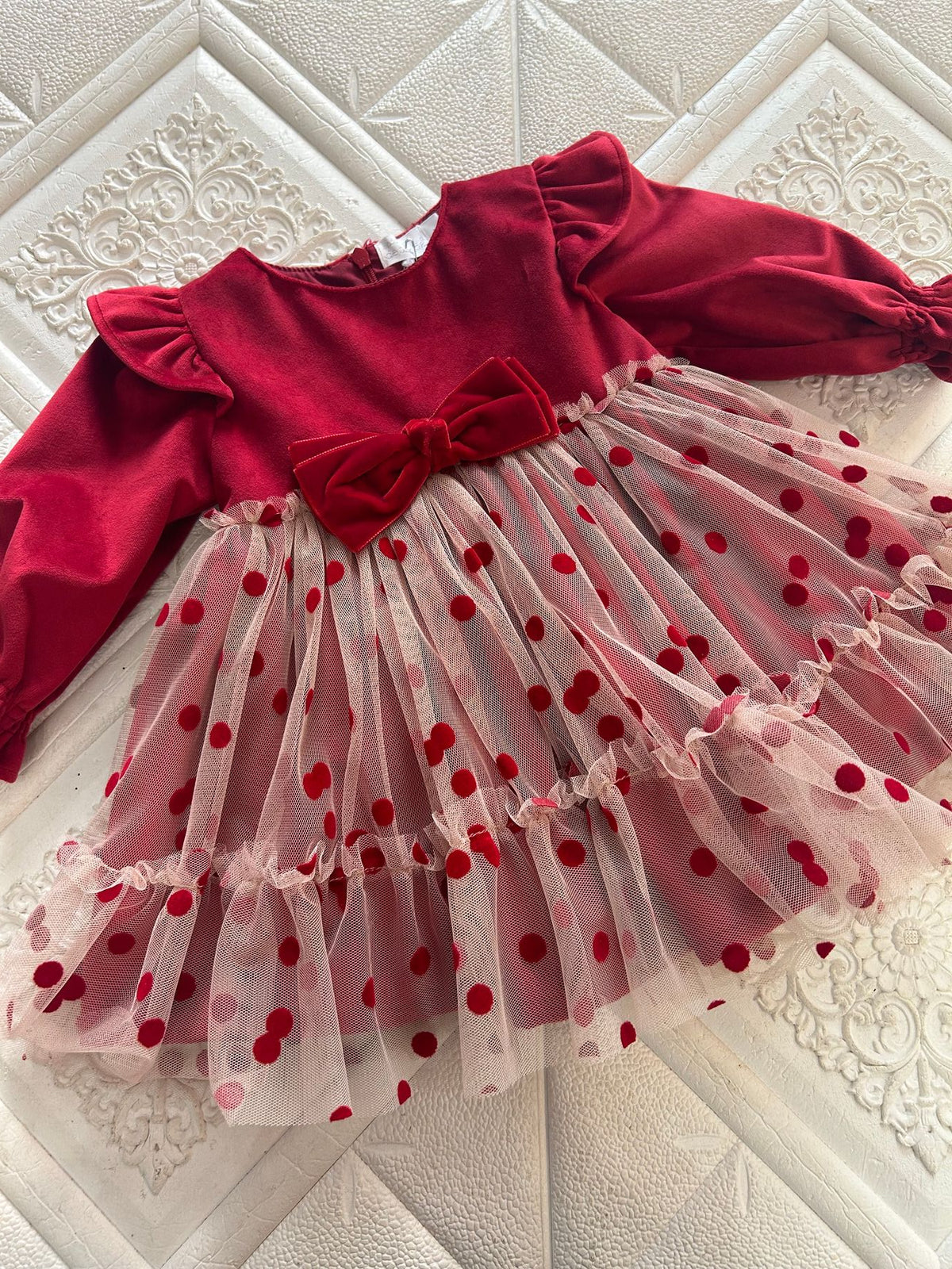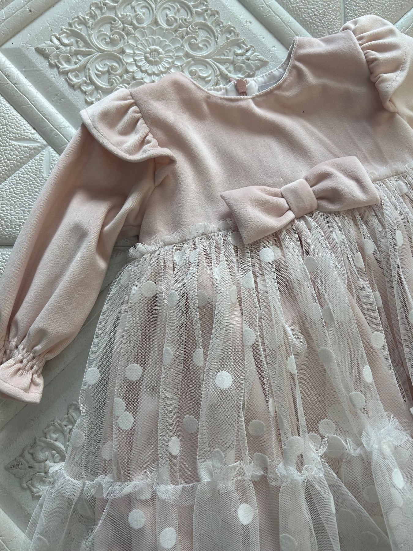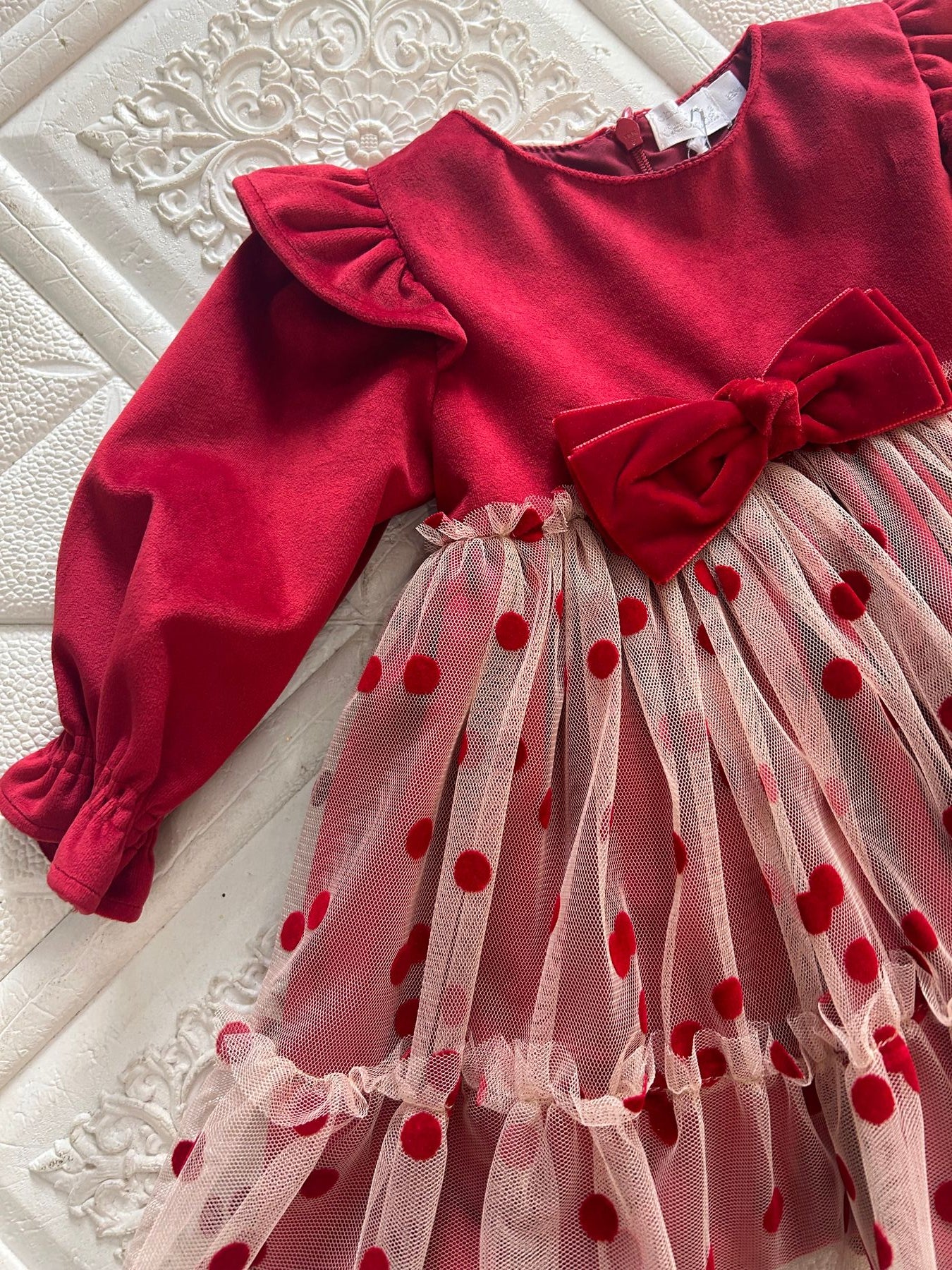 ABITO IN VELLUTO CON FIOCCO E TULLE
