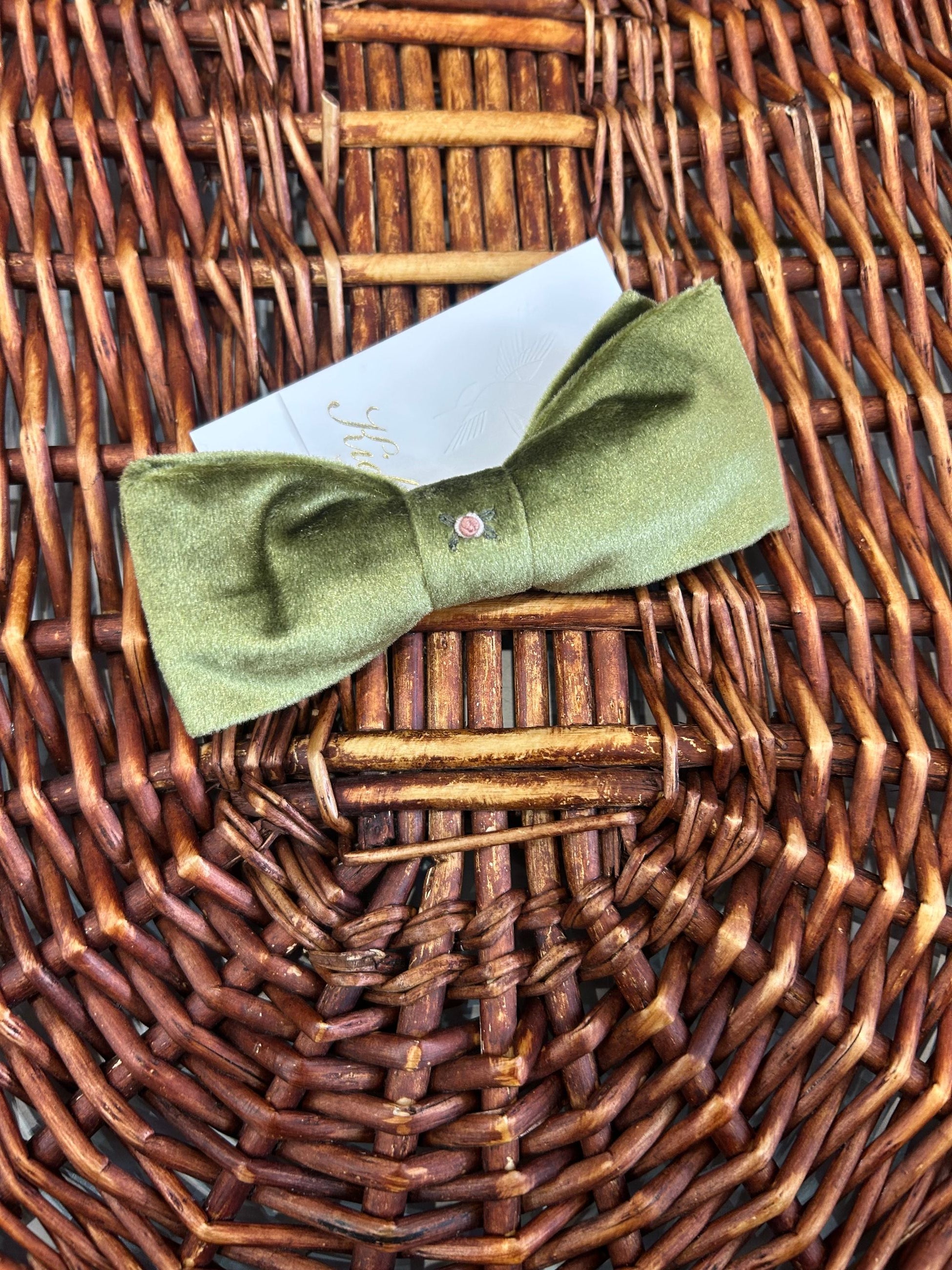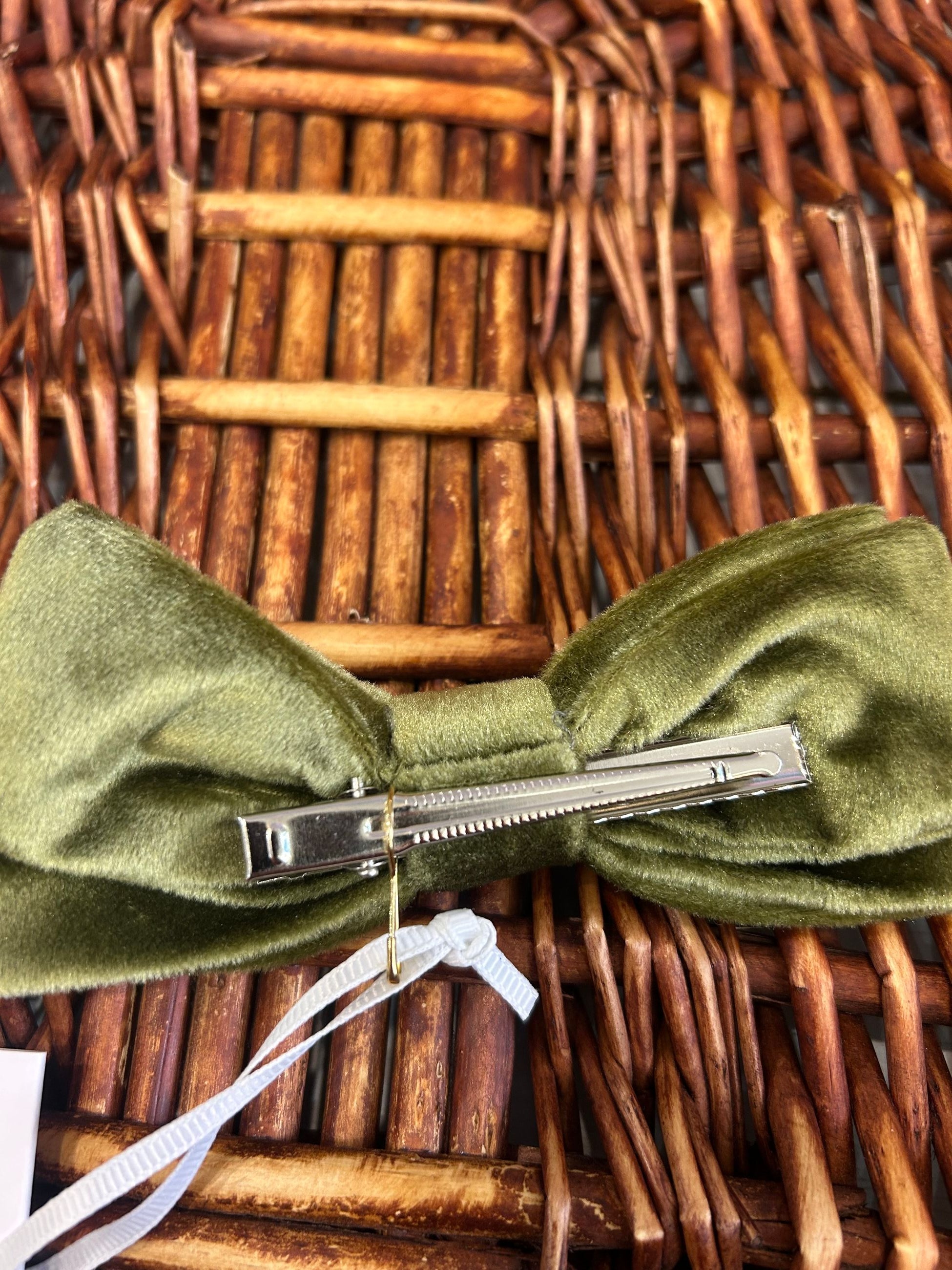 fiocco in velluto con pinza clip posteriore e ricami fatti a mano