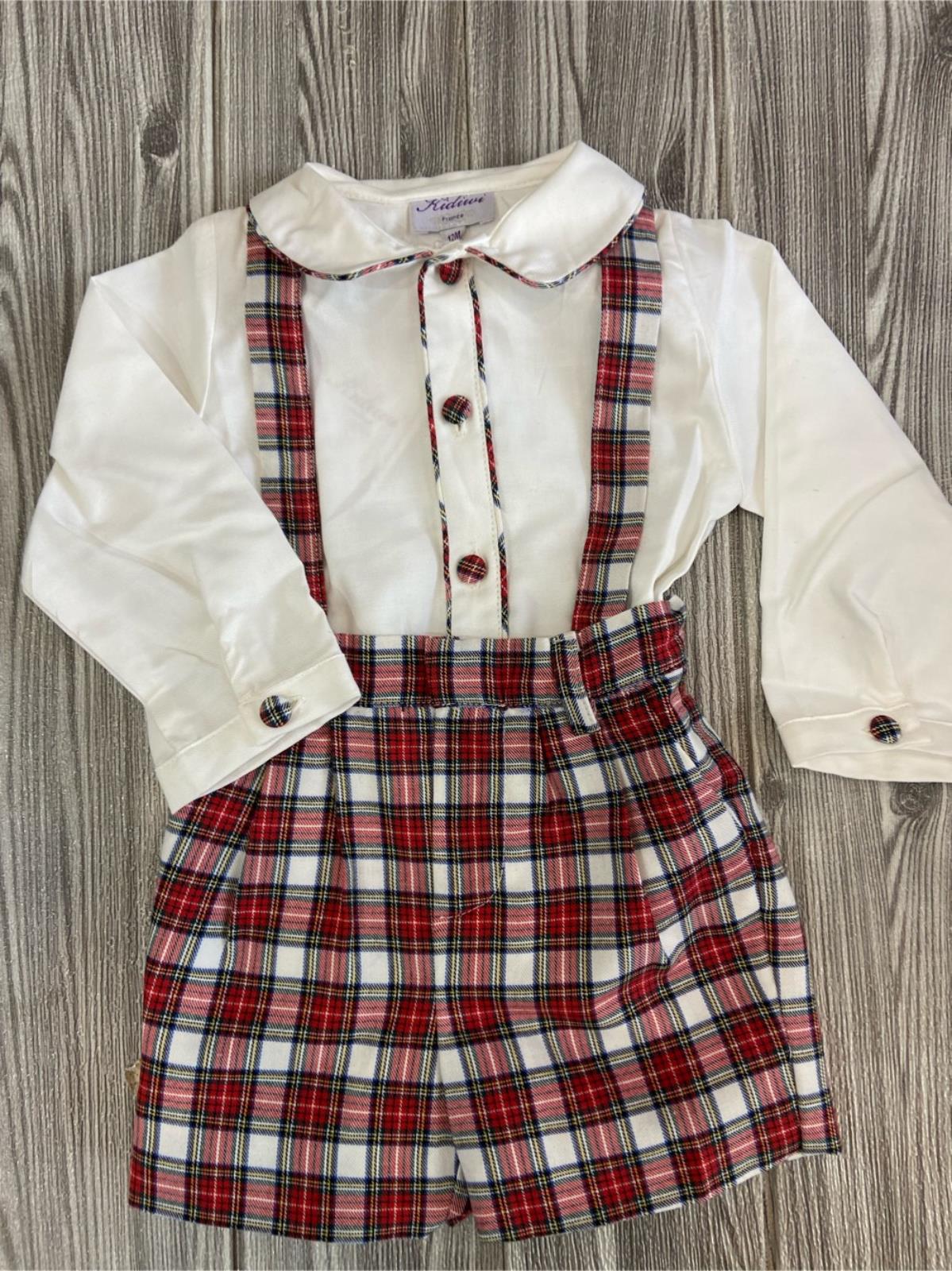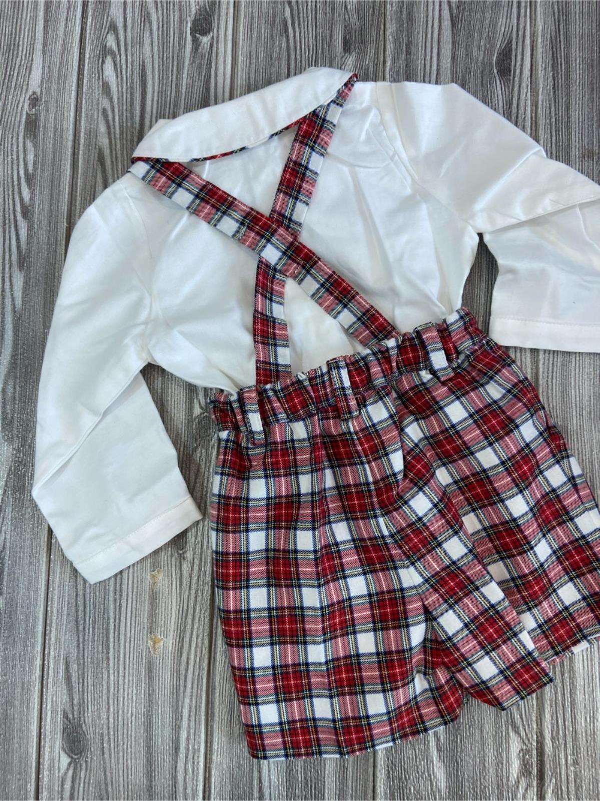 Completo salopette tartan e camicia