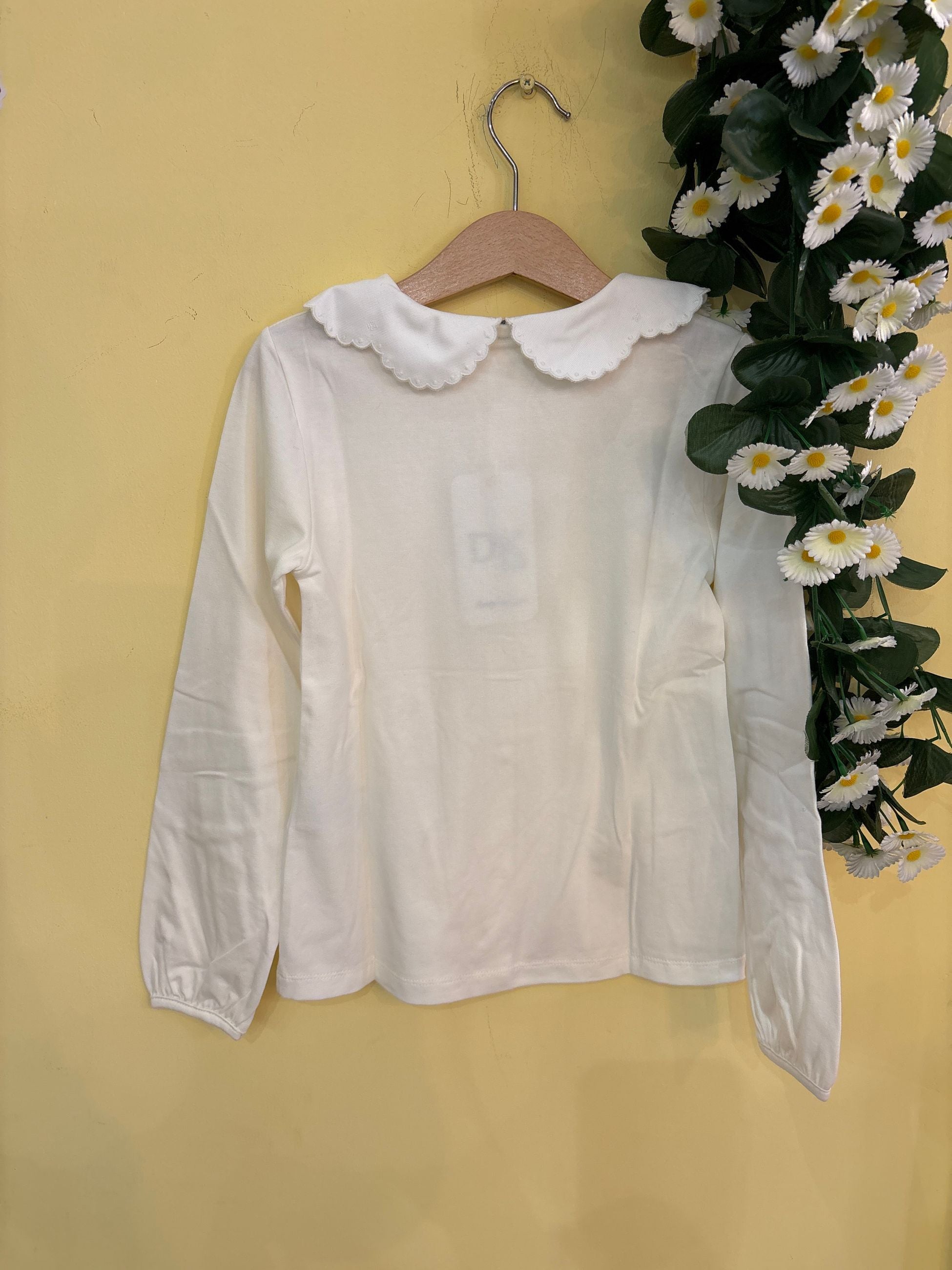maglia in caldo cotone manica lunga con bottoni avanti e collo camicia ricamato