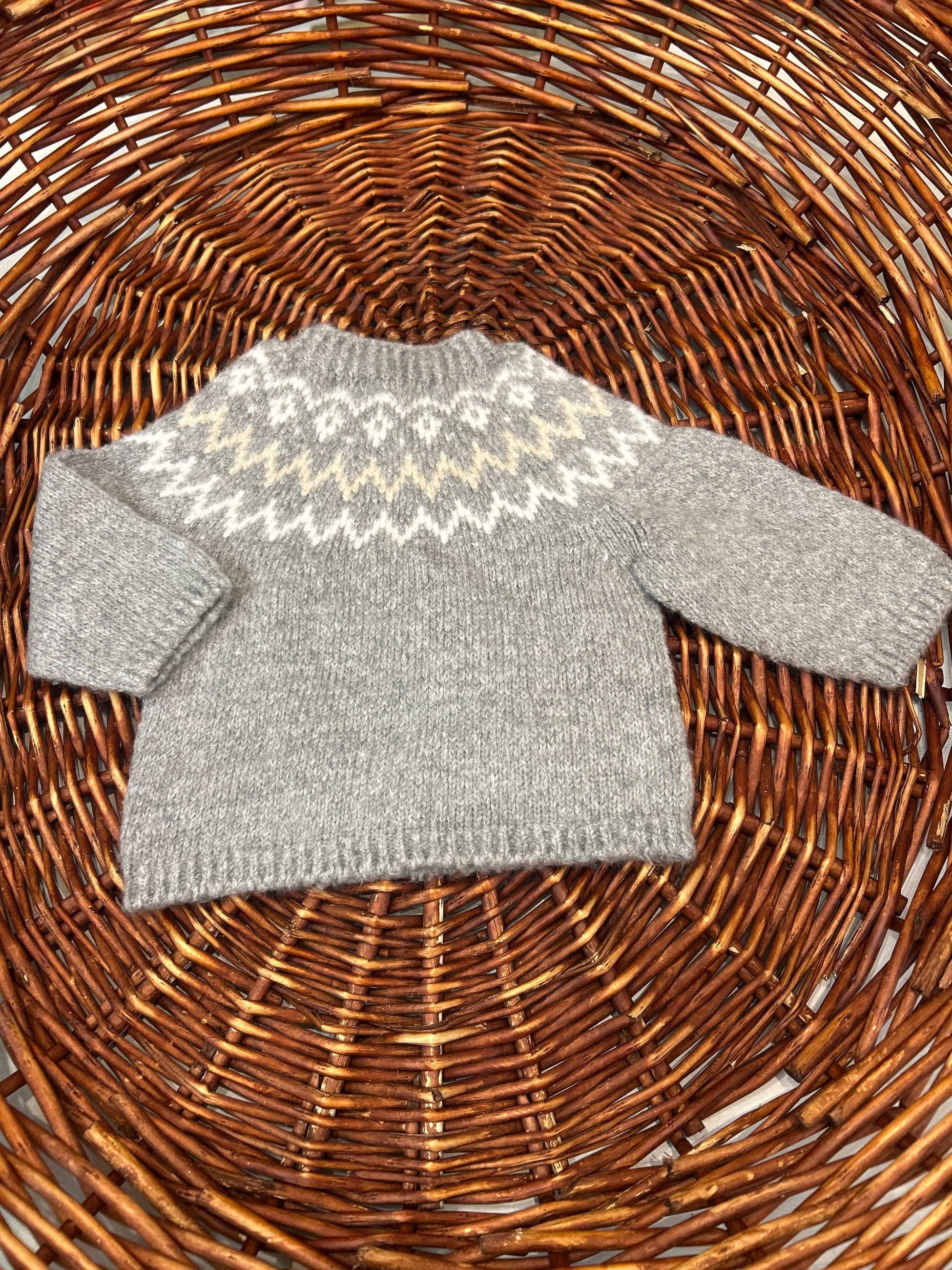 maglioncino in lana girocollo con bottoncini in legno sulla spalla e fantasia zig zag