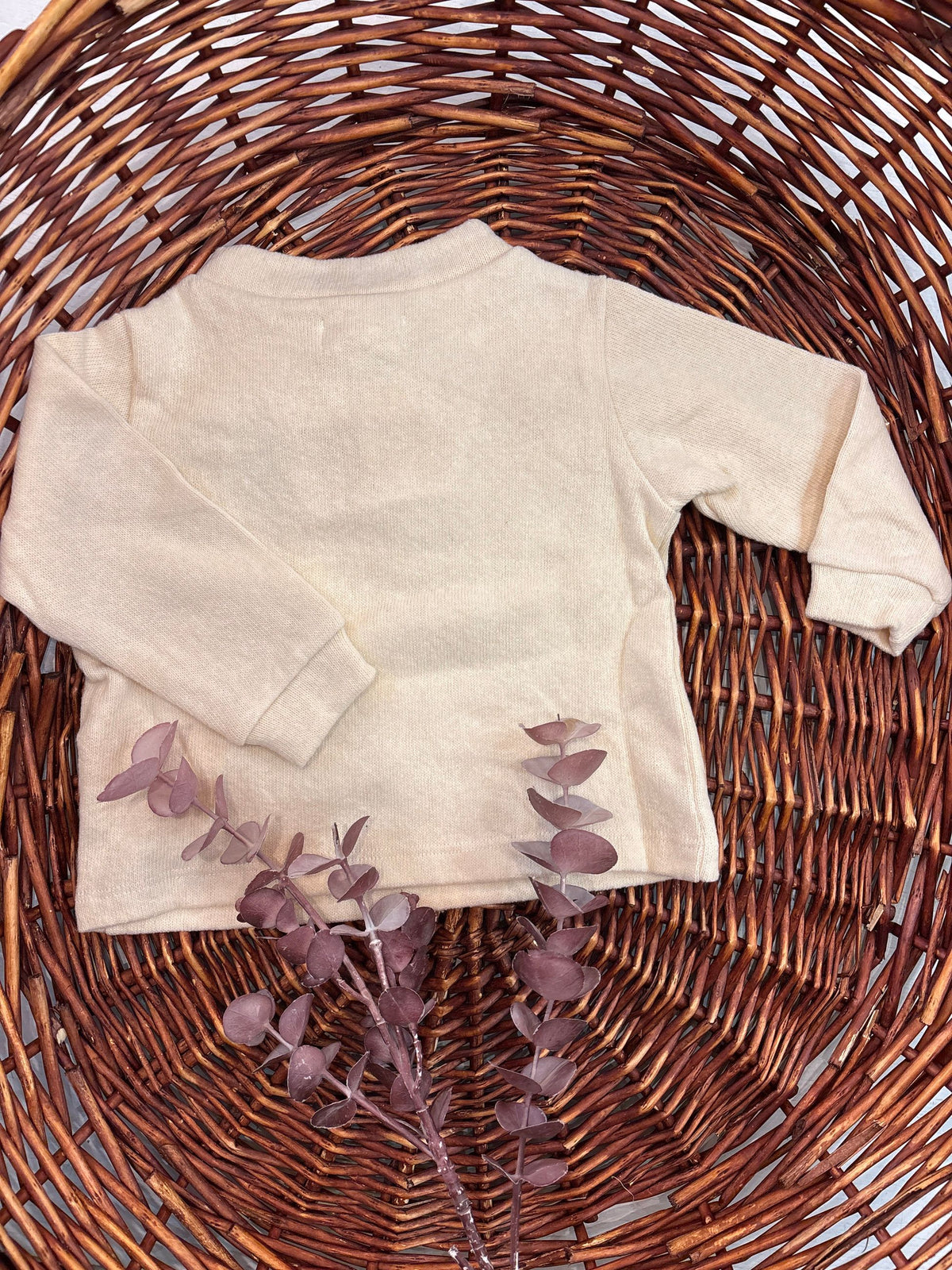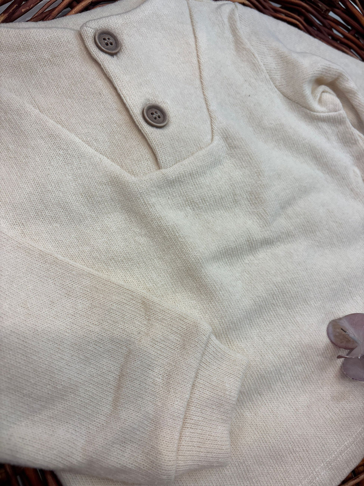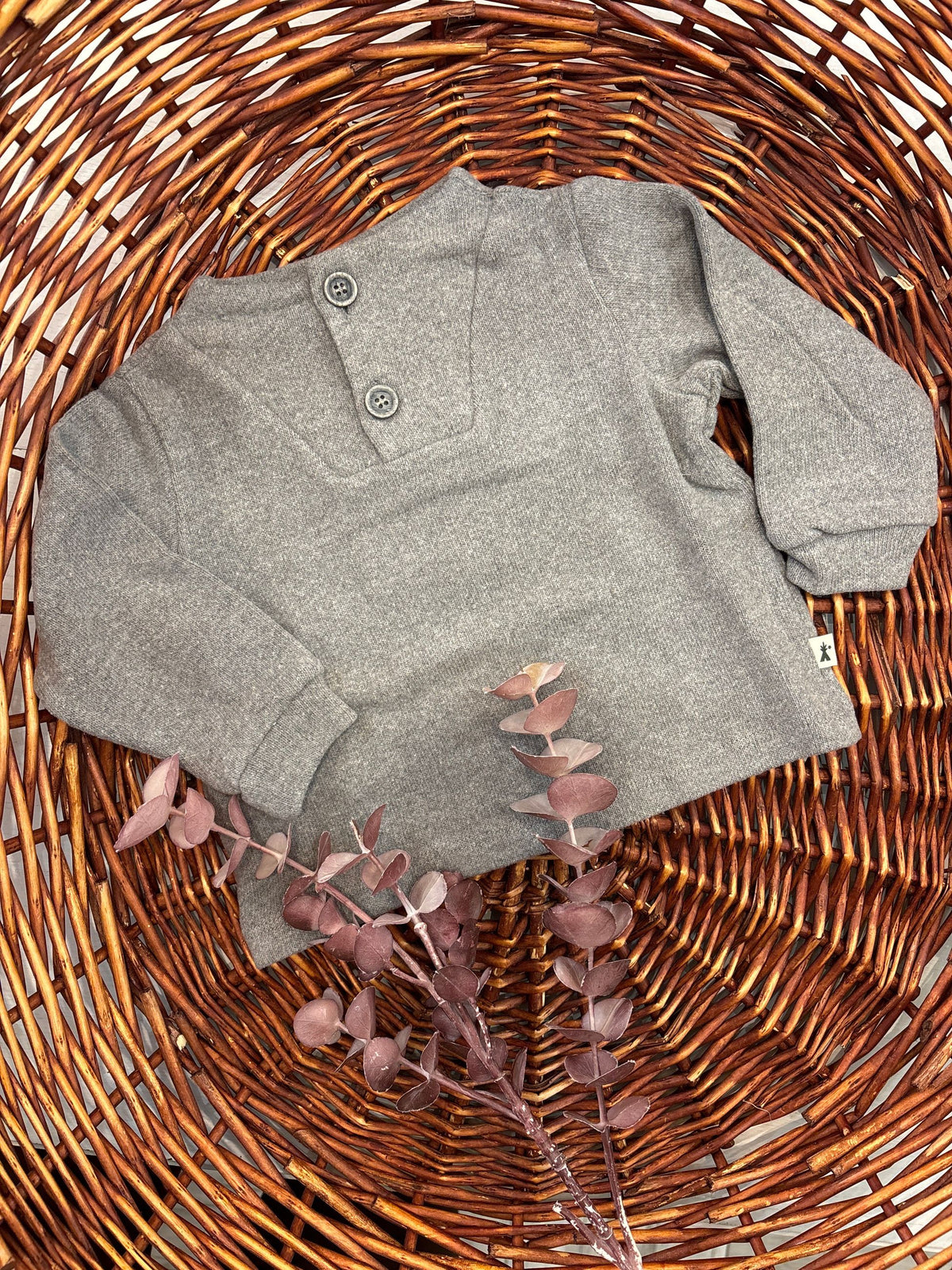 maglia in caldo cotone con collo effetto pistagna e bottoni avanti