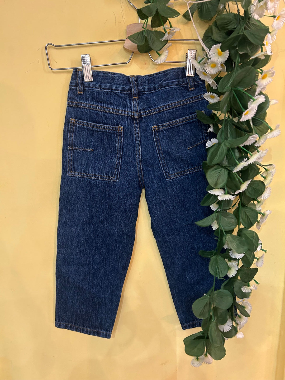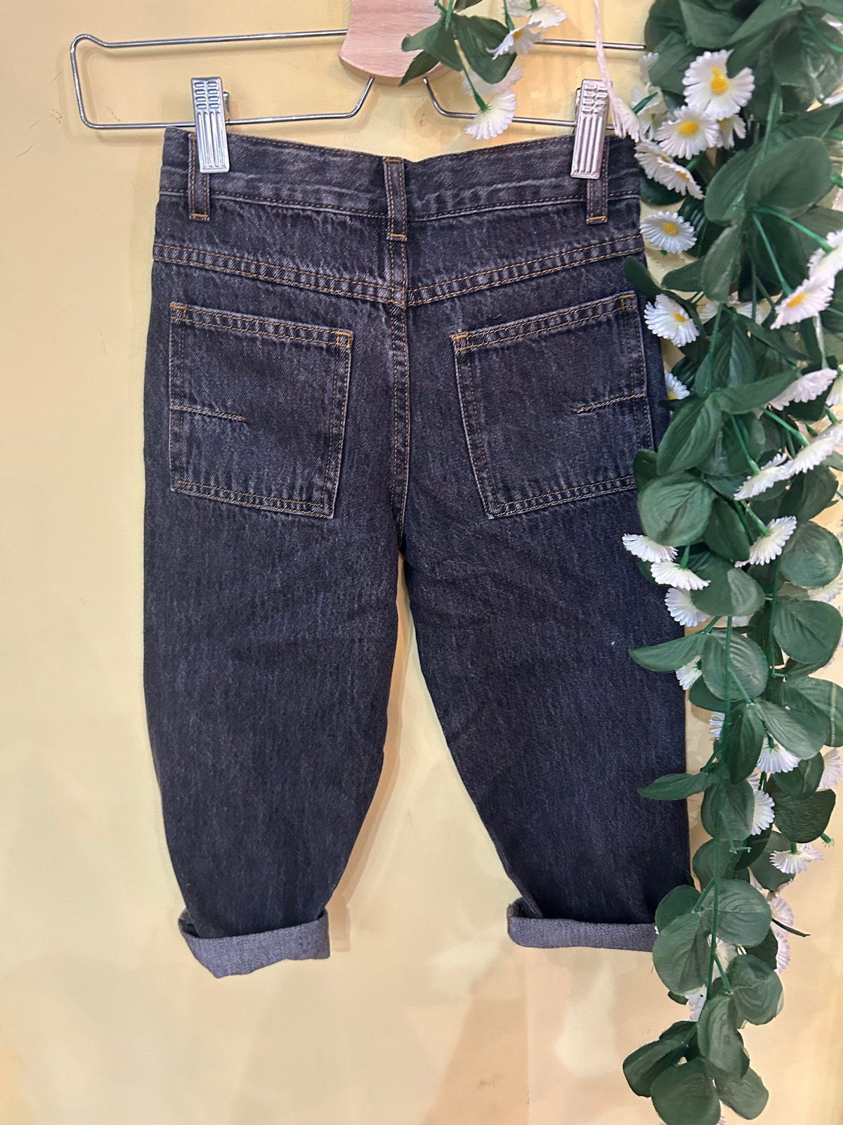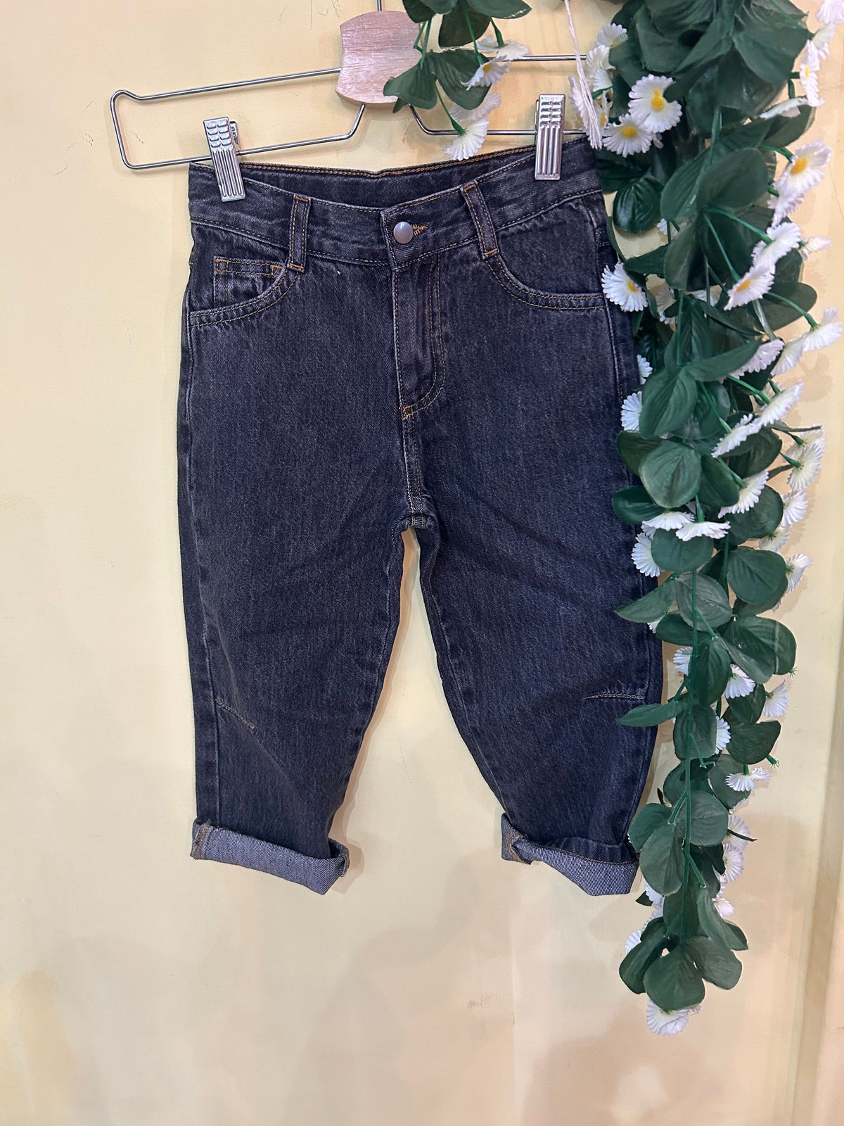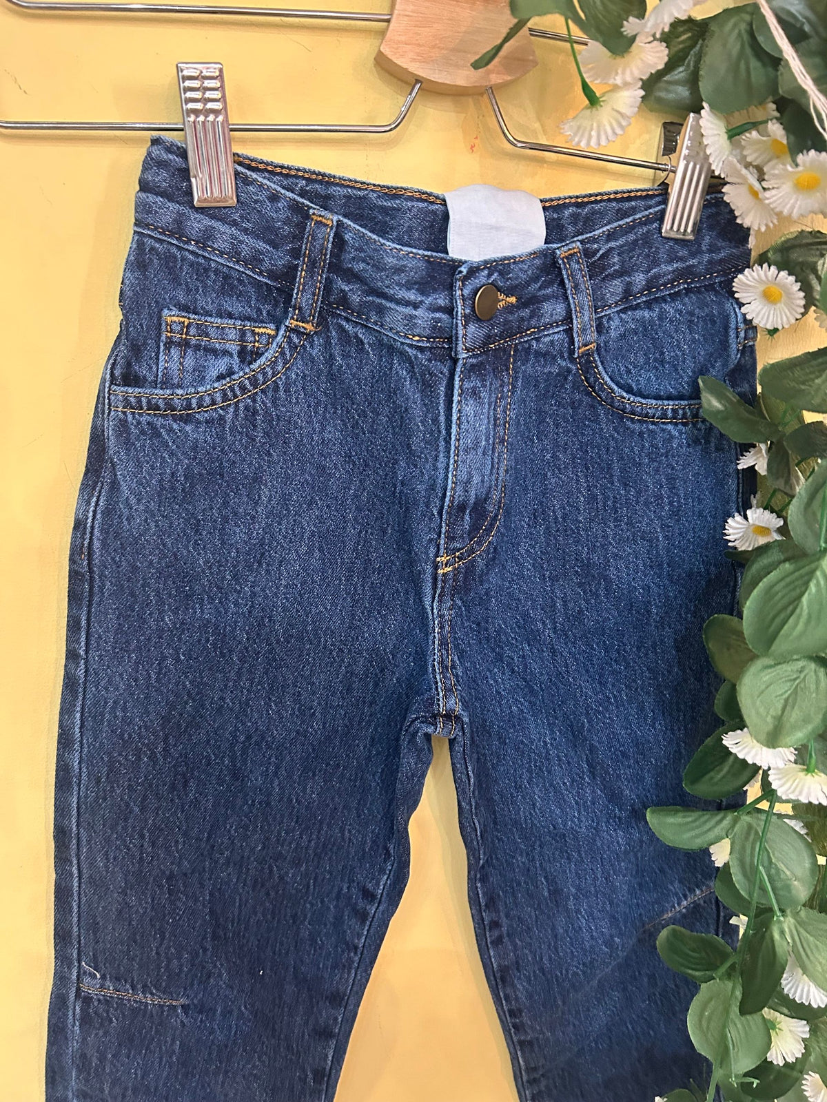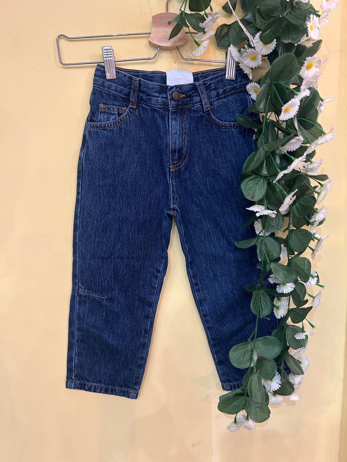 jeans dalla linea dritta in lavaggio zero ,con elastici interni regolabili bustino,passanti e zip