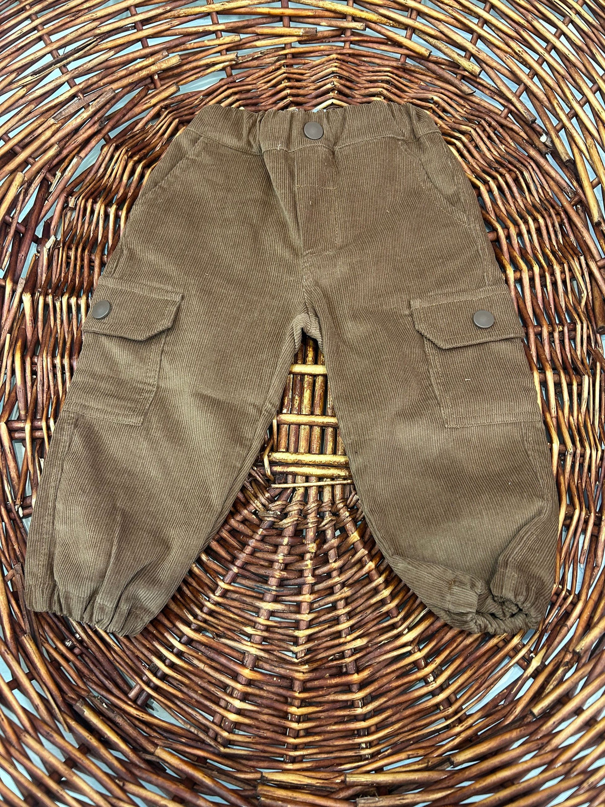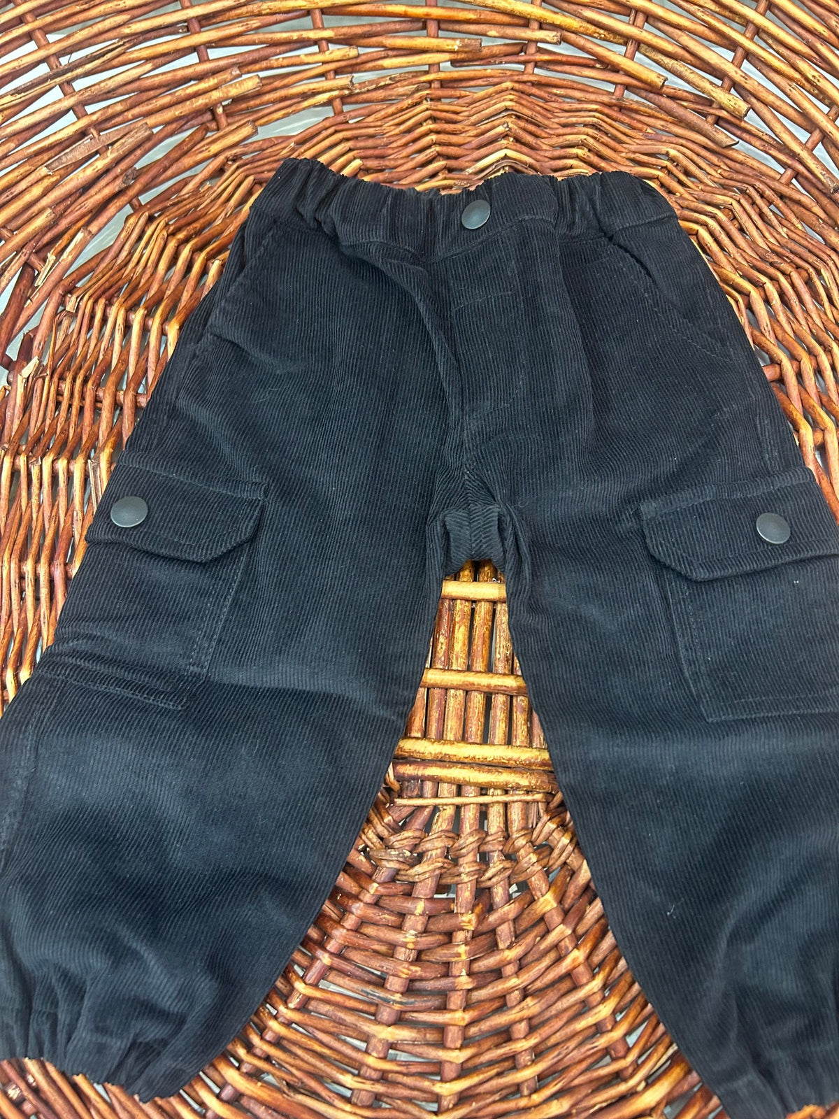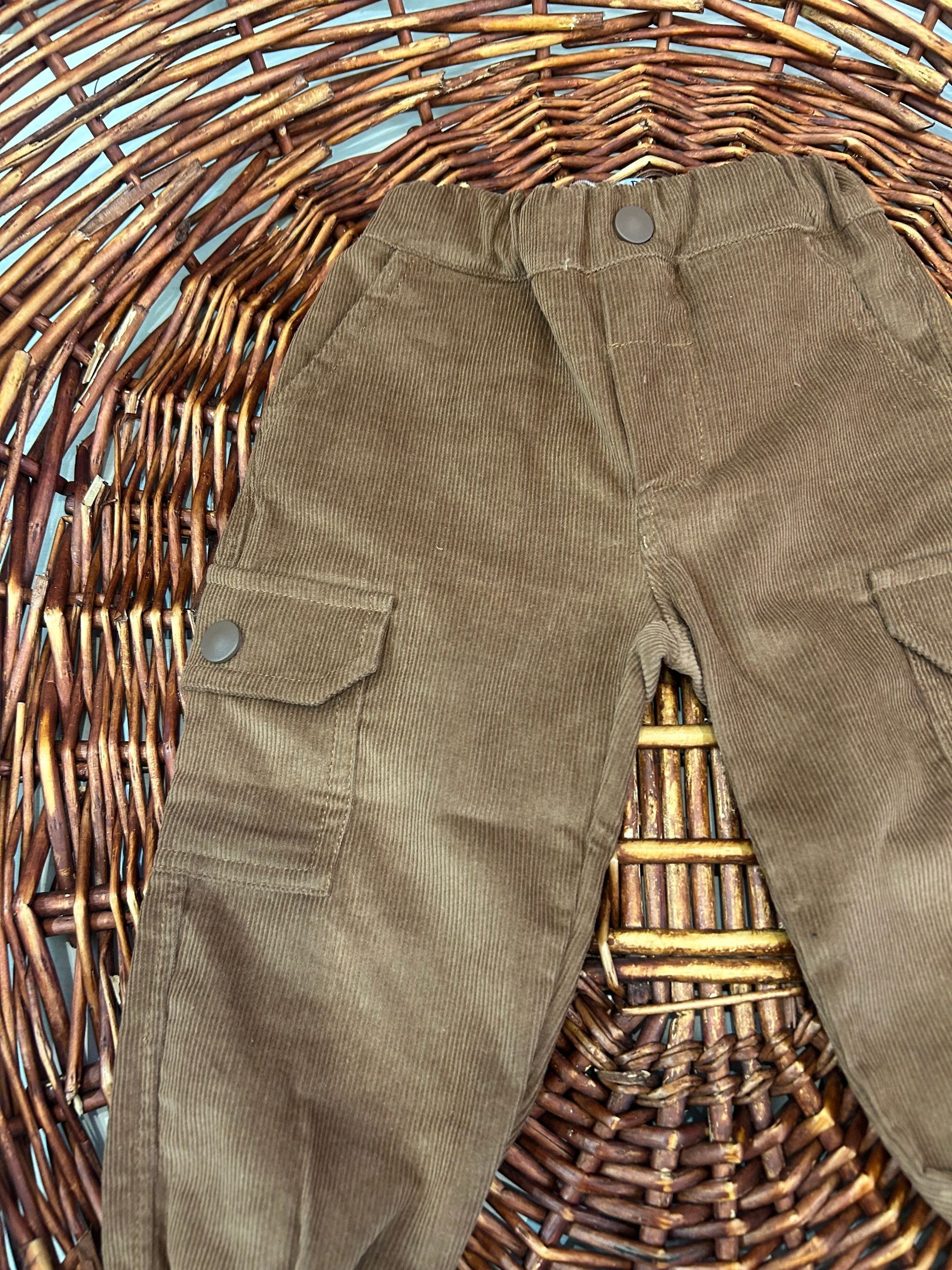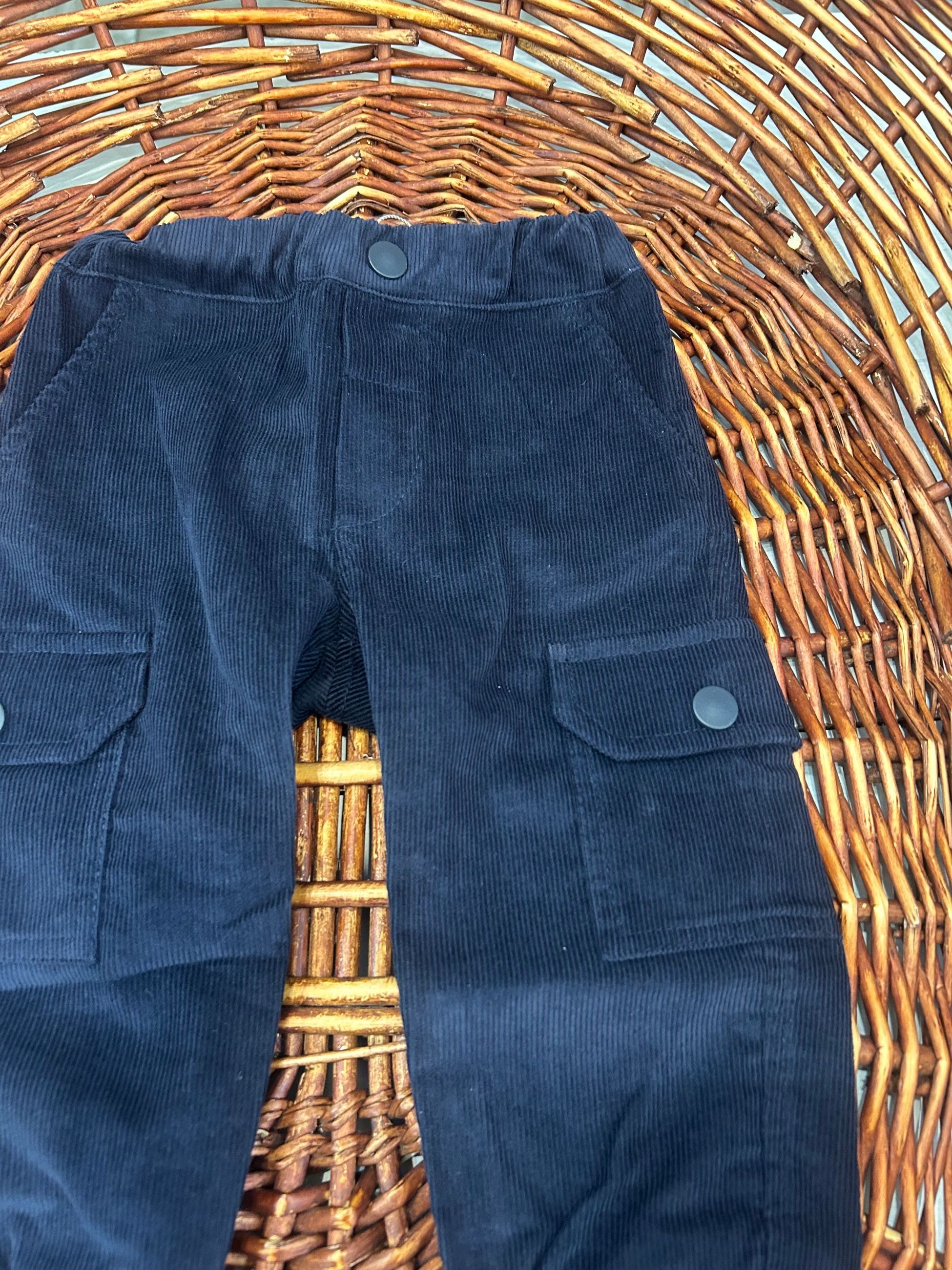 pantalone in velluto a costine con tasche laterali con bottoncini ed elastico in vita