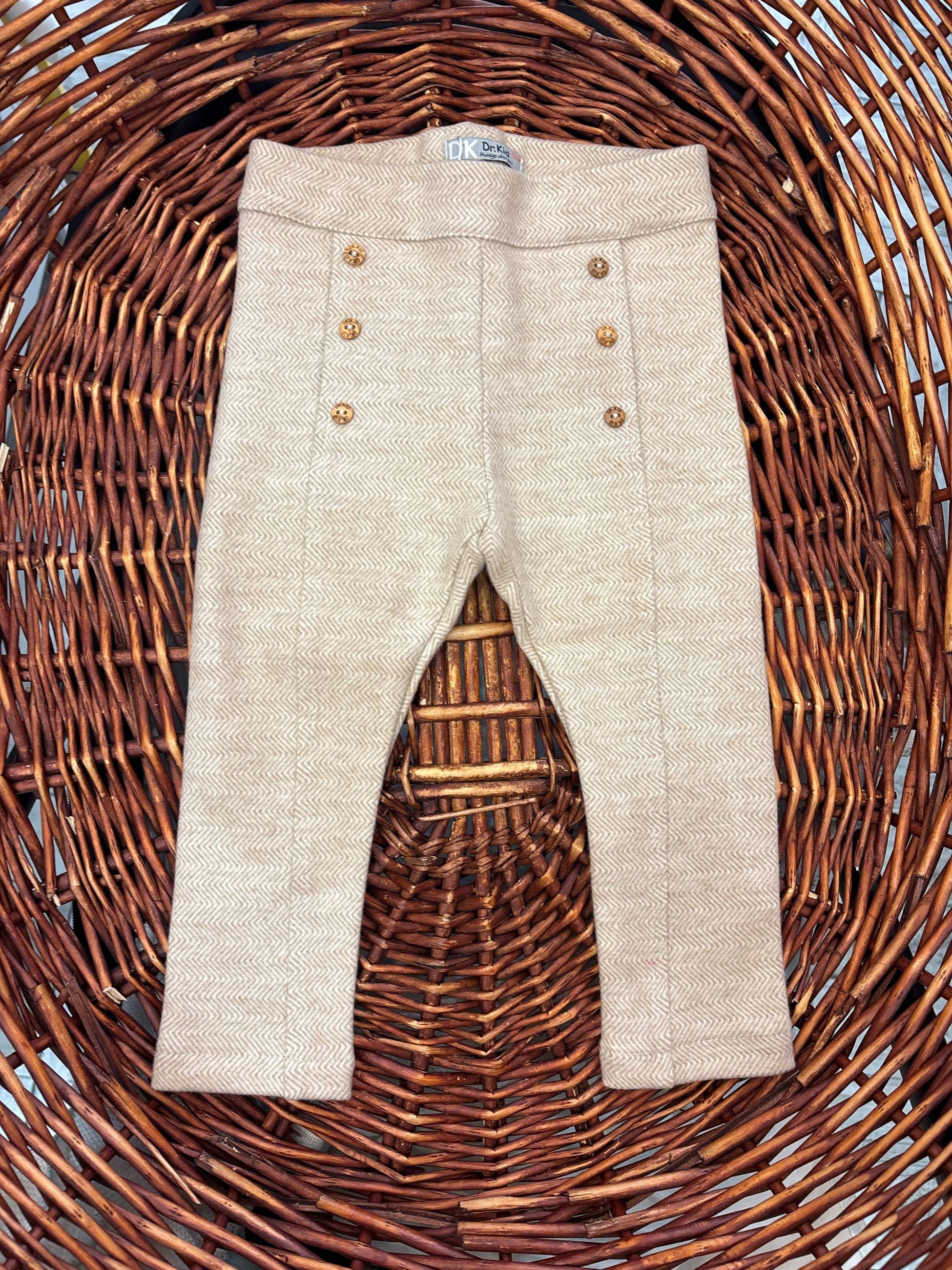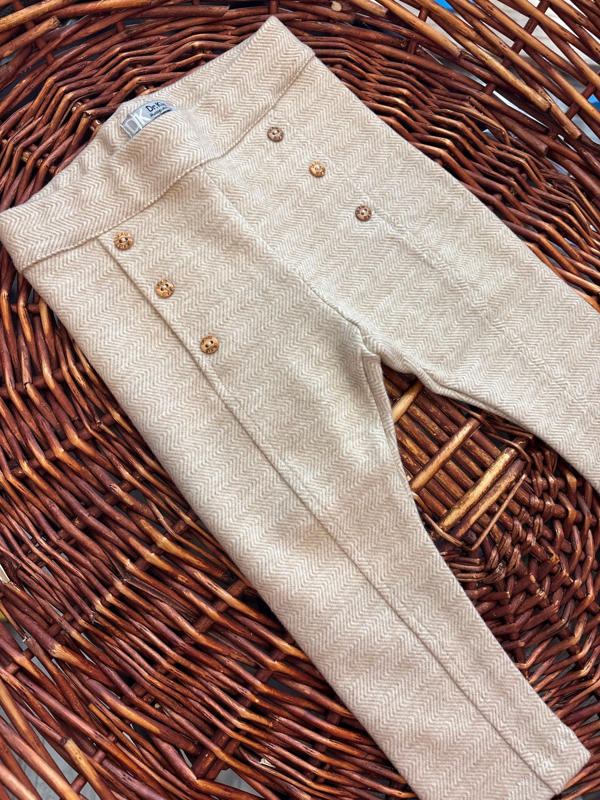 pantalone modello leggins in tessuto spigato con bottoncini in legno decorativi