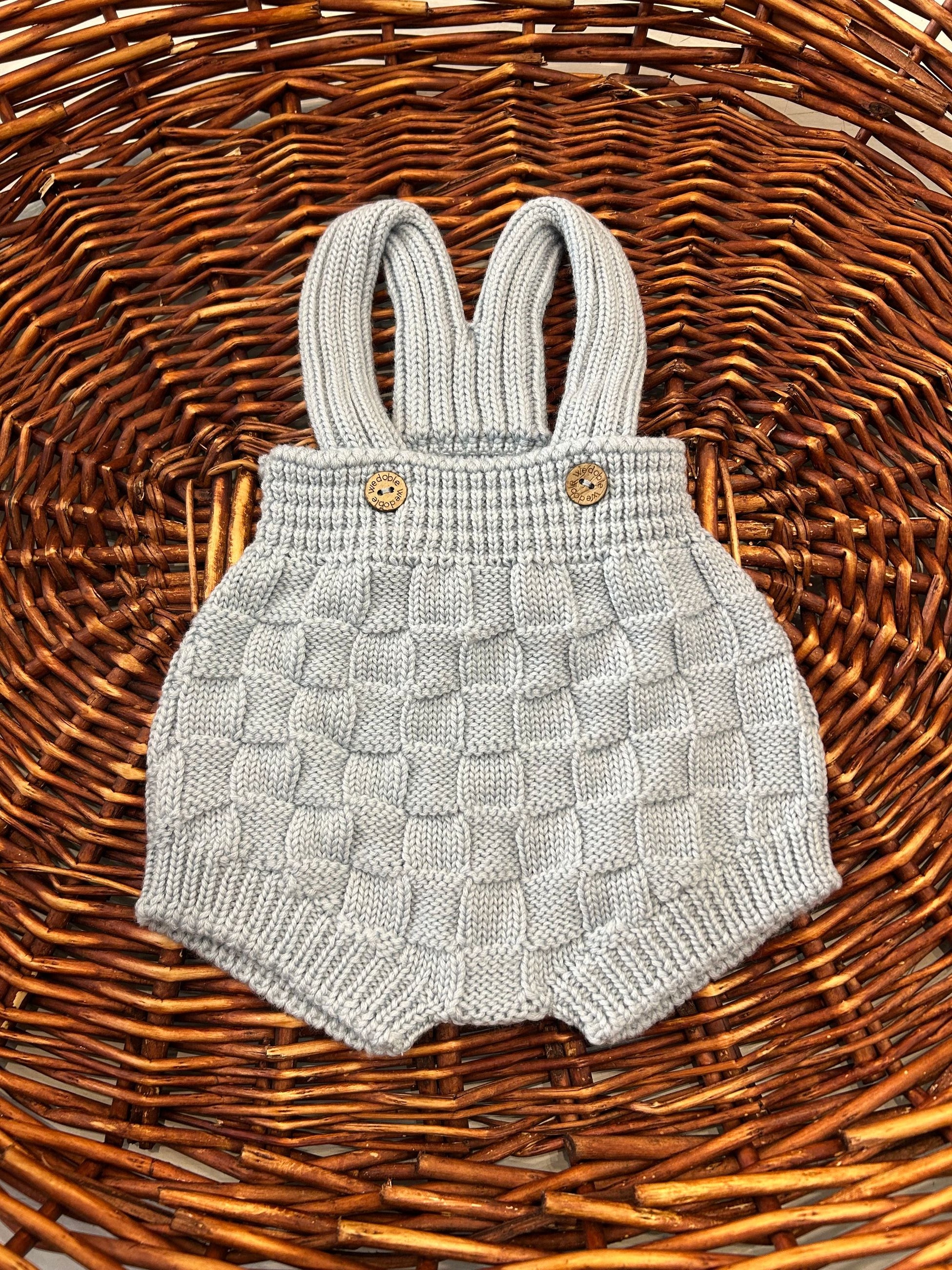 salopette corta in pura lana lavorata a quadri con bottoncini in legno,dal gusto casual e raffinato