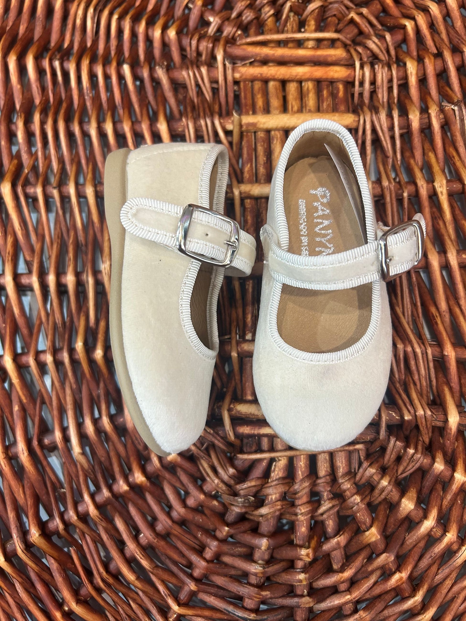 scarpa ballerina con cinturino regolabile in velluto con suola interna estraibile e gomma antiscivolo