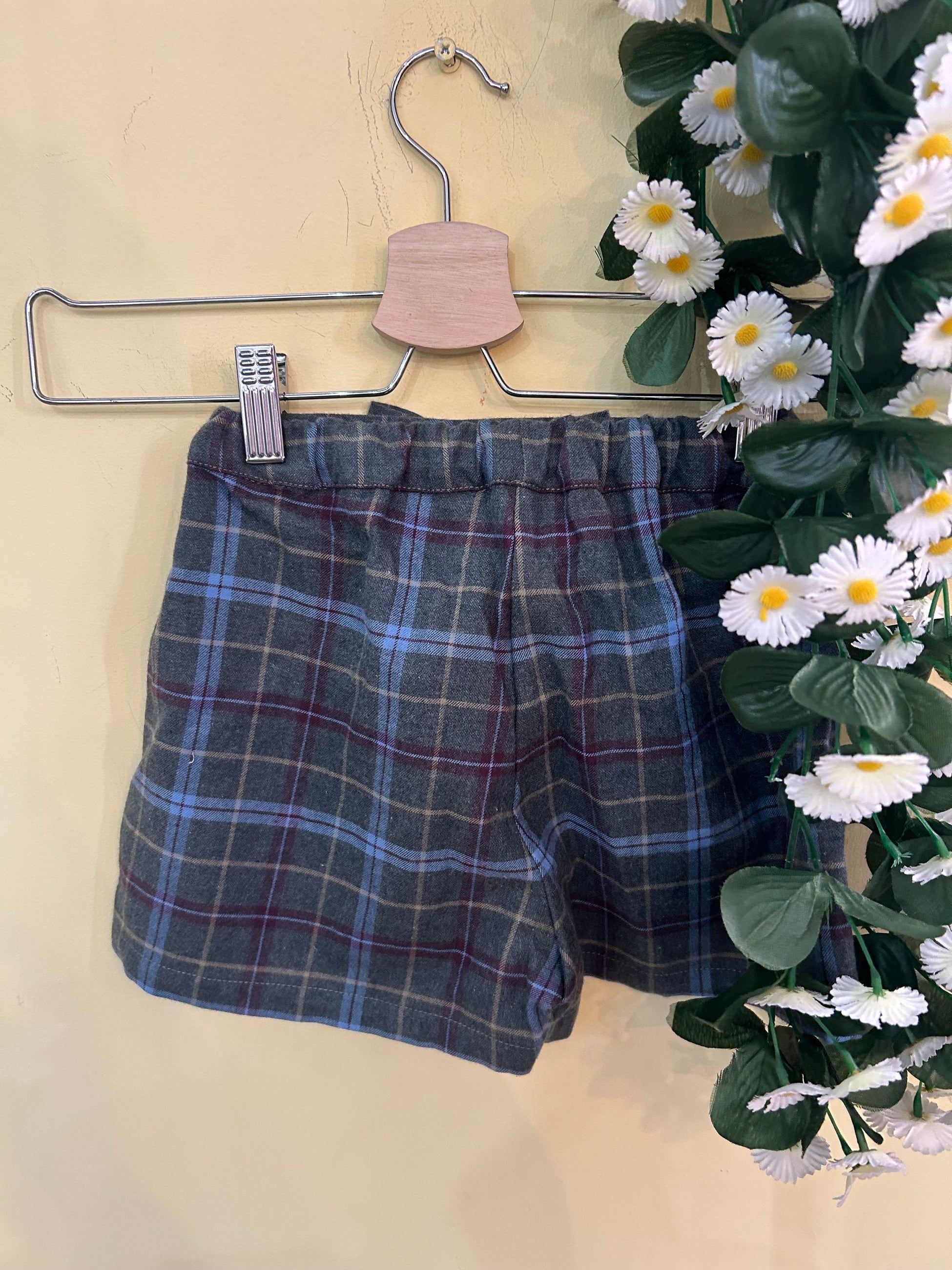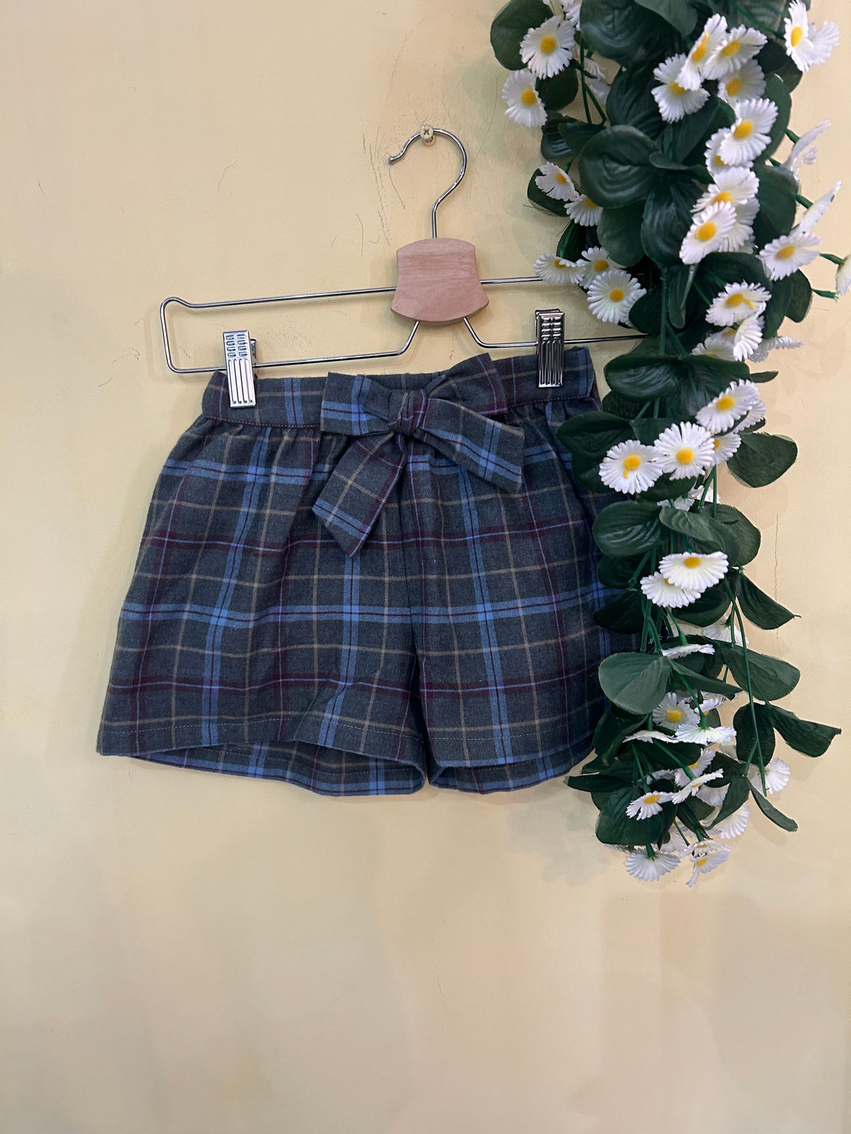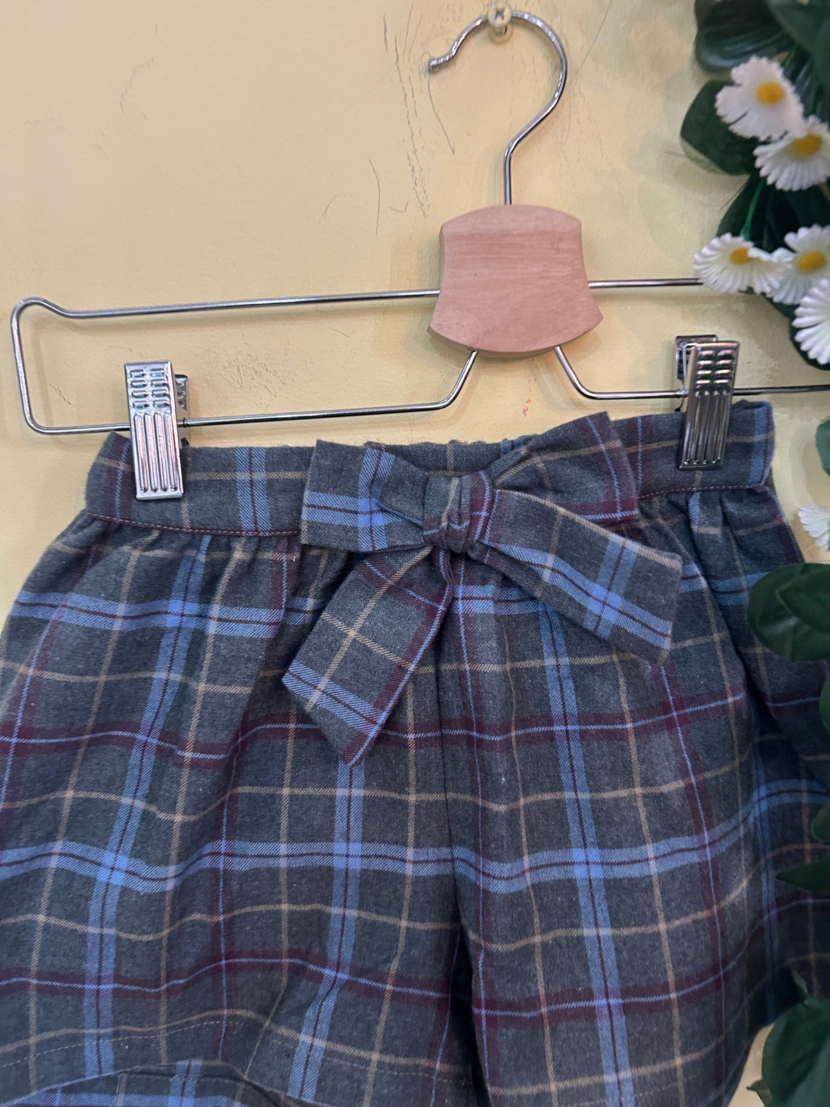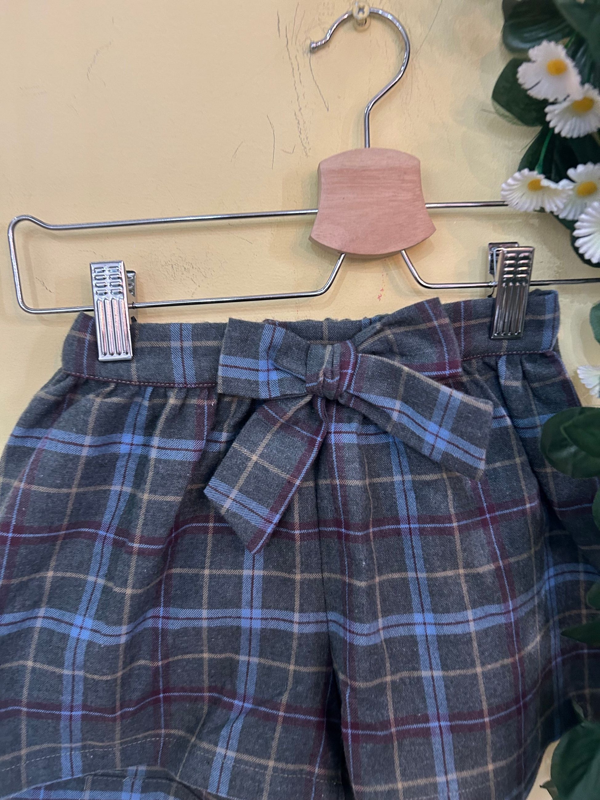 shorts in tessuto fresco lana fantasia tartan con fiocco avanti ed elastici interni regolabili