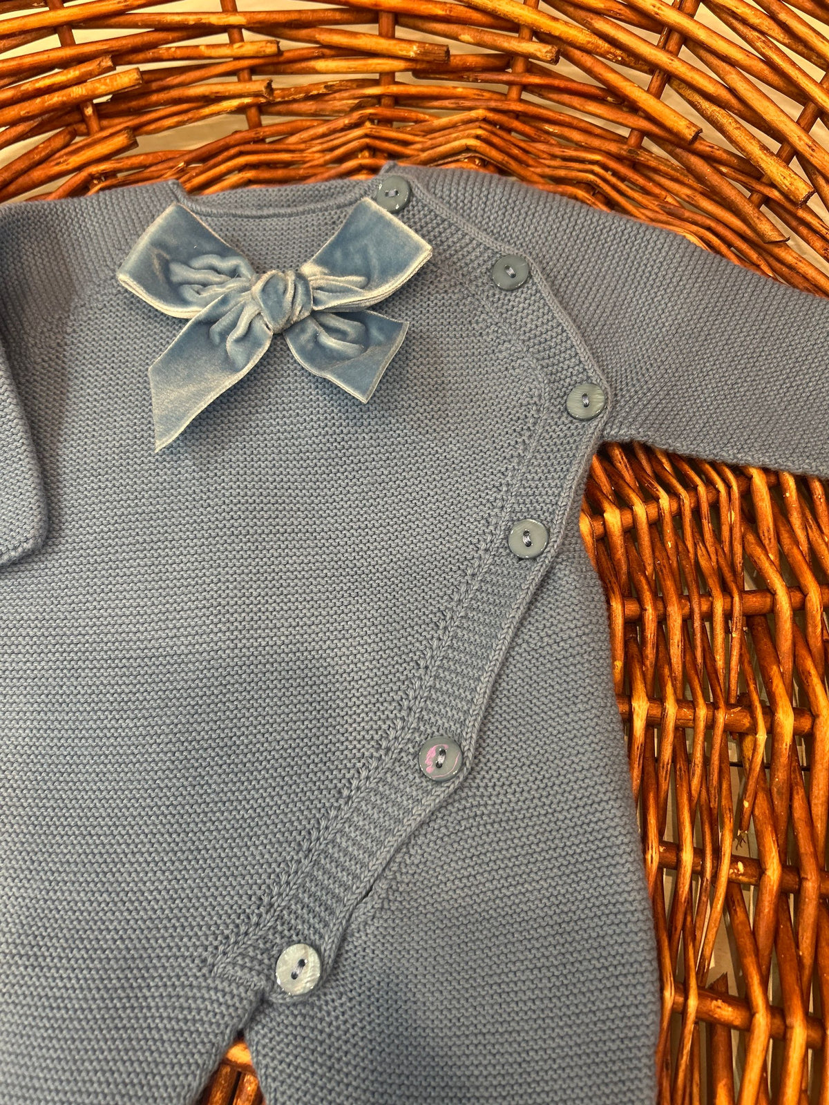 tutina in morbida maglia girocollo con fiocco in velluto tone sur tone